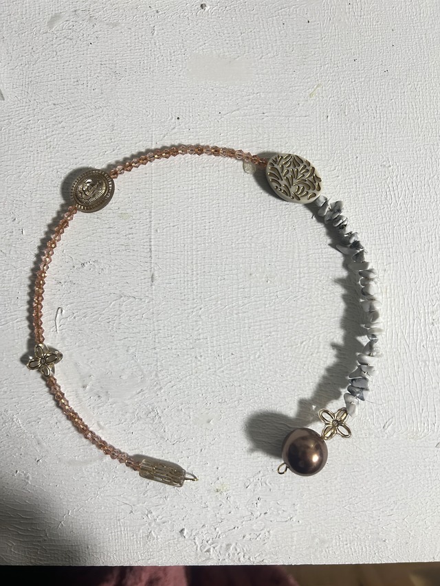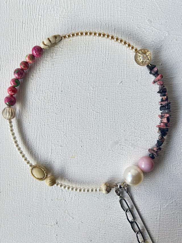 【数量限定、春色ビーズ、再販の予定はありません】ヴィンテージパーツで作った丸型3wayネックレス【3股】