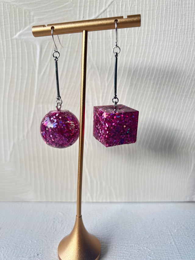 【受注生産】お届けまでに2から3週間頂きます。錫入りデカ丸、デカシカクピアス【片耳ピアスです。】