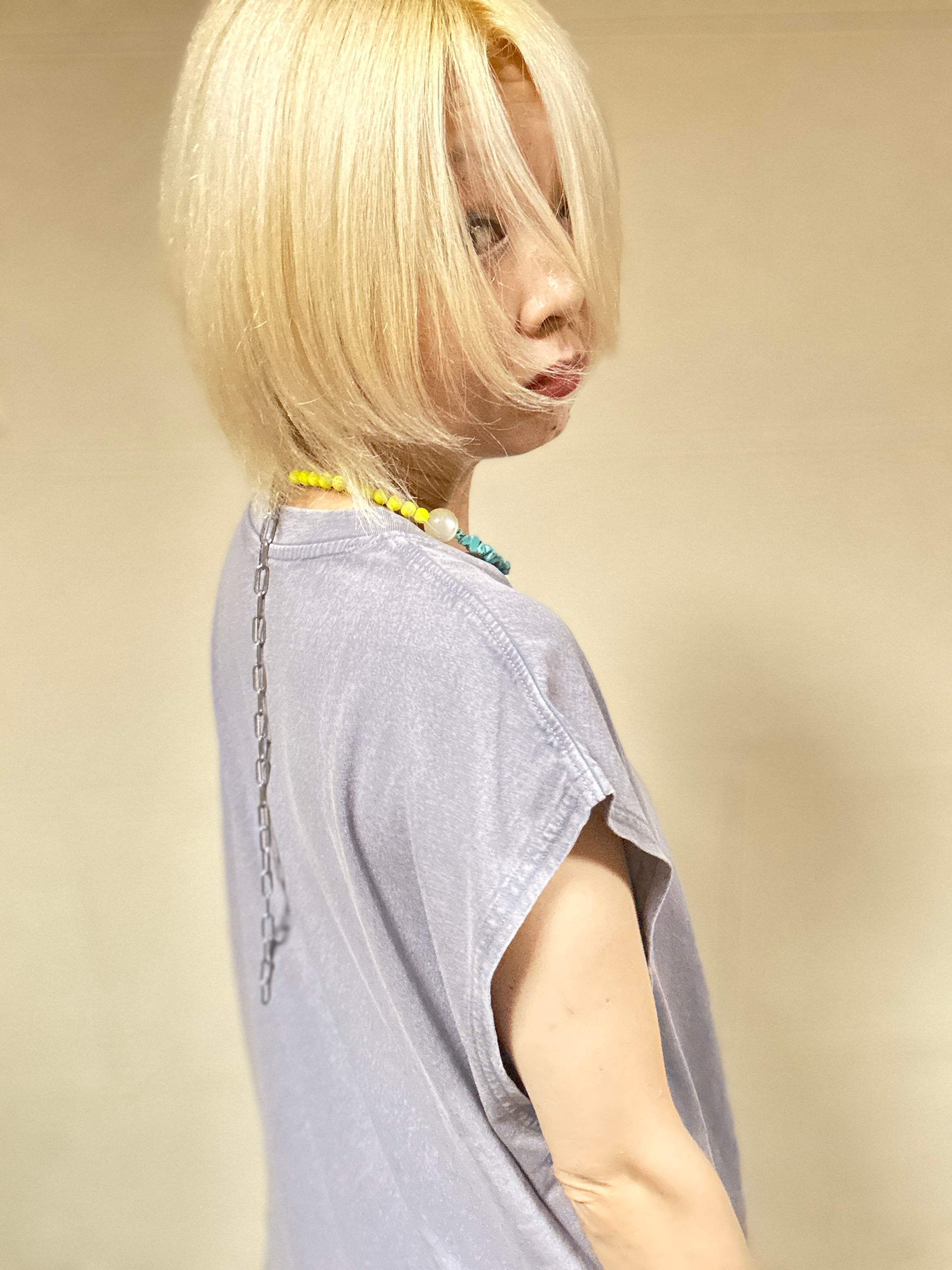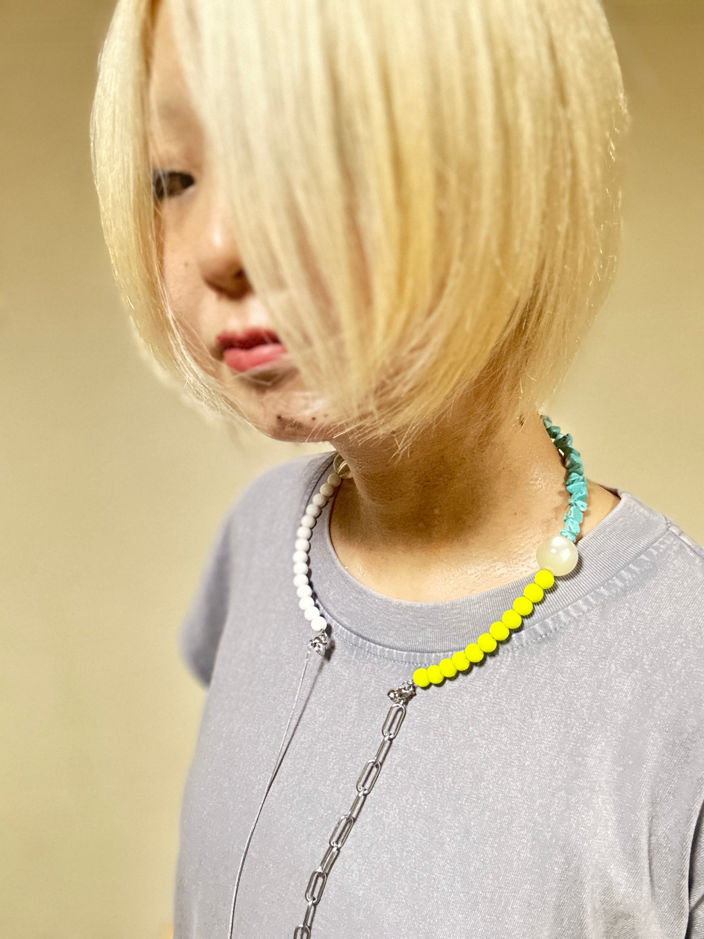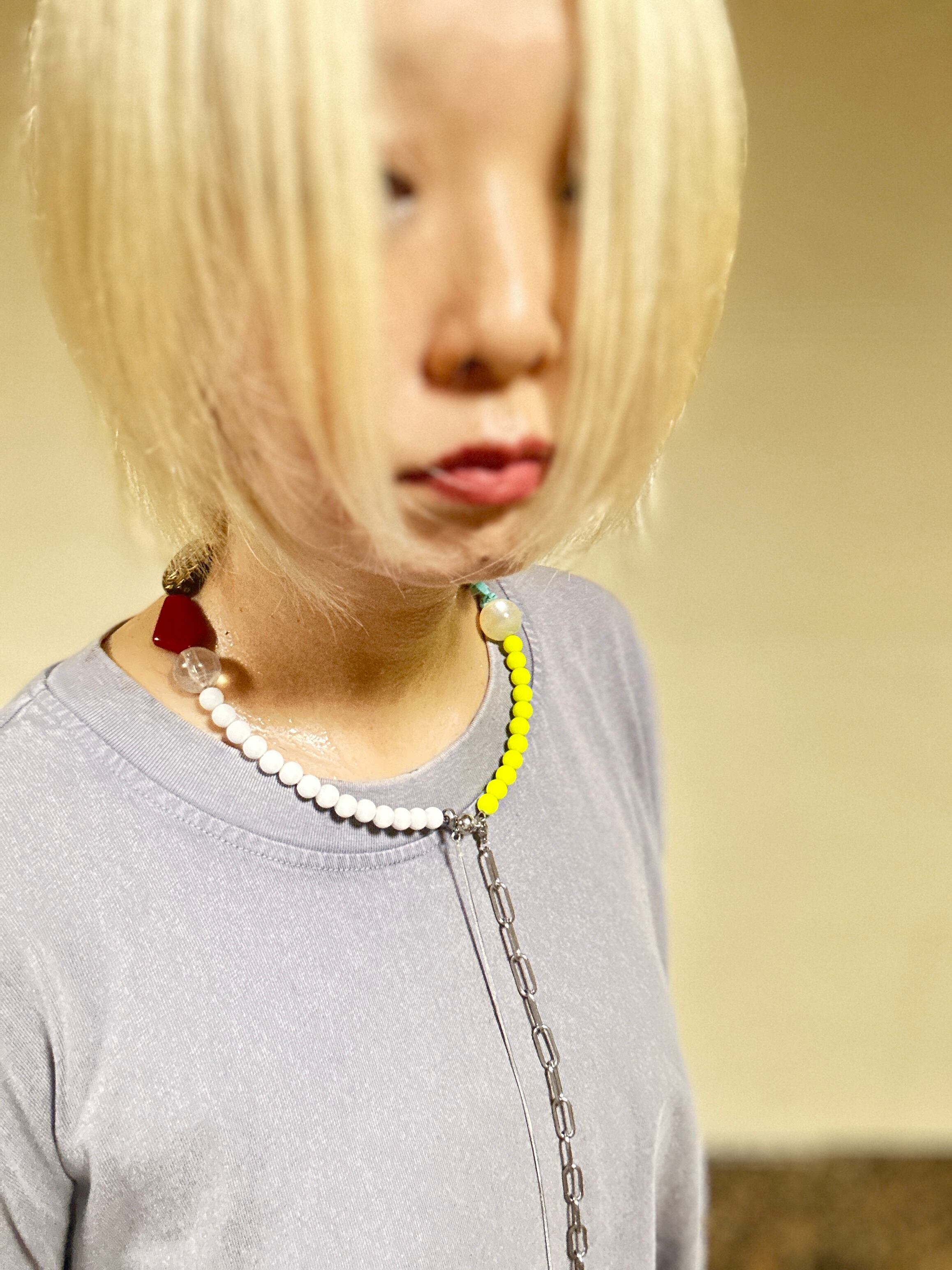 あとは後ろにチェーンを回すと普通のビーズのネックレスを着けているようですが、