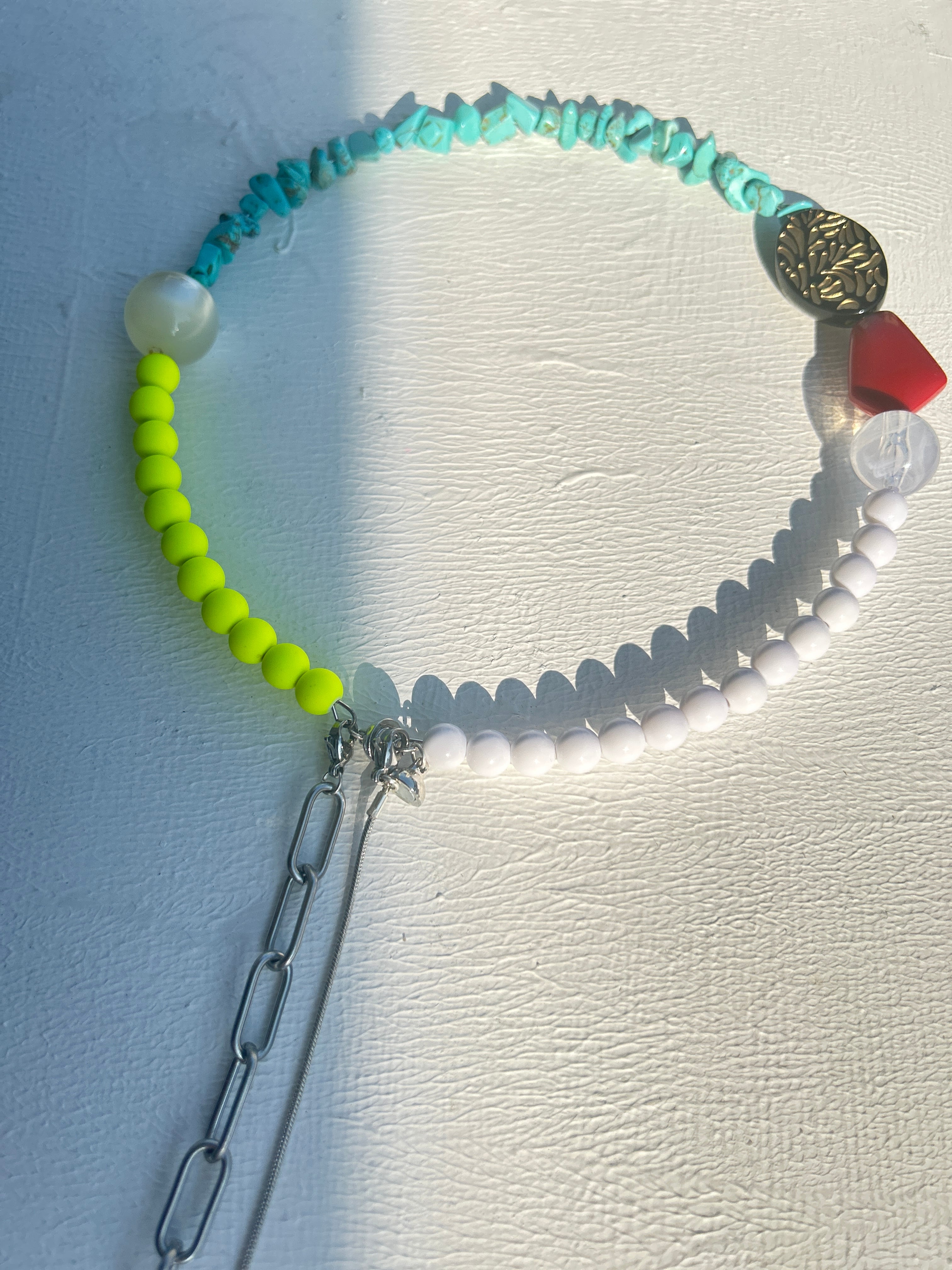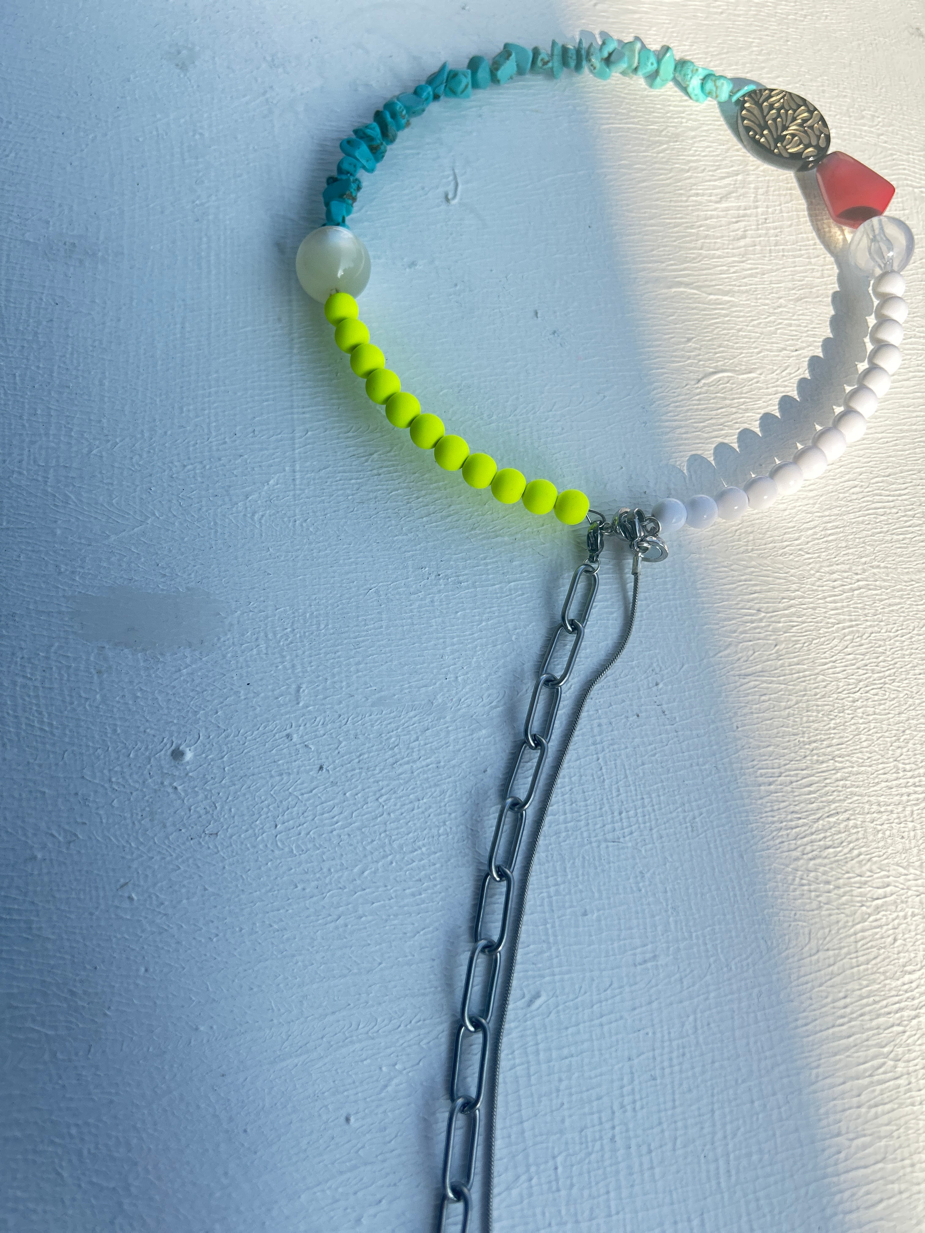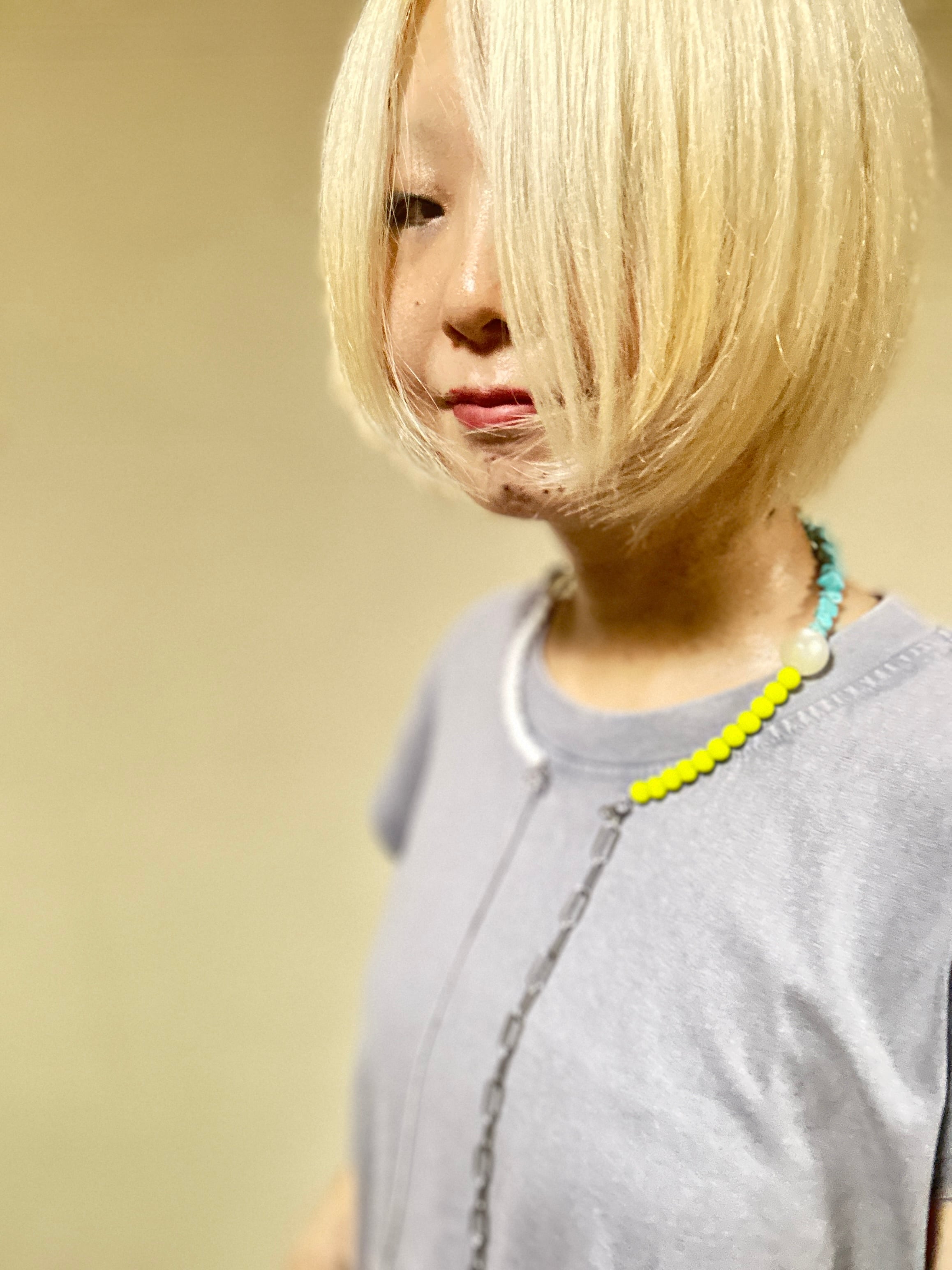 あとは後ろにチェーンを回すと普通のビーズのネックレスを着けているようですが、
