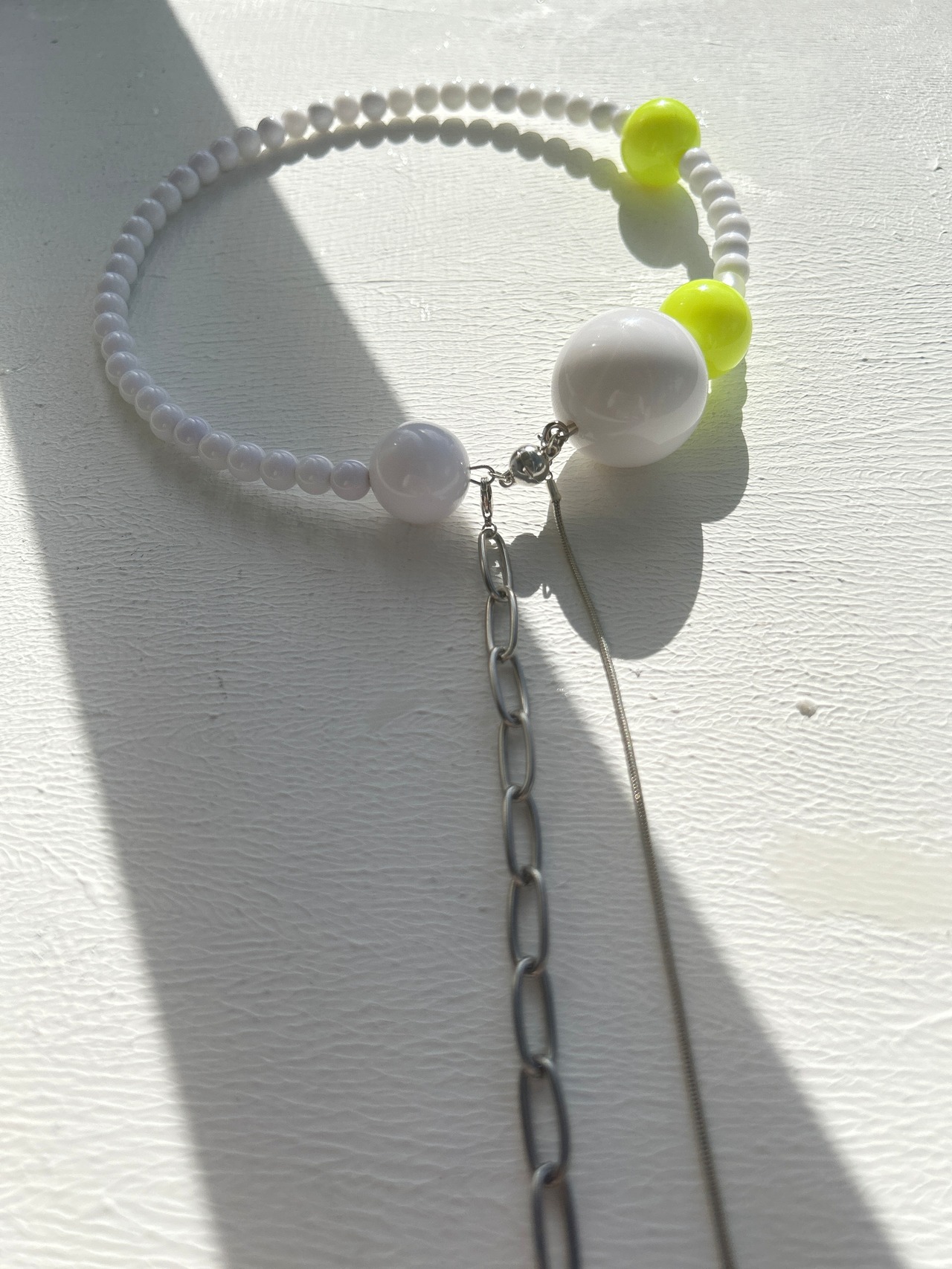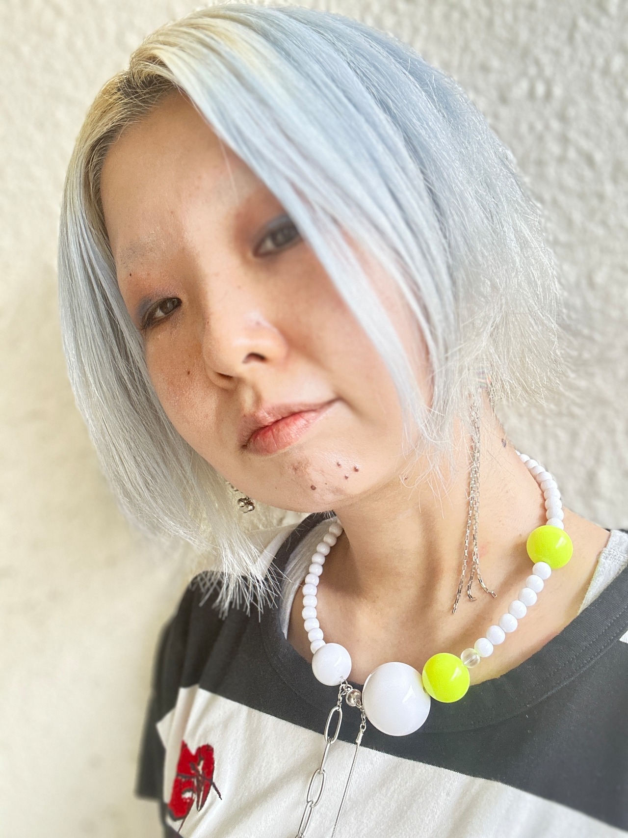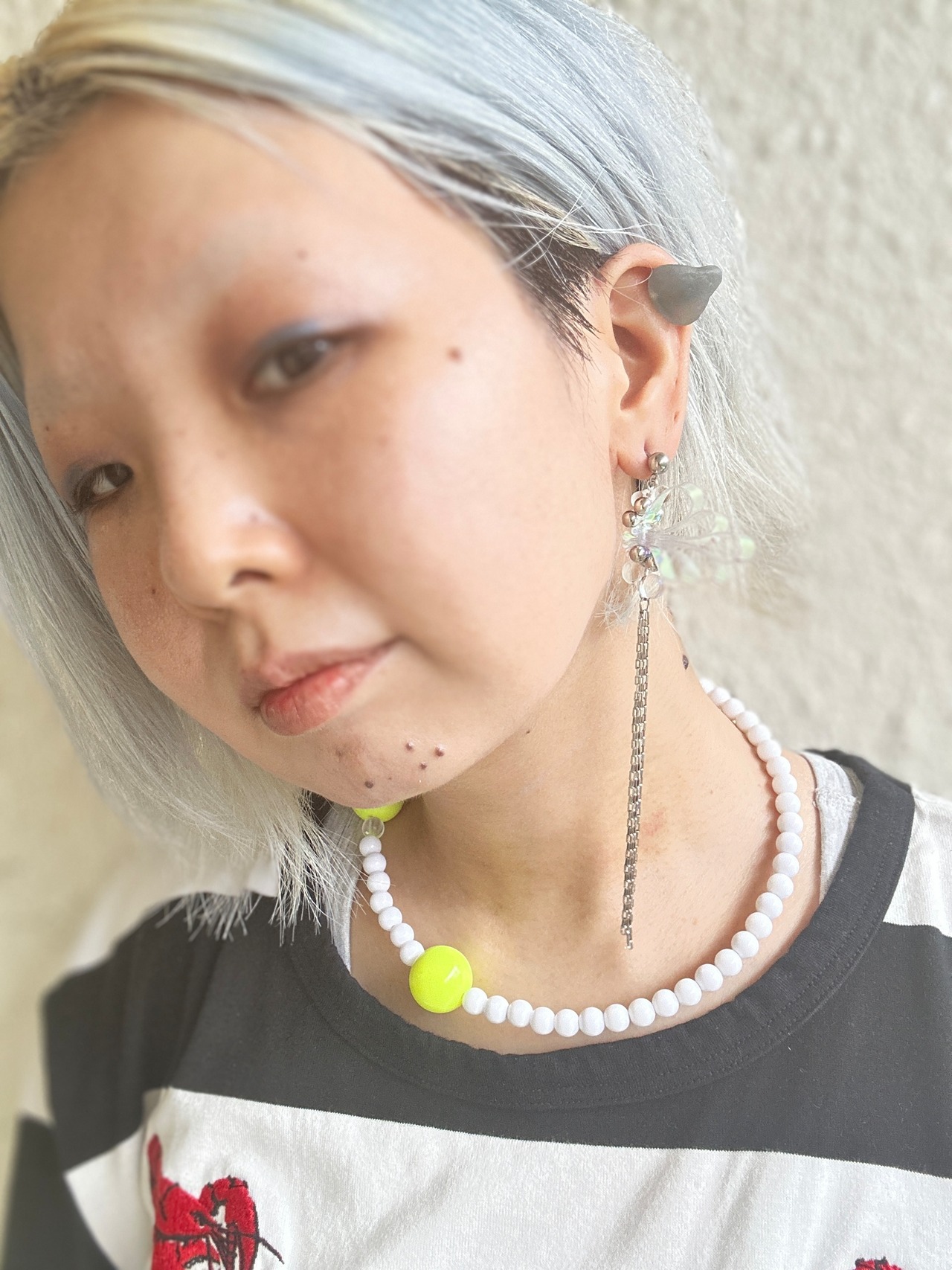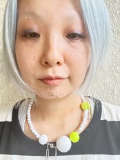 あとは後ろにチェーンを回すと普通のビーズのネックレスを着けているようですが、
