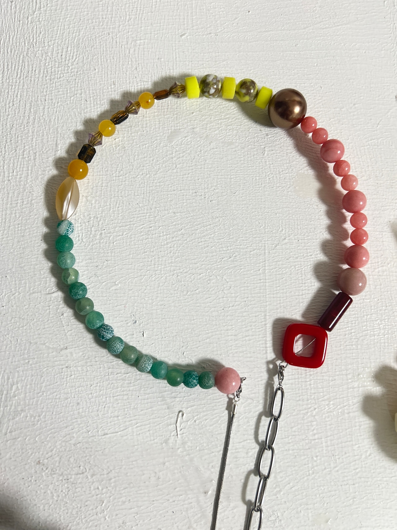 優しいピンクから入り(お店の人が言うに多分天然石)→黄色系もなかなか斬新ですが、