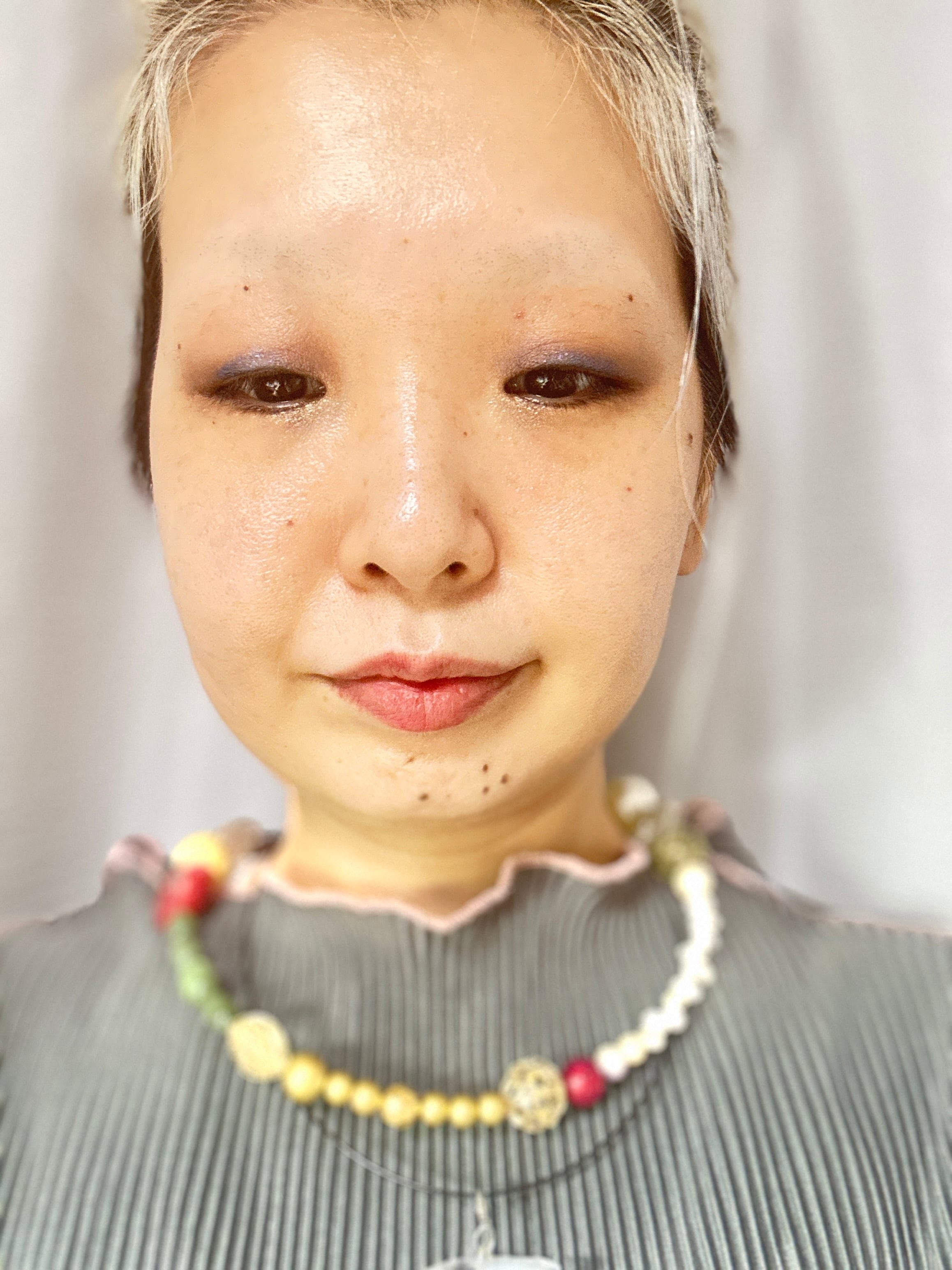 あとは後ろにチェーンを回すと普通のビーズのネックレスを着けているようですが、