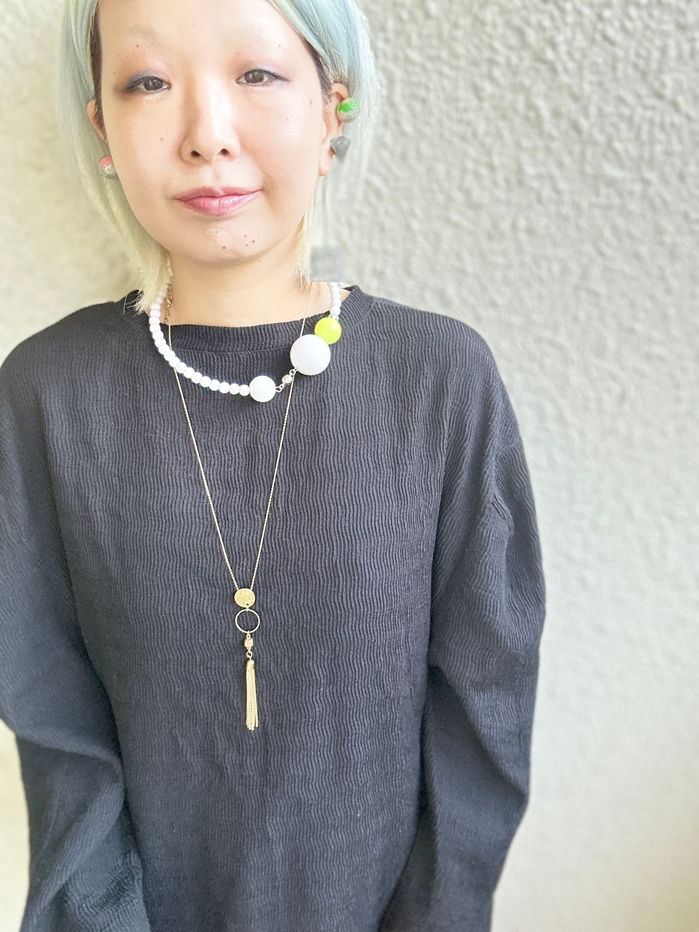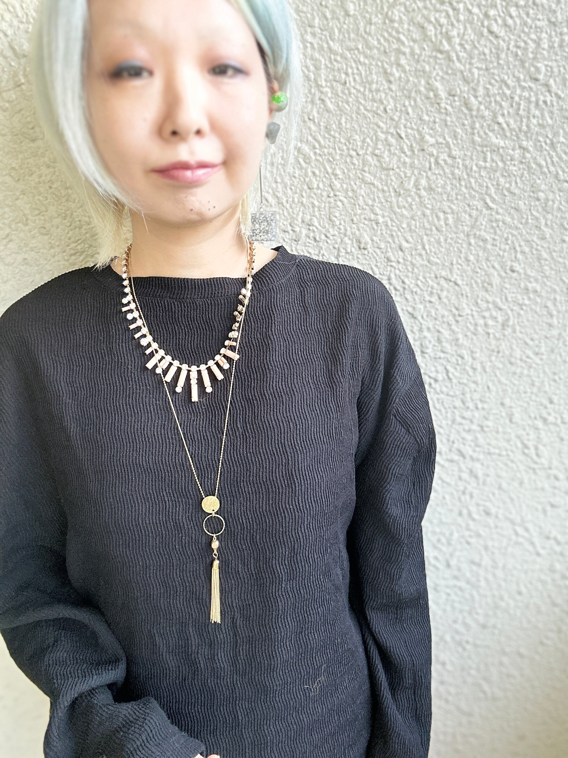 手持ちのサークルネックレスと重ねても可愛いですし、新しく出たキラキラネックレスとも良く合います。