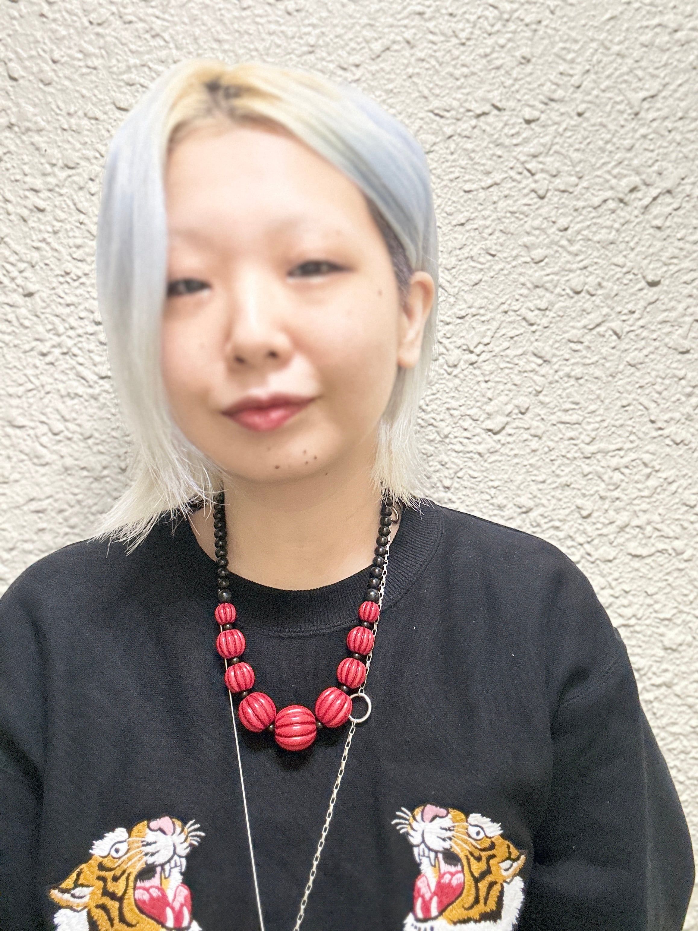 冬場はタートルネックや、ザックリとしたネットに合わせて頂くとカジュアルダウンしてとても可愛いです。