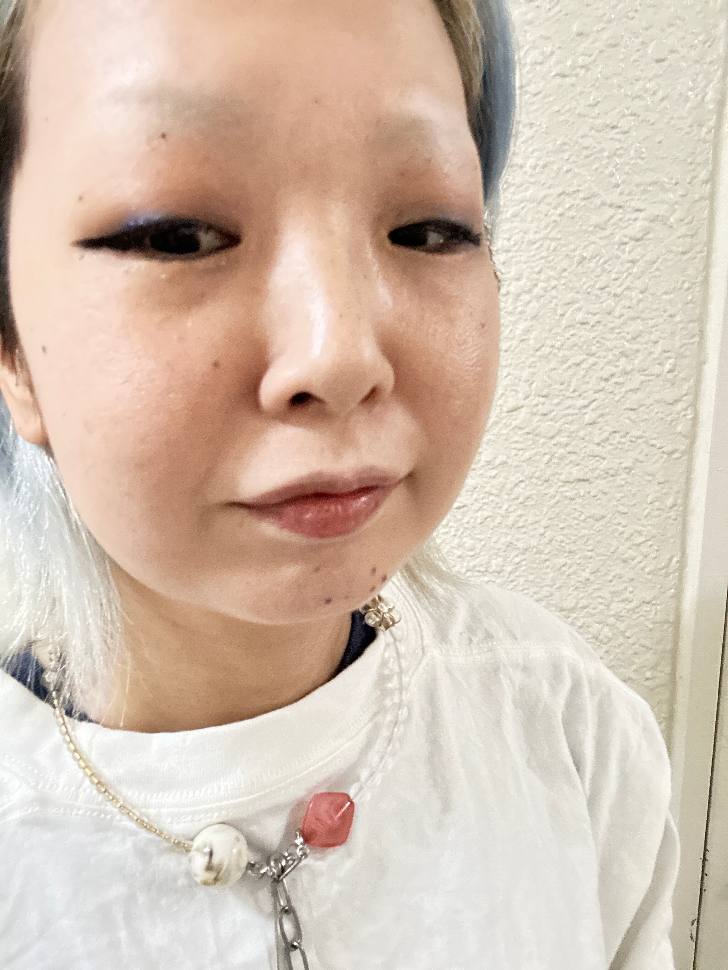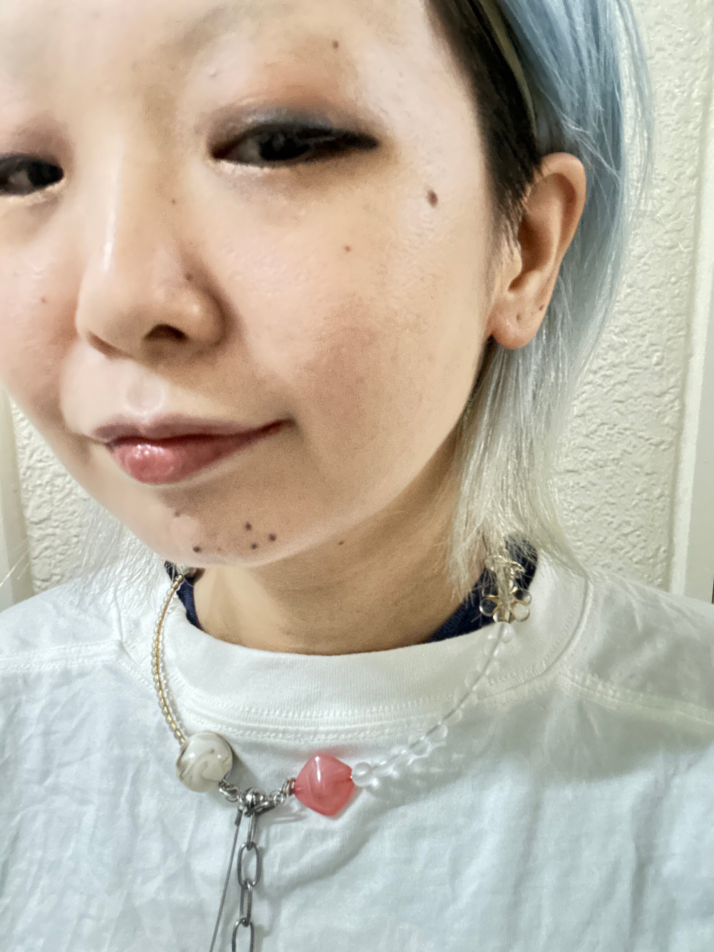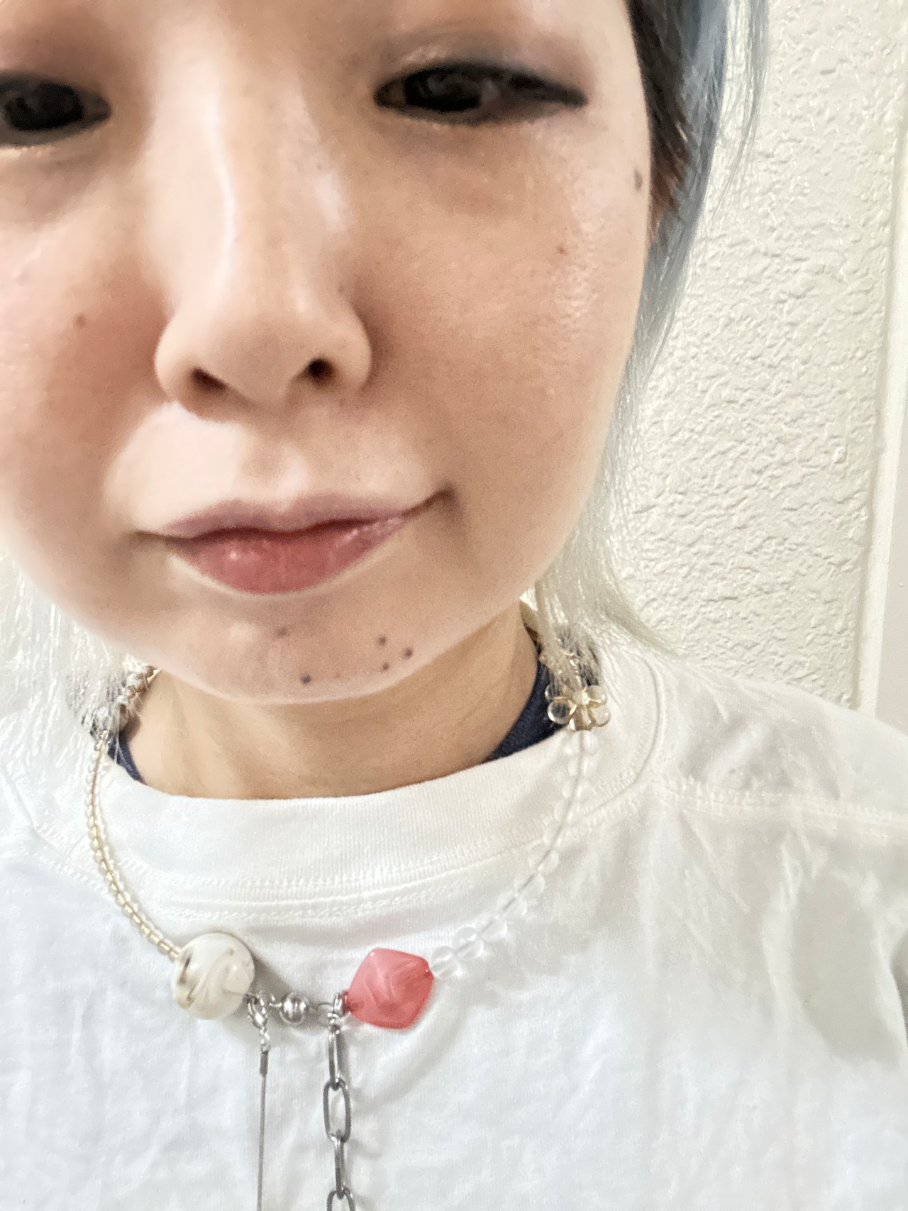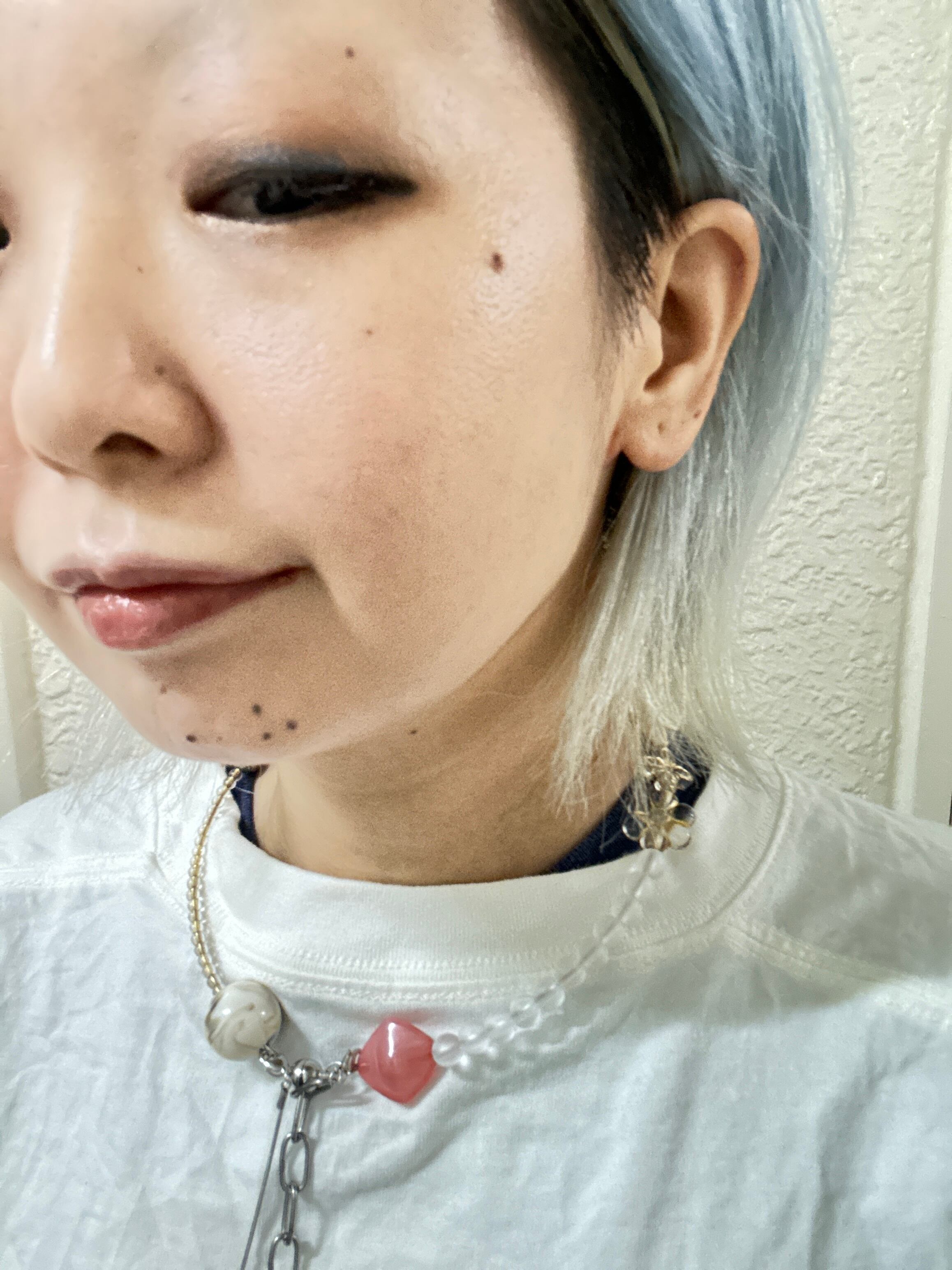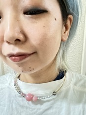 あとは後ろにチェーンを回すと普通のビーズのネックレスを着けているようですが、