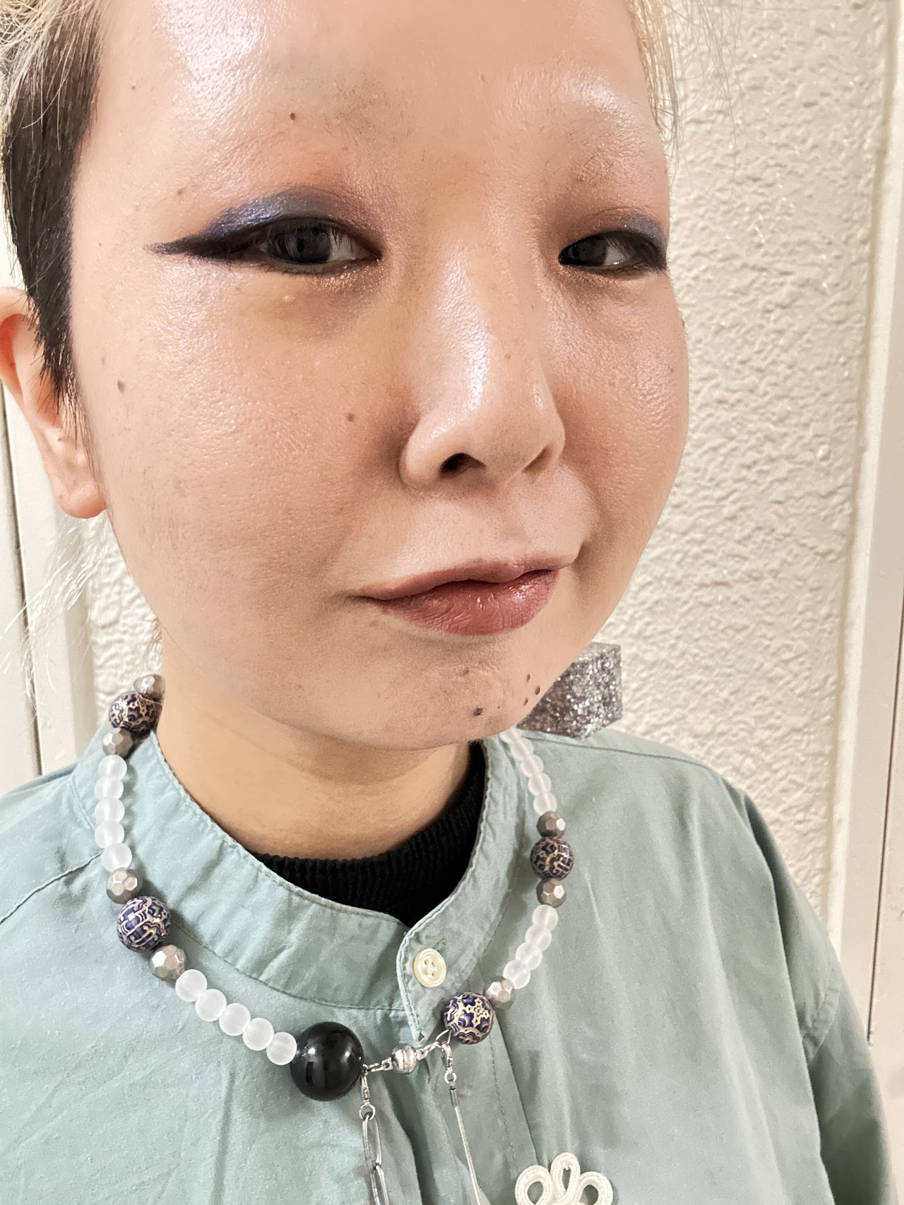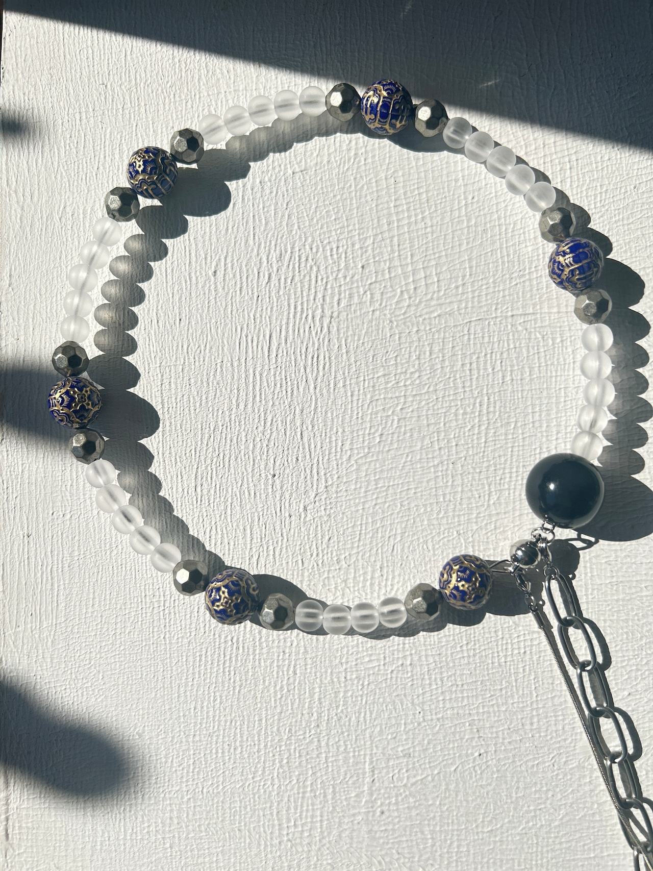あとは後ろにチェーンを回すと普通のビーズのネックレスを着けているようですが、