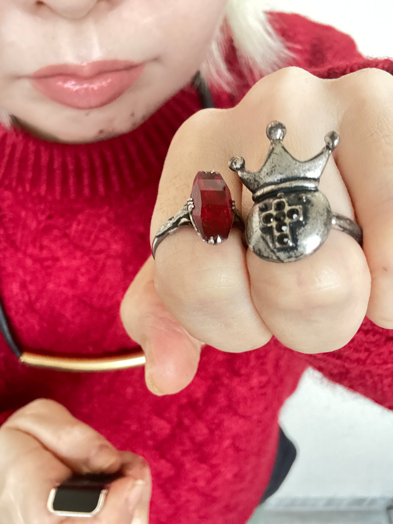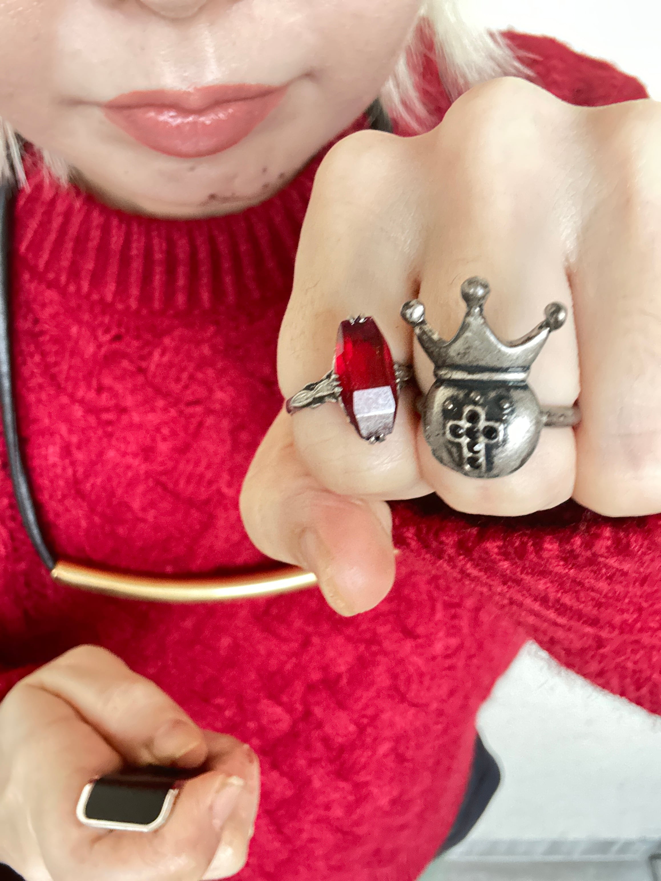 この赤いリングと一緒に着けたら素敵だなあと思い、