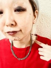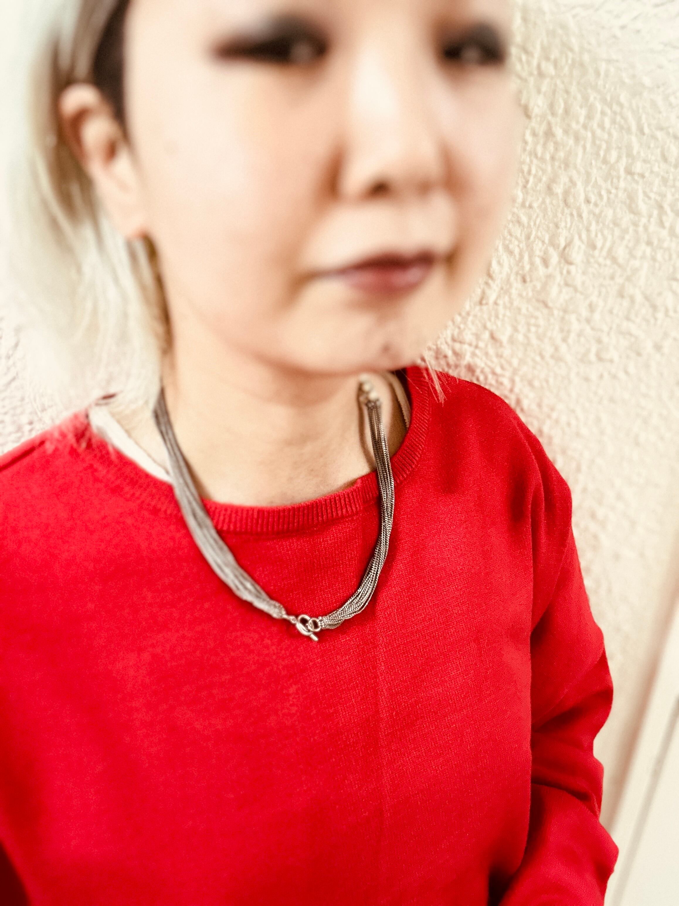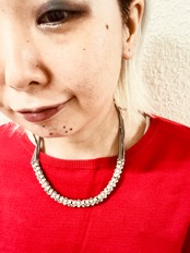 長さが割と短めなので、お手持ちの華奢なロングネックレスや、もしくは大ぶりの石が付いたネックレスなんかに合わせてもとても合うと思います。