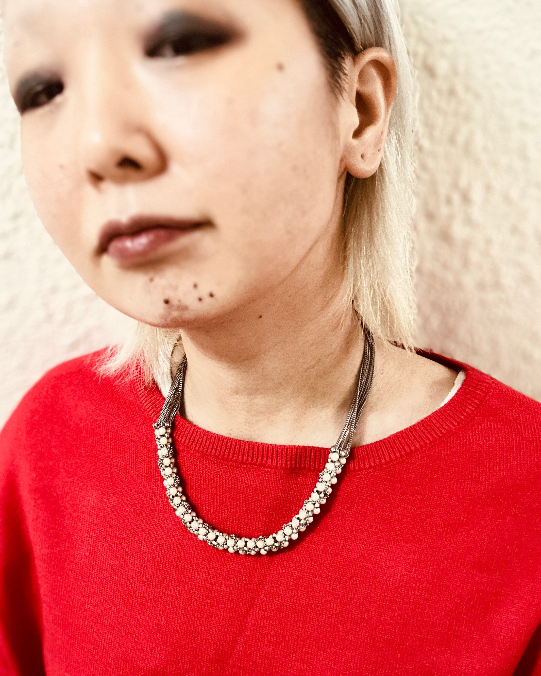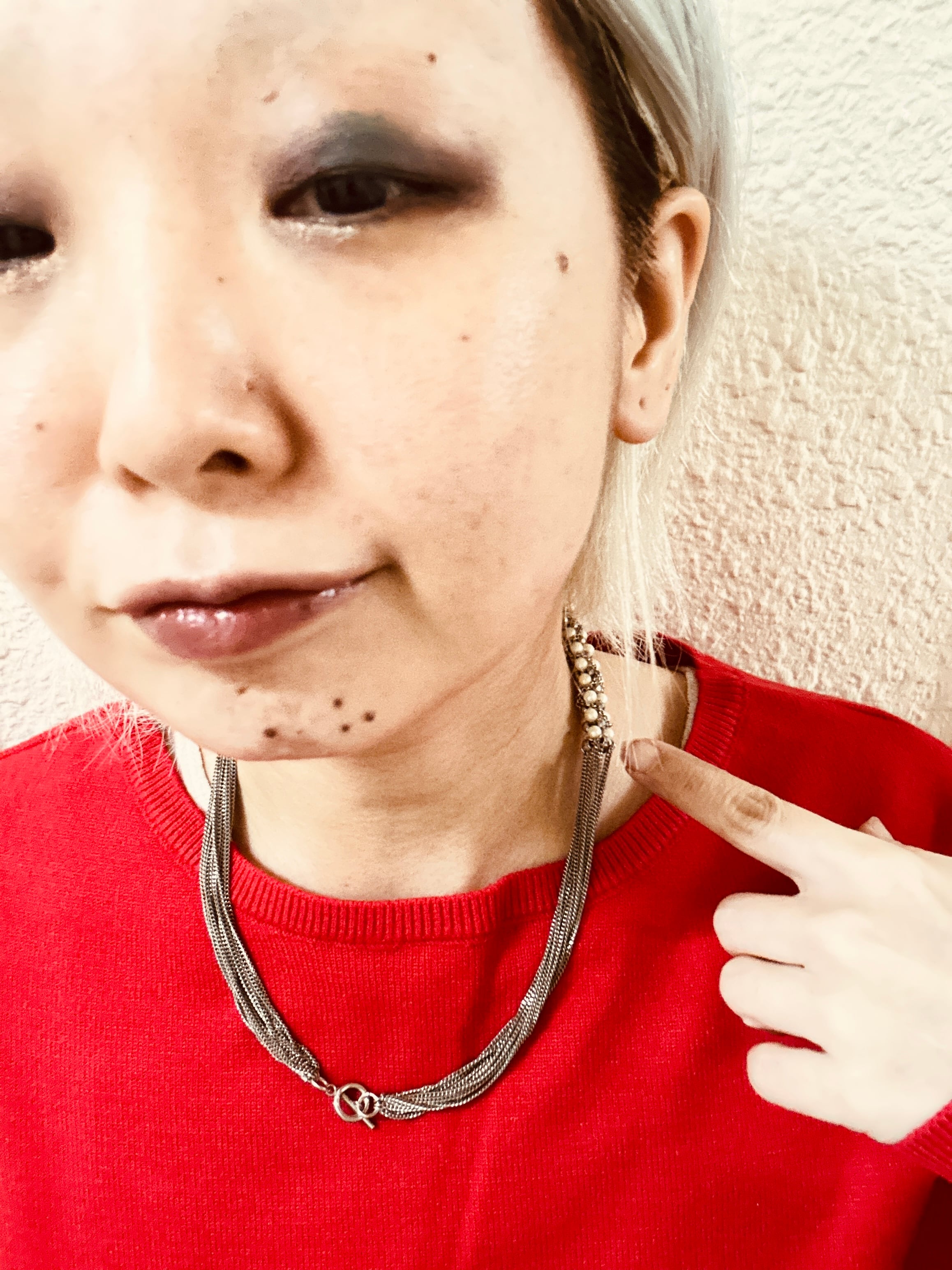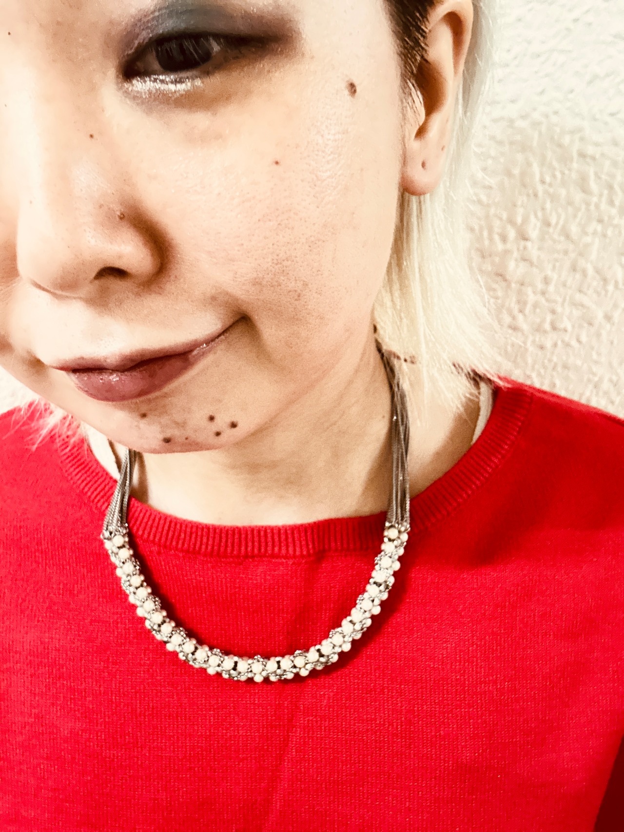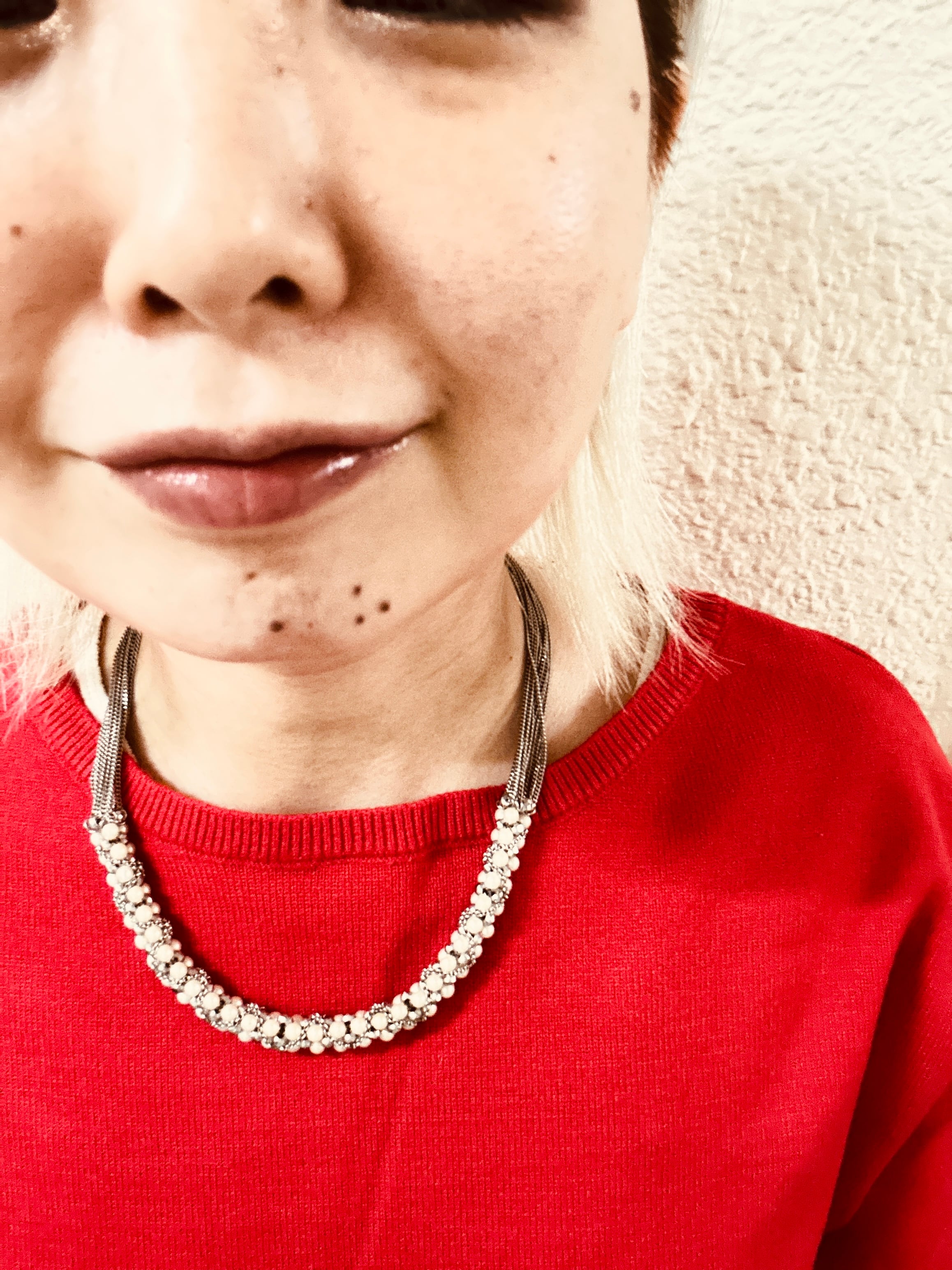 本当は秋冬ならば、パールやビジューにはゴールドのチェーンを合わせるのがテッパンですが、敢えてそれをしなかったのには理由があり、