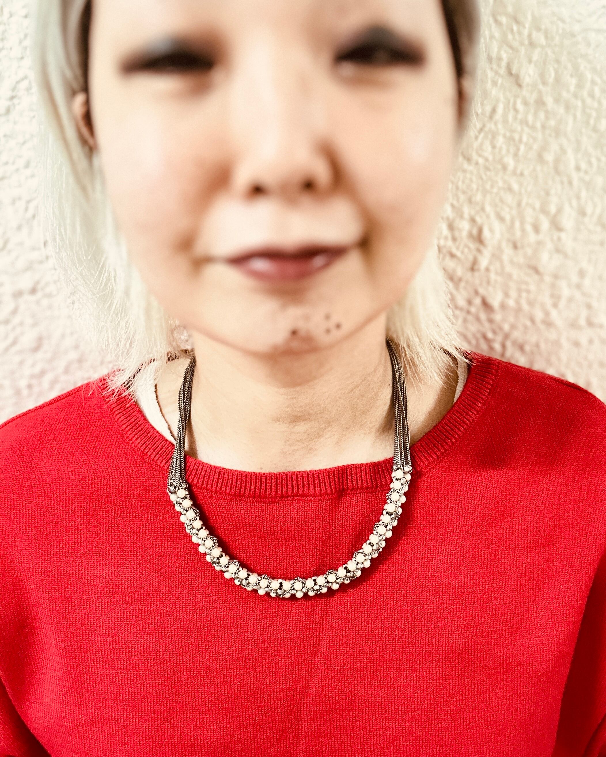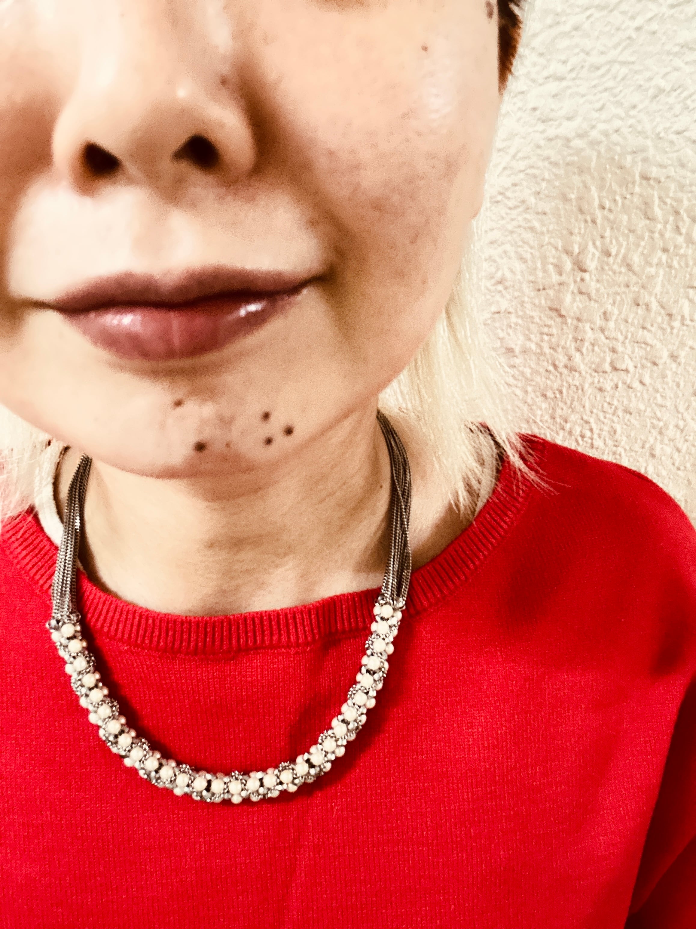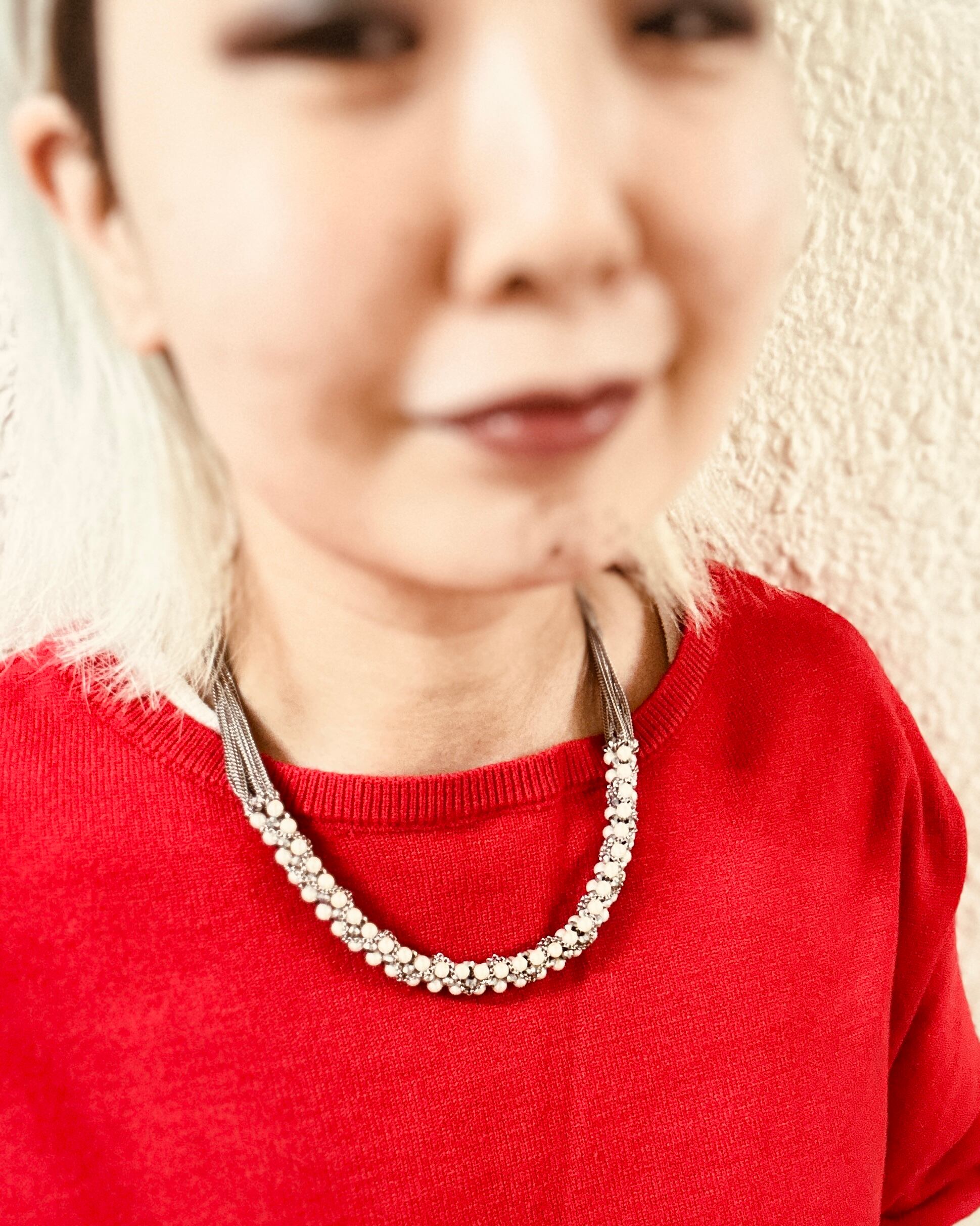 本当は秋冬ならば、パールやビジューにはゴールドのチェーンを合わせるのがテッパンですが、敢えてそれをしなかったのには理由があり、