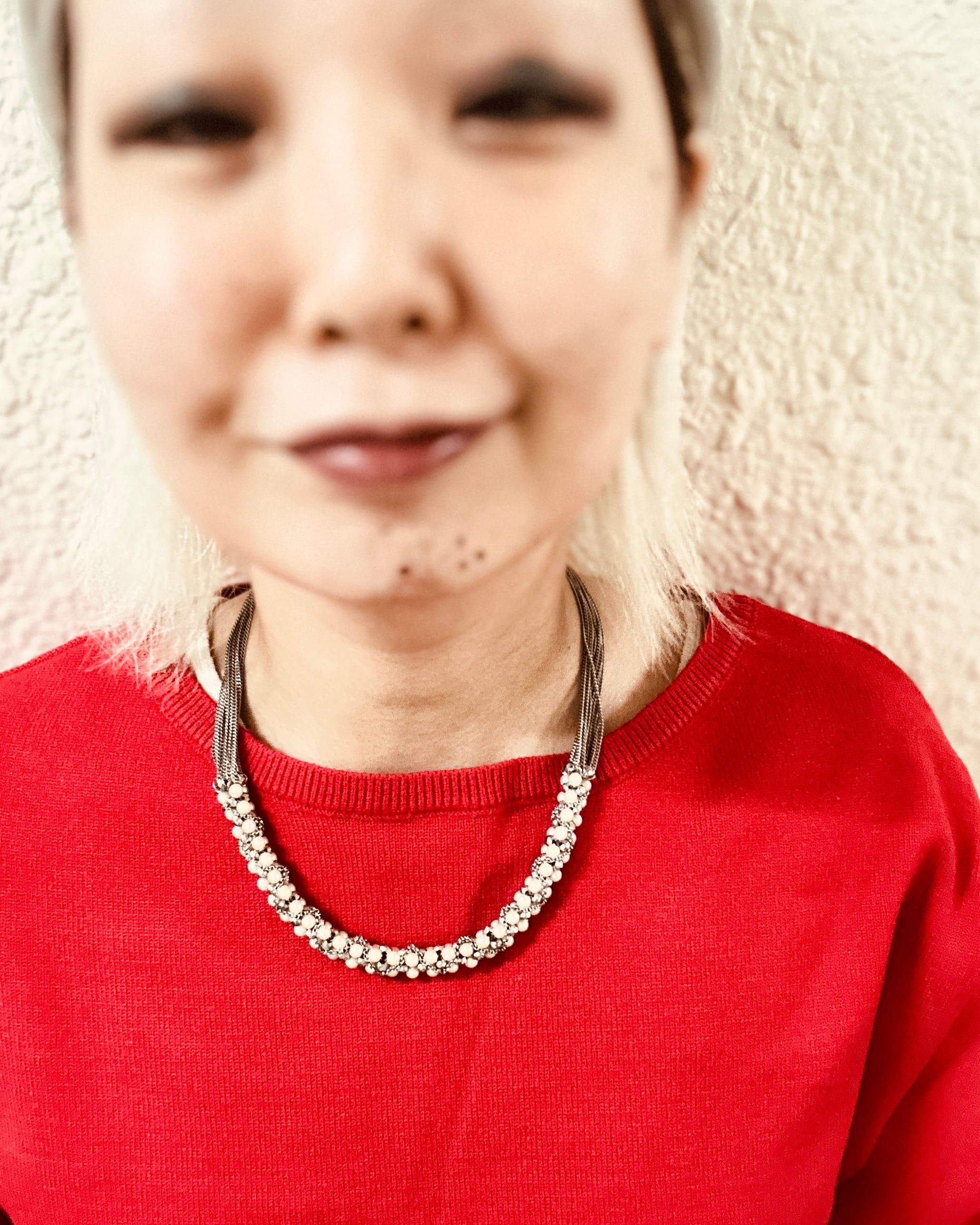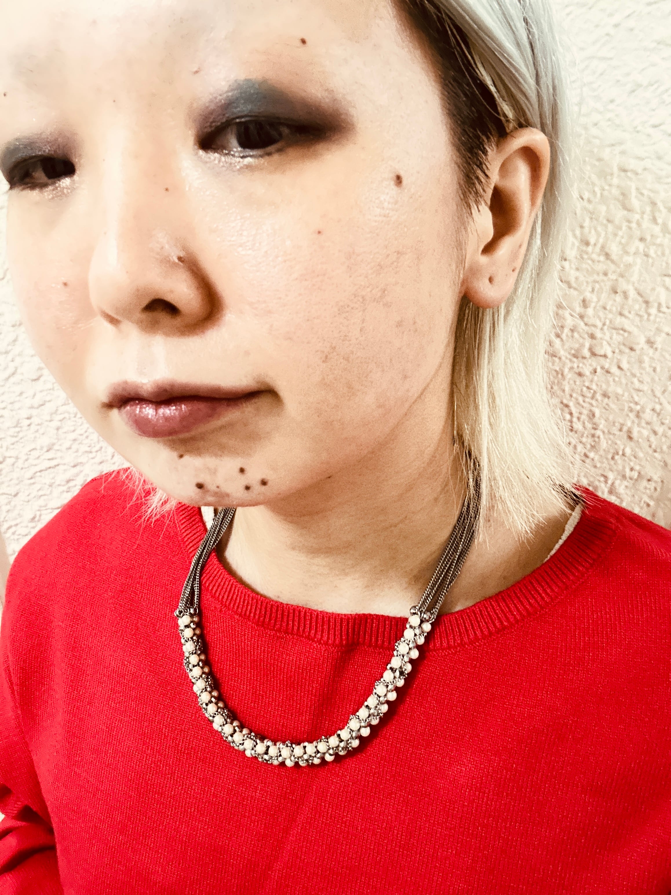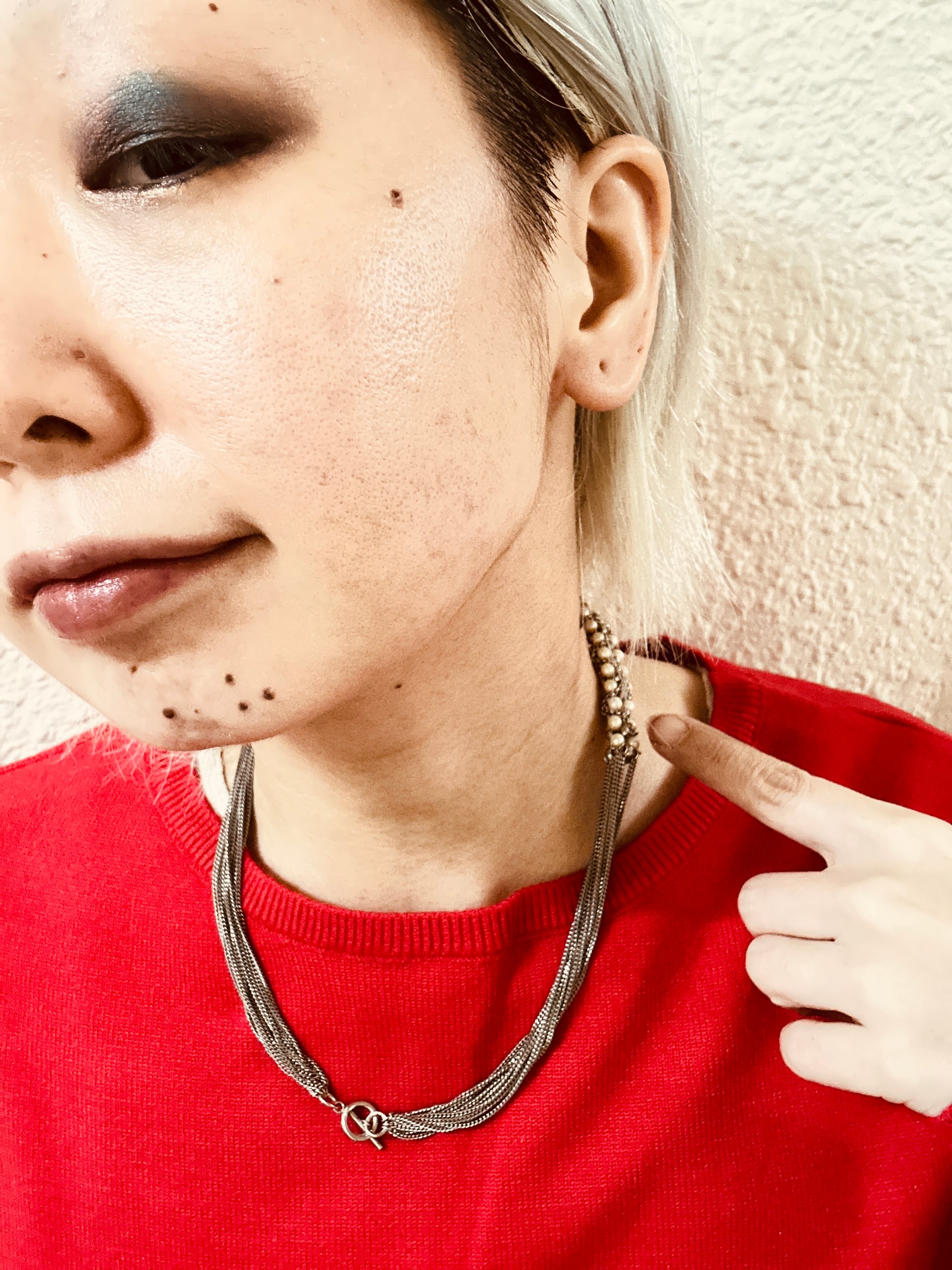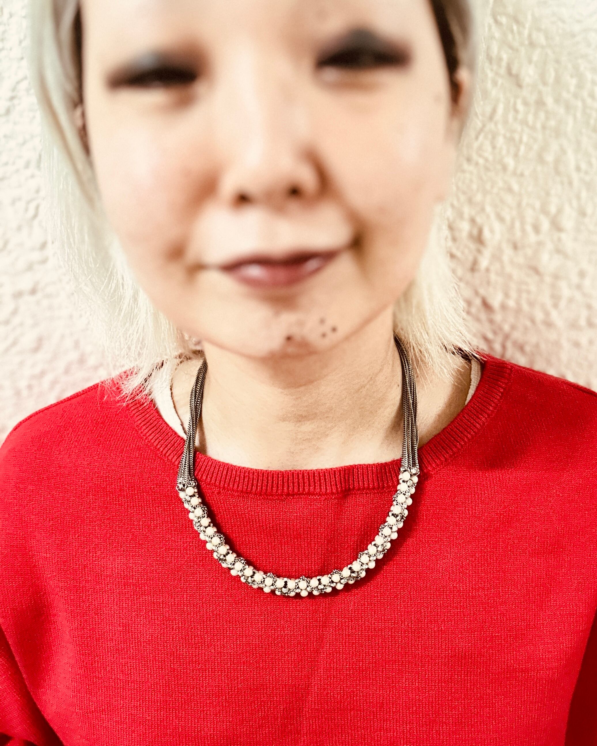 本当は秋冬ならば、パールやビジューにはゴールドのチェーンを合わせるのがテッパンですが、敢えてそれをしなかったのには理由があり、