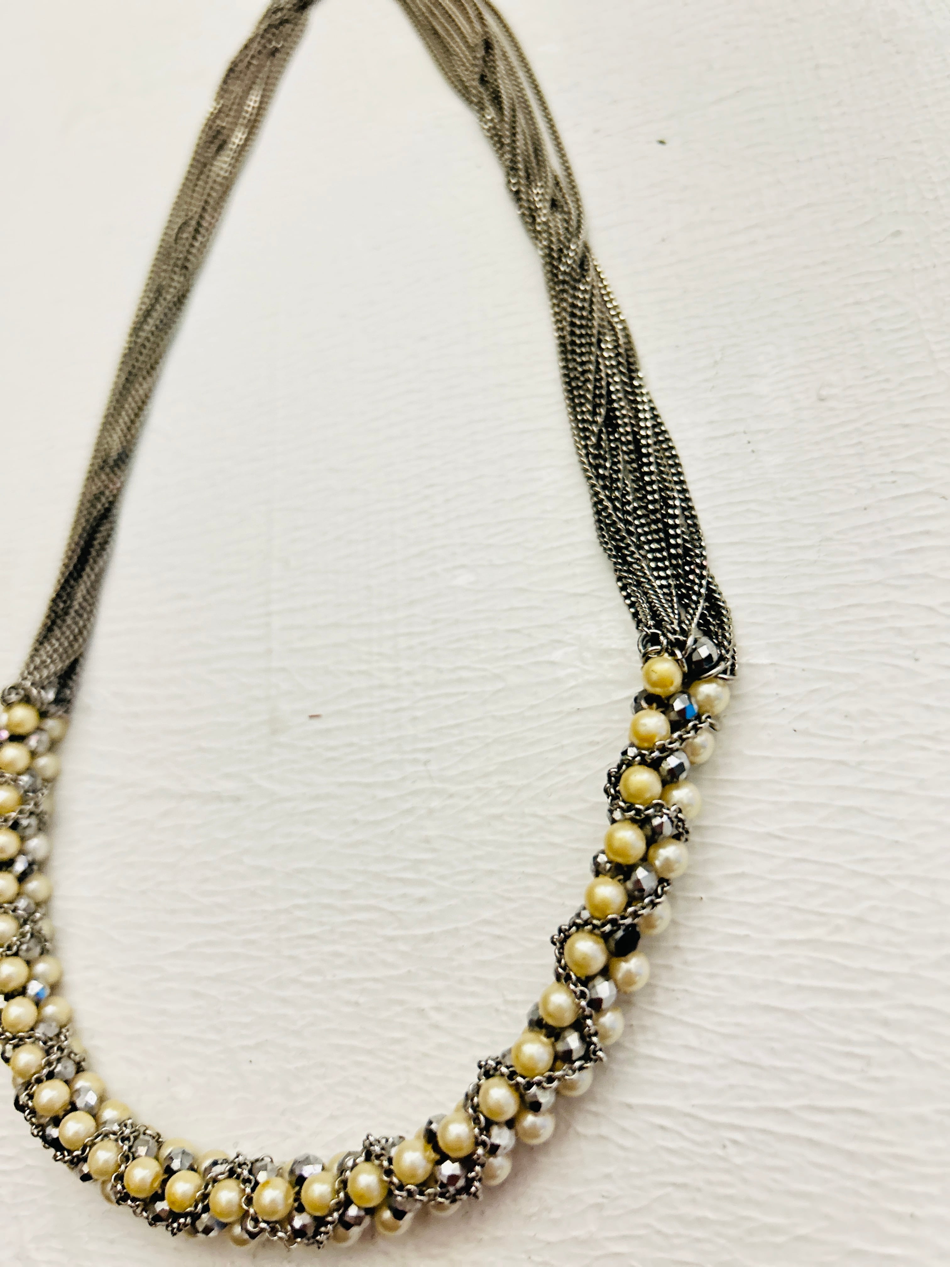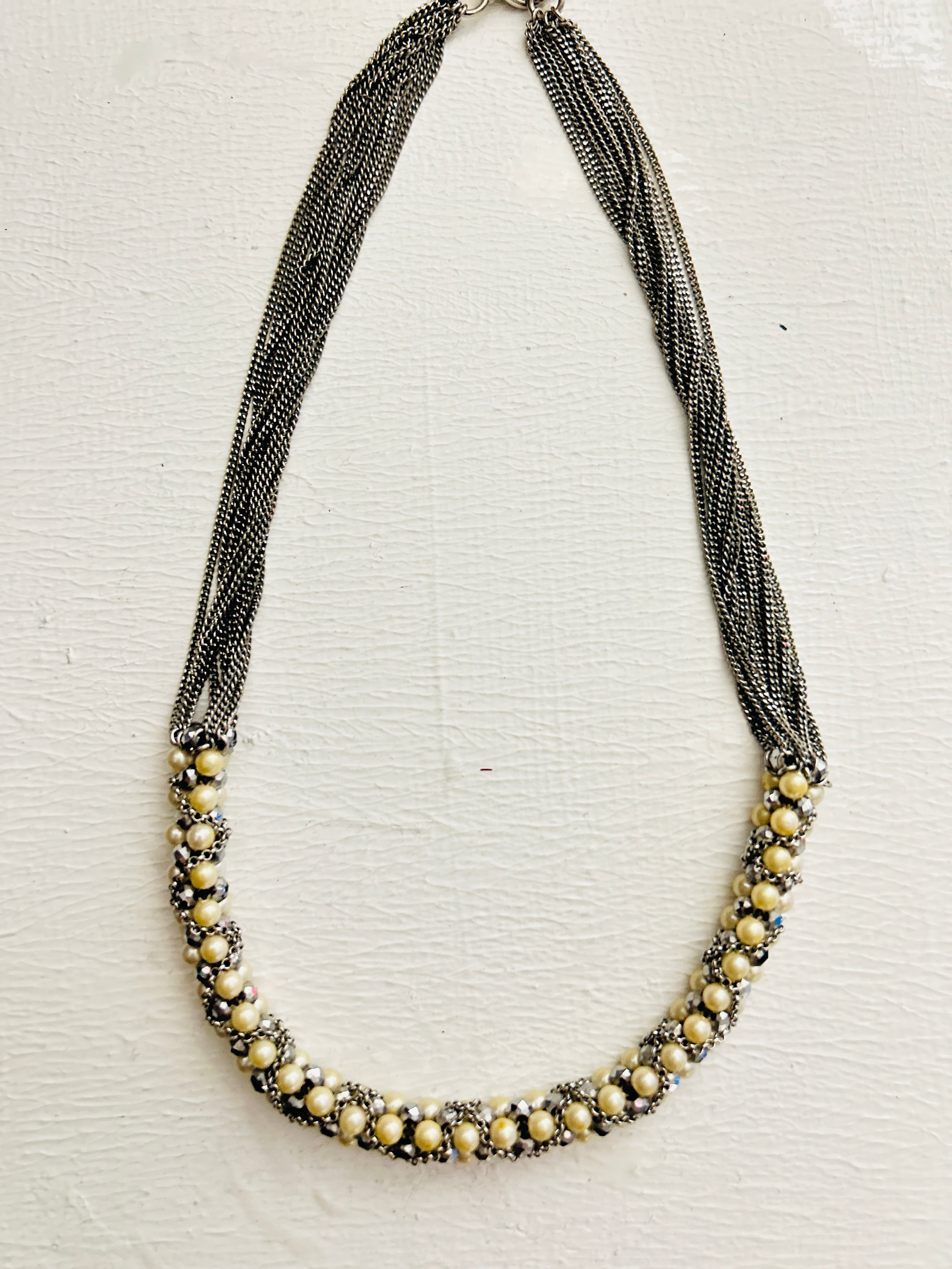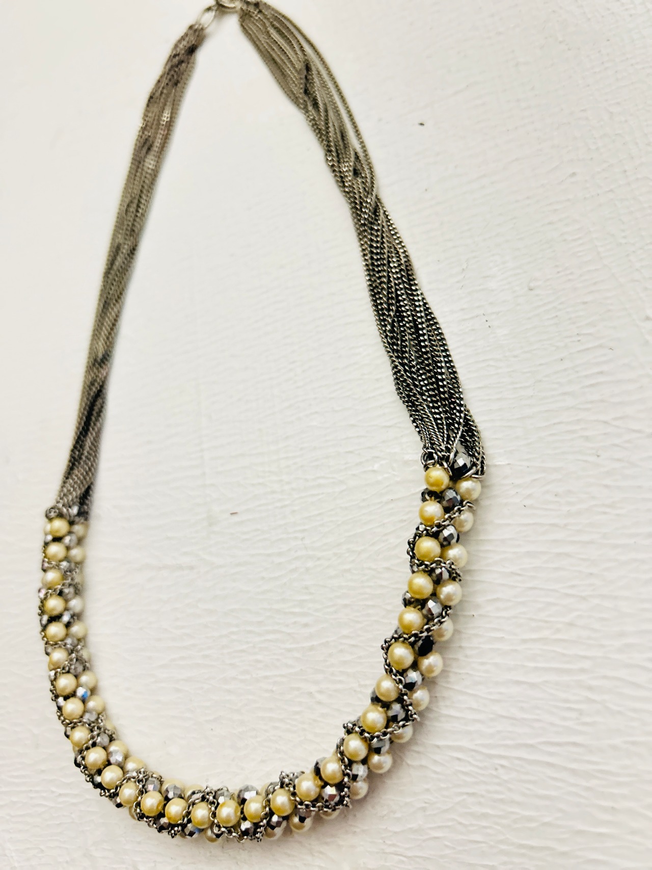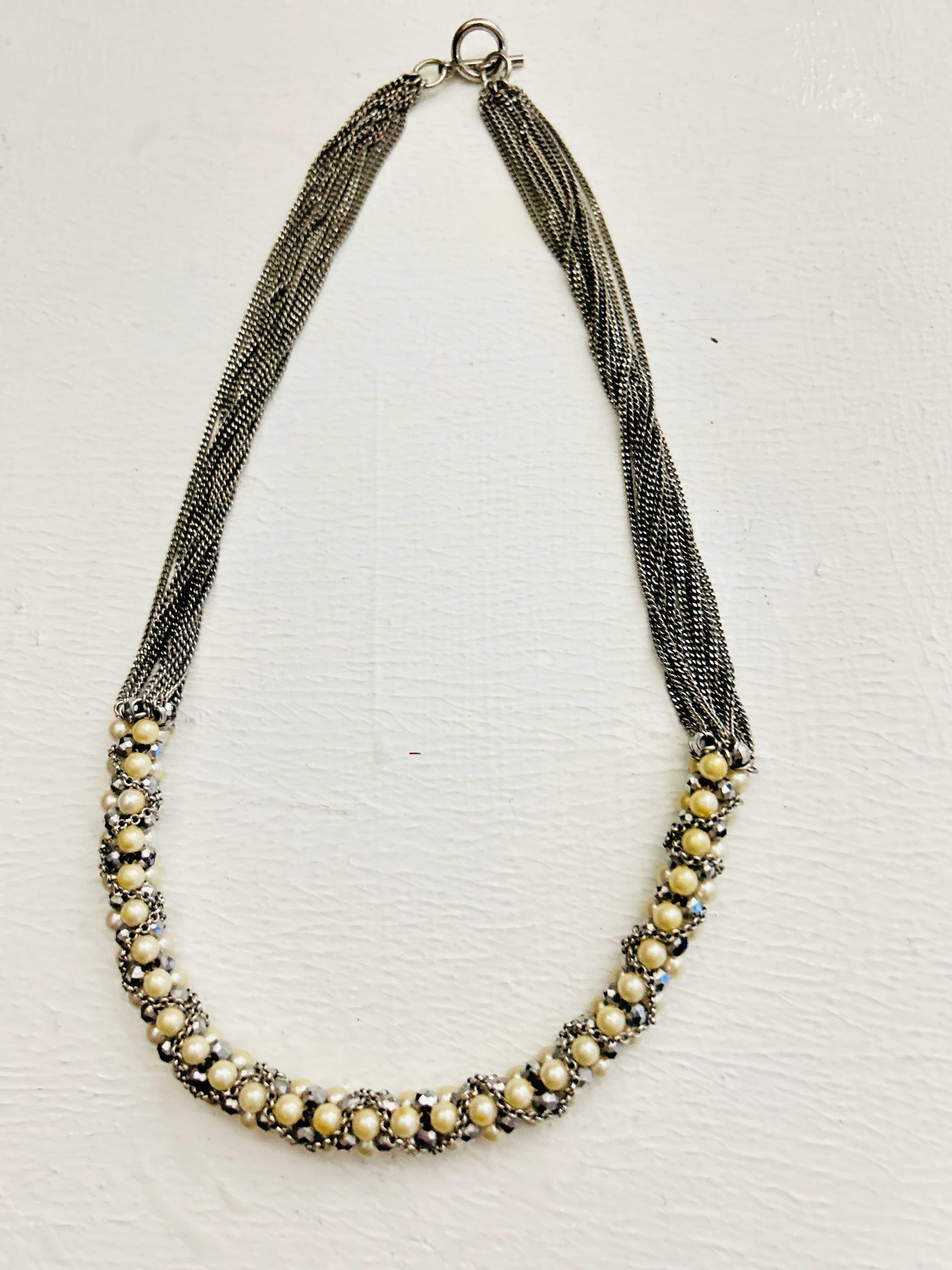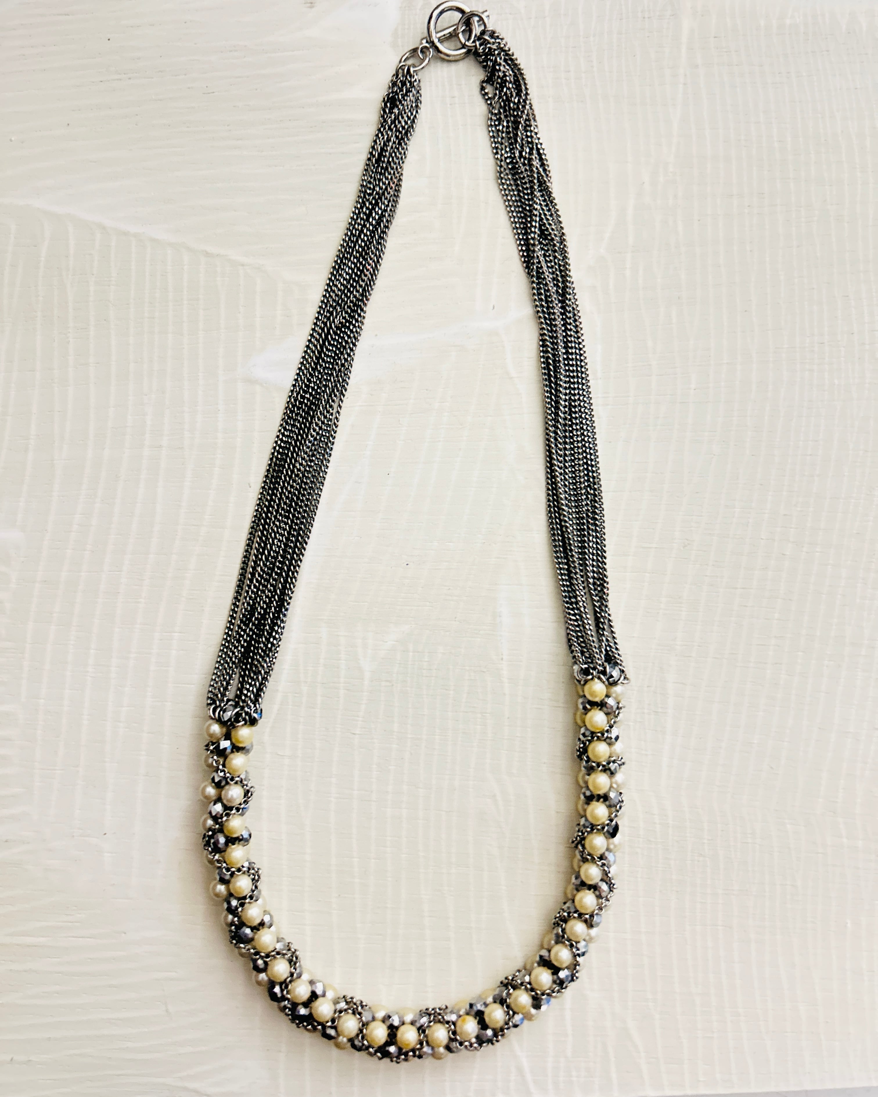 【限定1本、再販の予定はございません】画家が本気で組んだネックレス14弾 70年代フランスチェーンとビジューとパールのヴィンテージネックレス