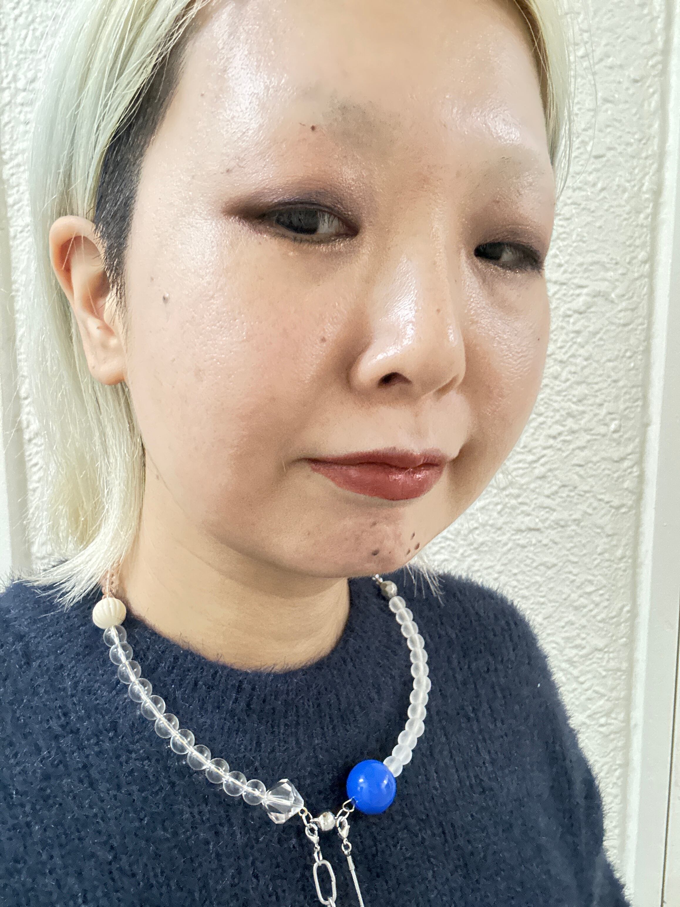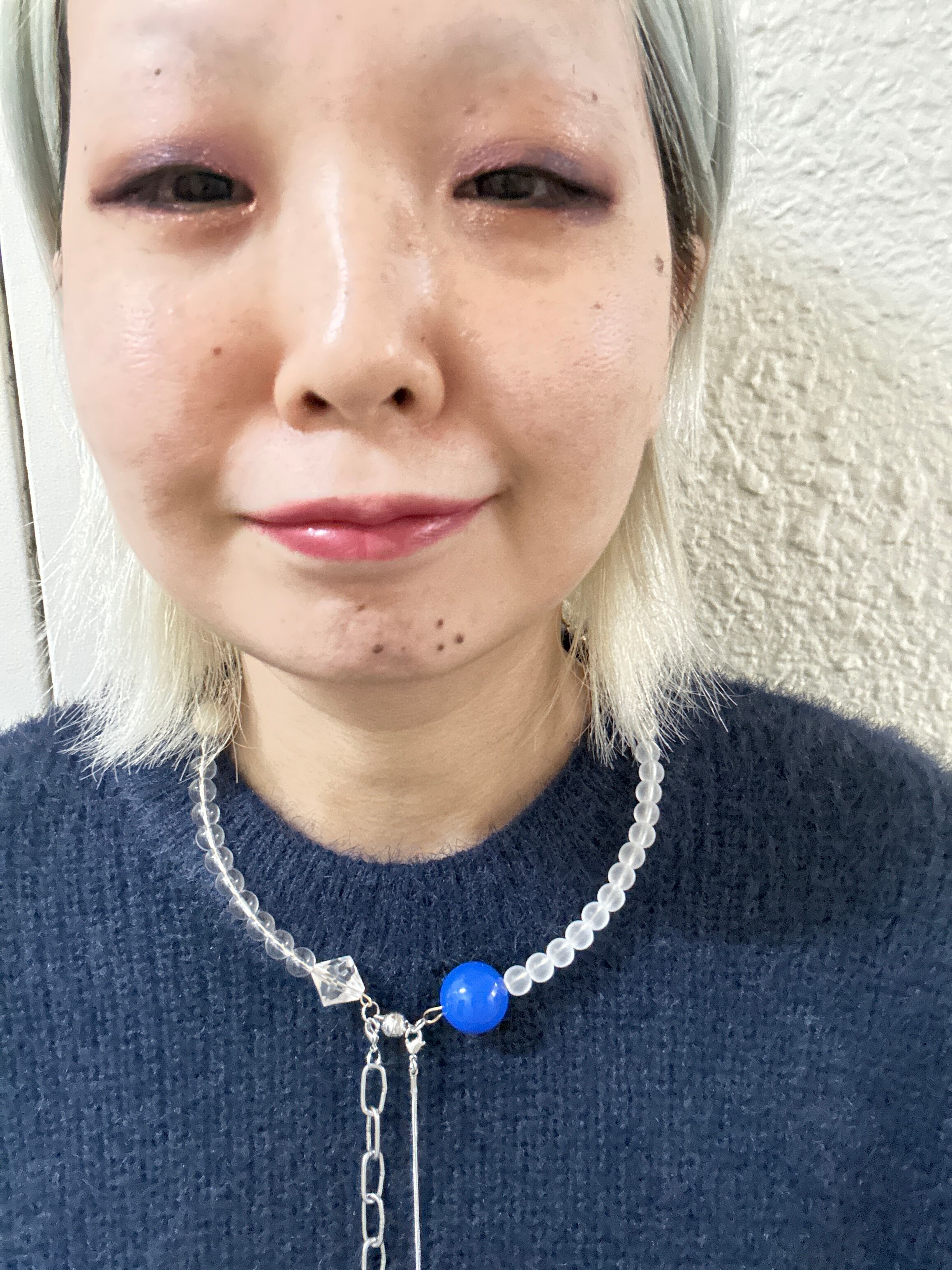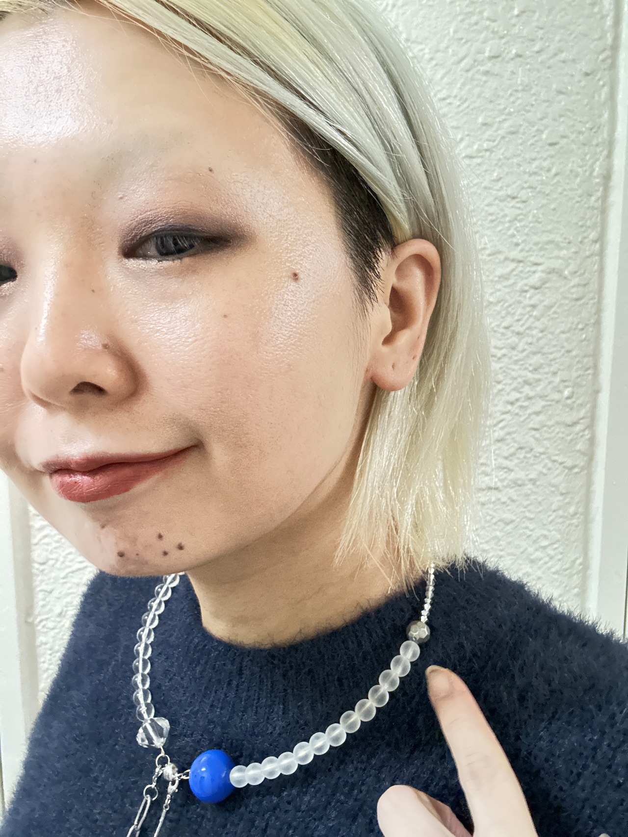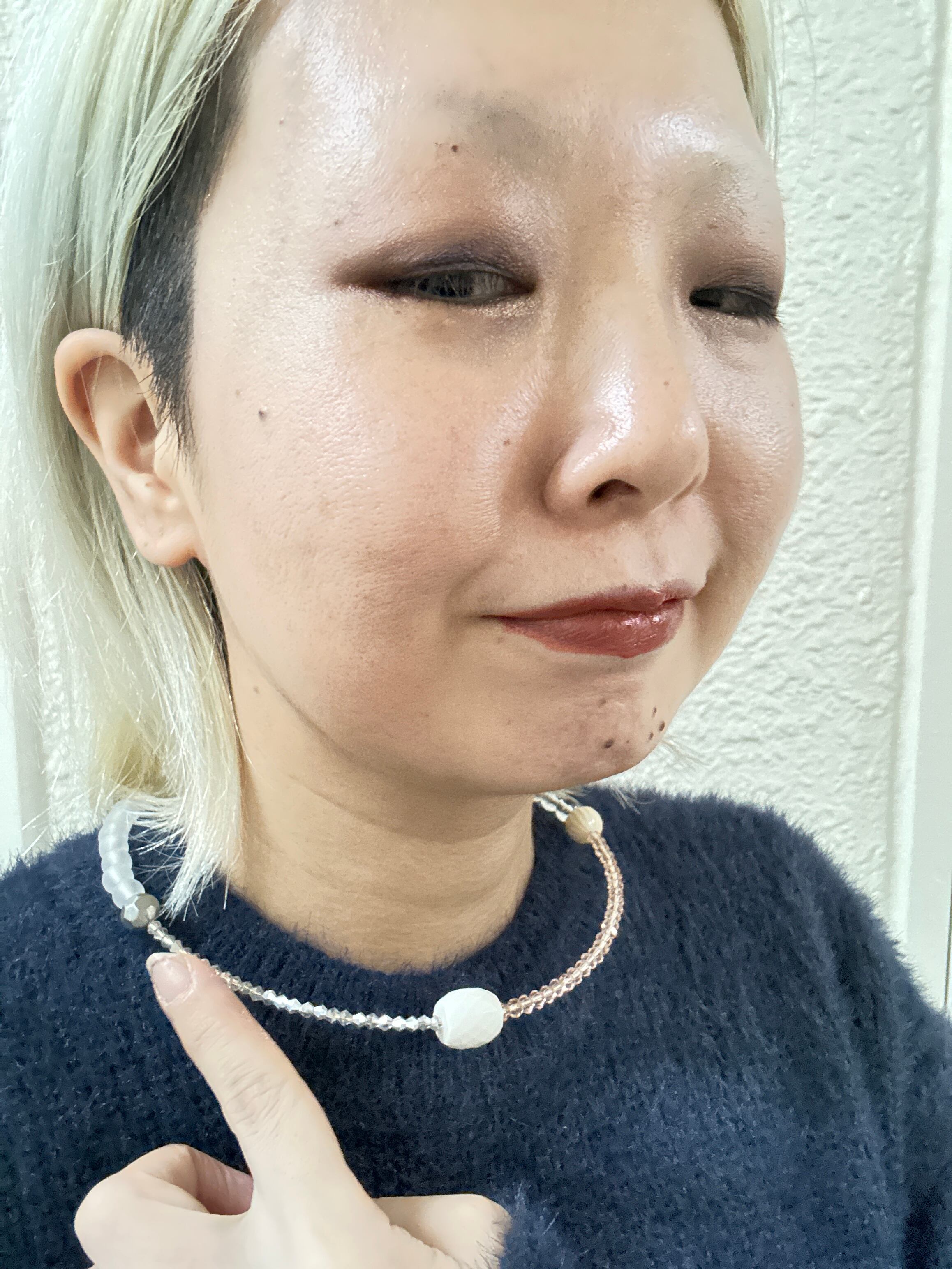 あとは後ろにチェーンを回すと普通のビーズのネックレスを着けているようですが、