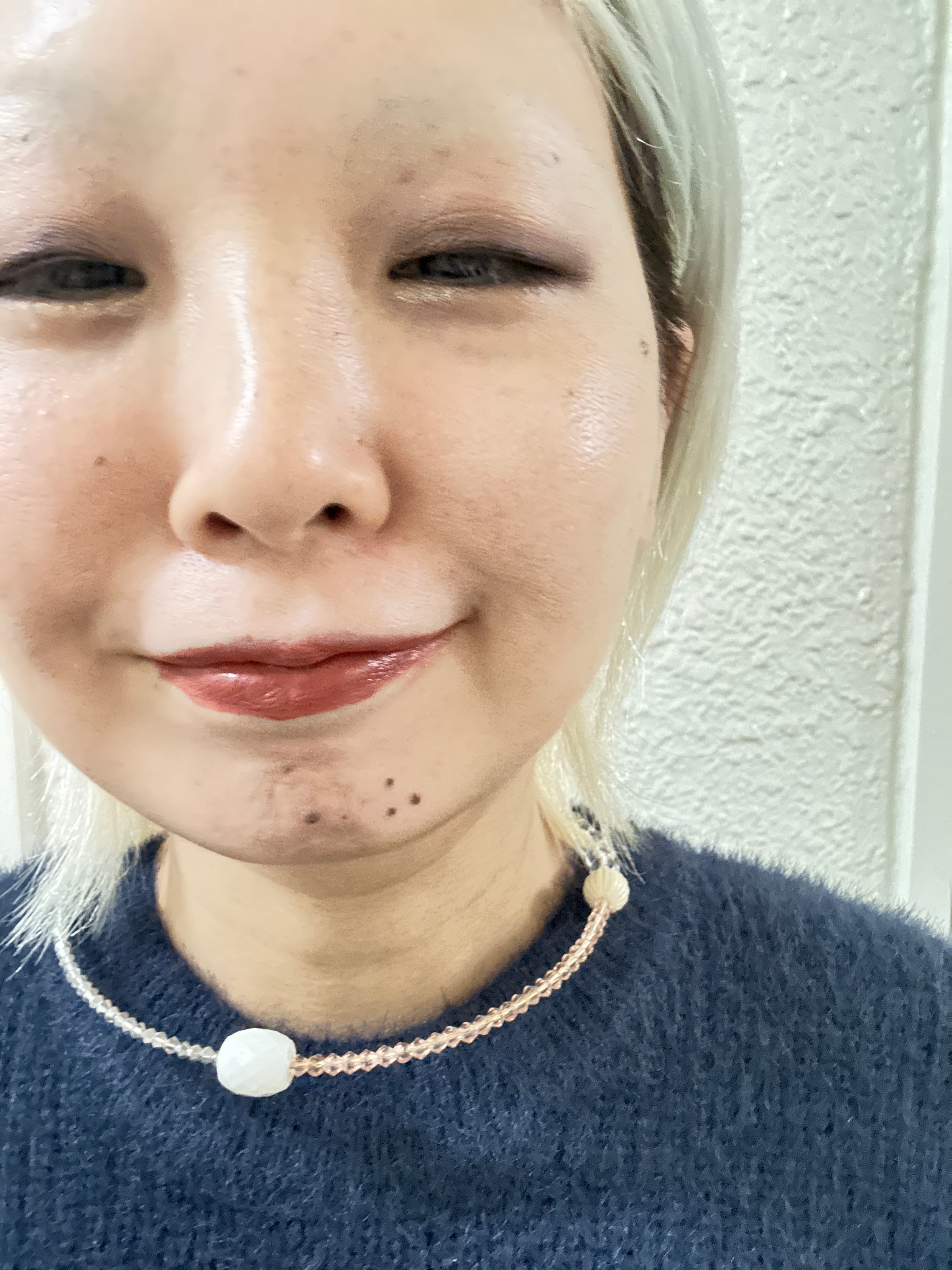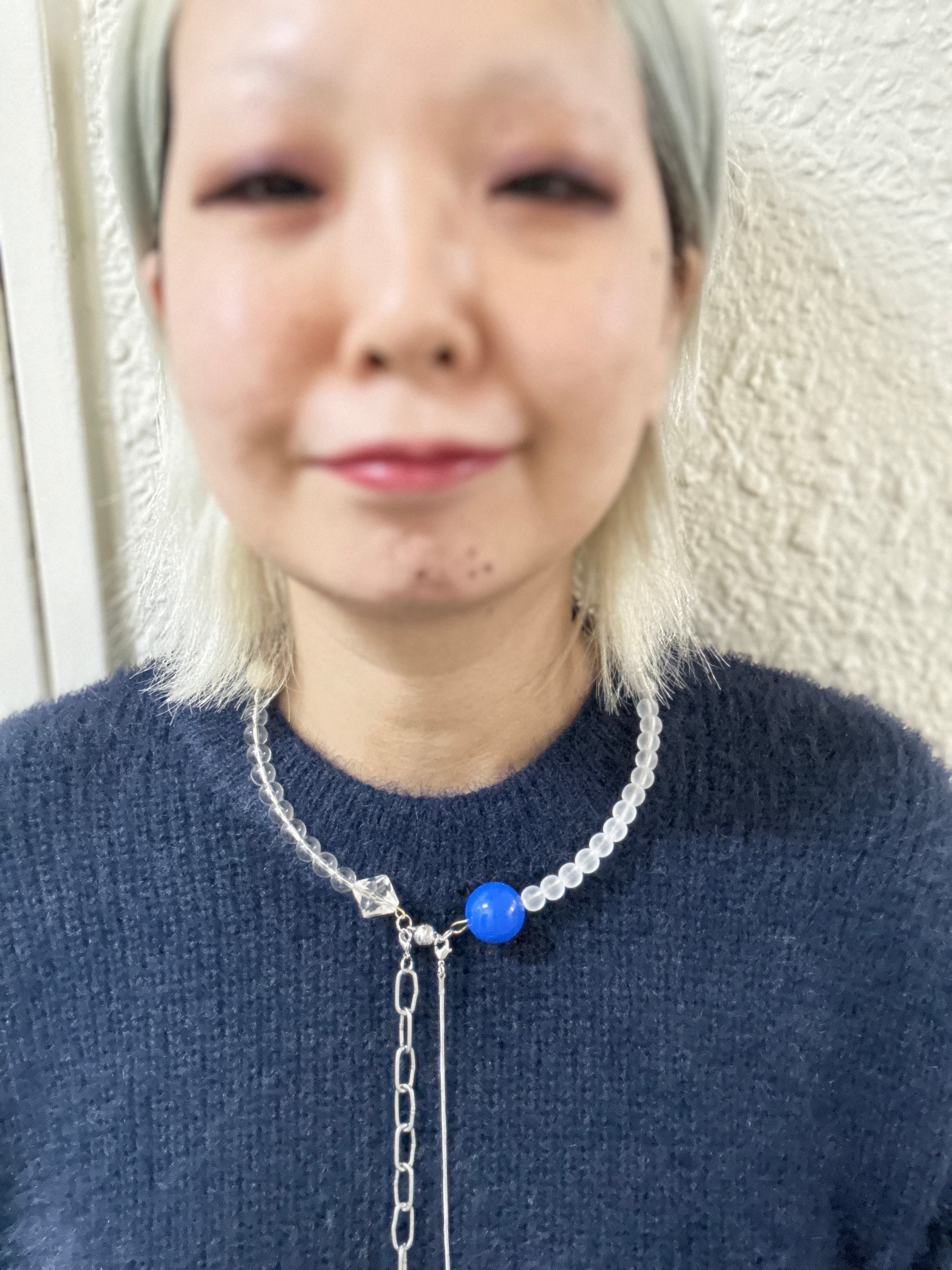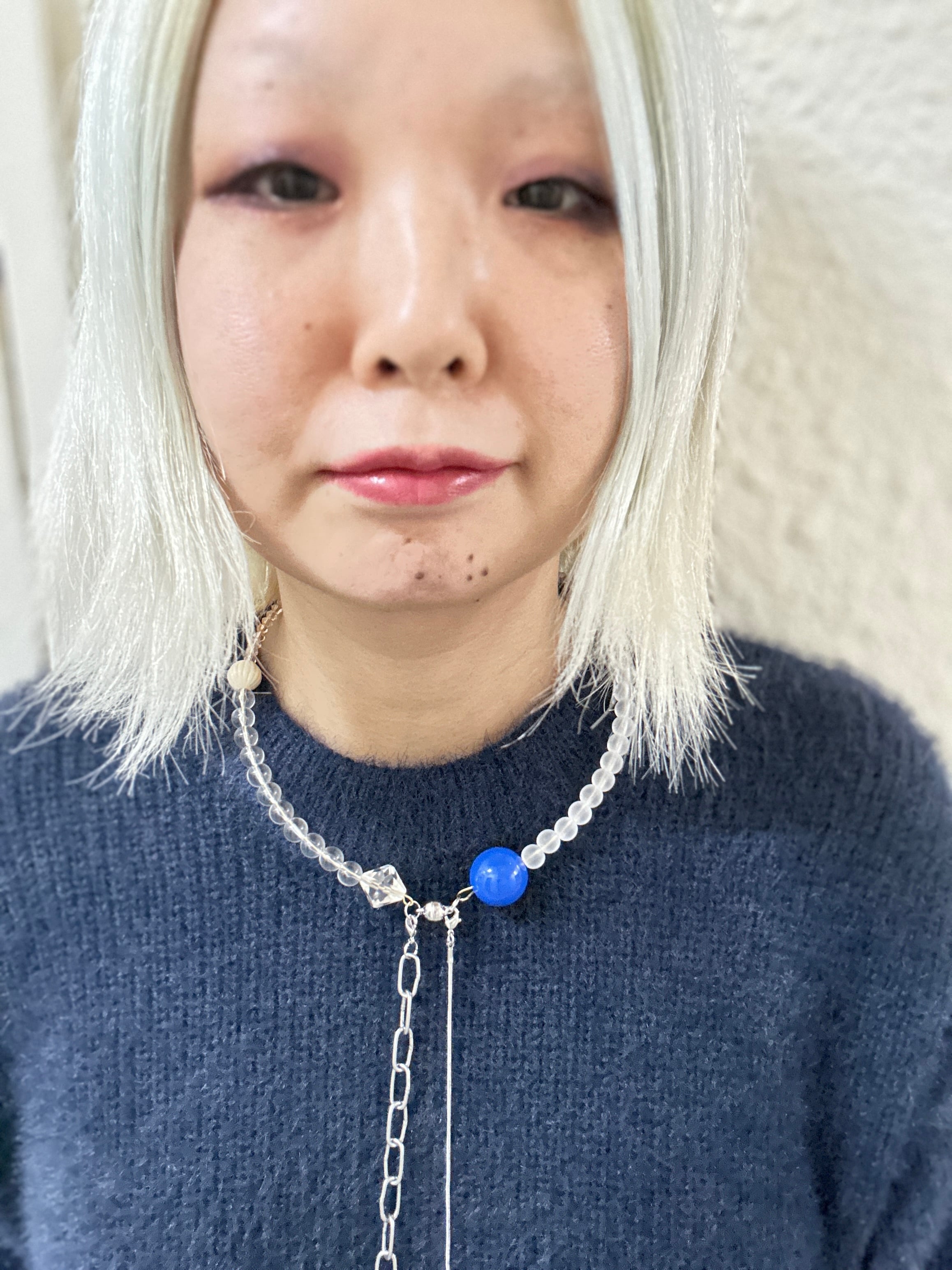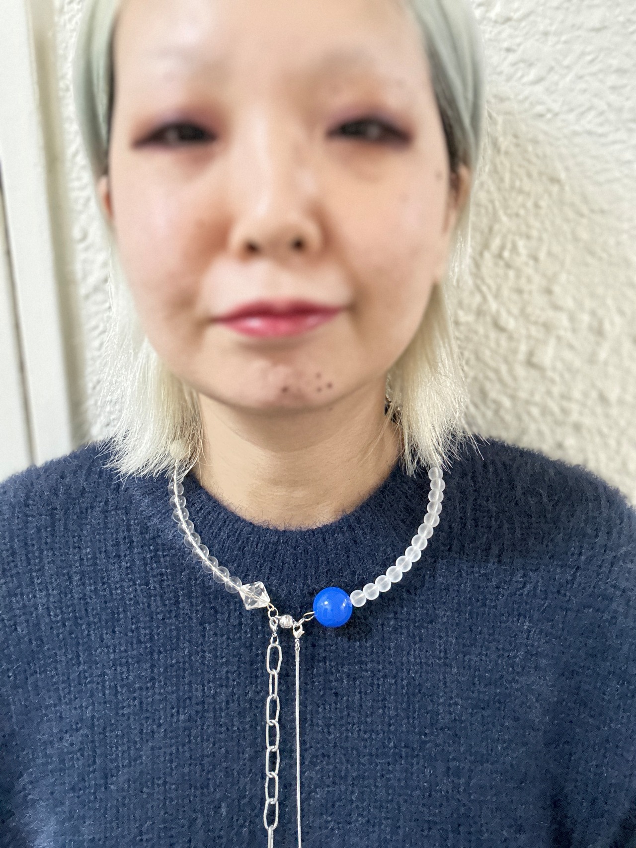 あとは後ろにチェーンを回すと普通のビーズのネックレスを着けているようですが、