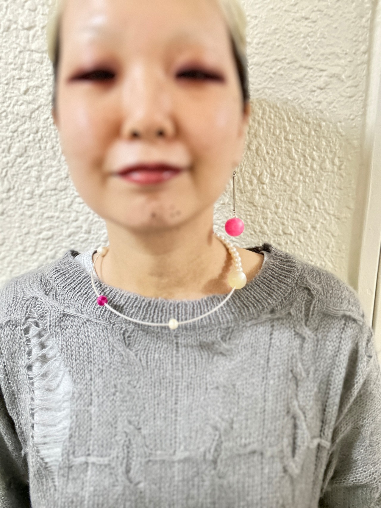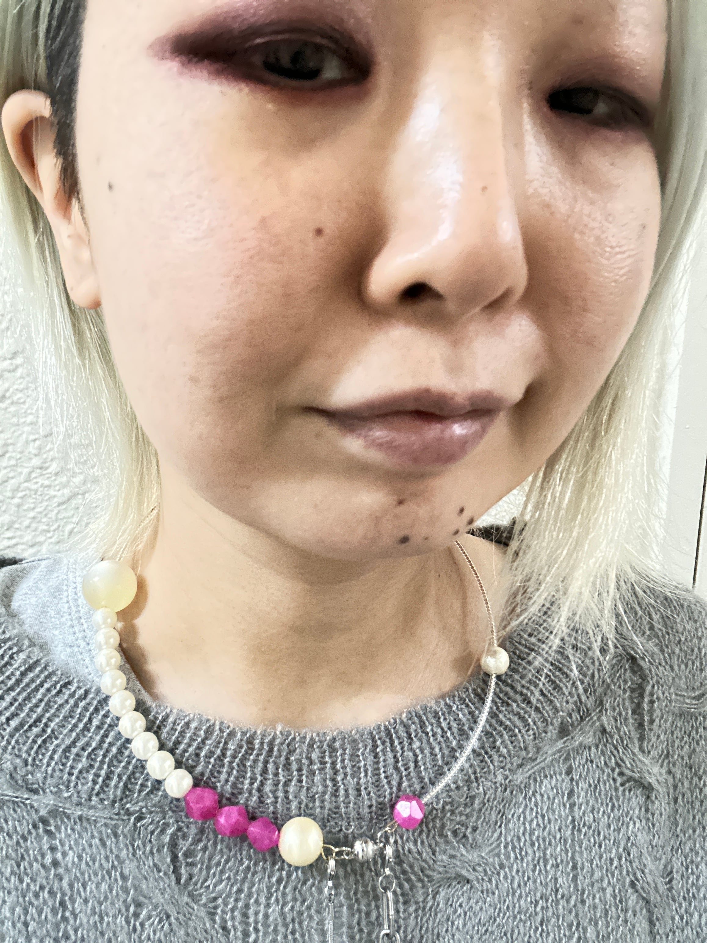 あとは後ろにチェーンを回すと普通のビーズのネックレスを着けているようですが、