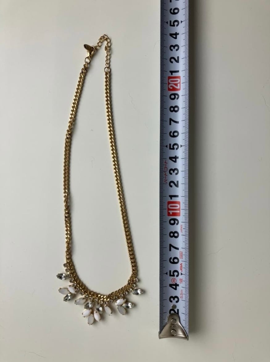 割とチェーンが長いので、お手持ちの華奢なネックレスと重ね付けして頂いても可愛いです。