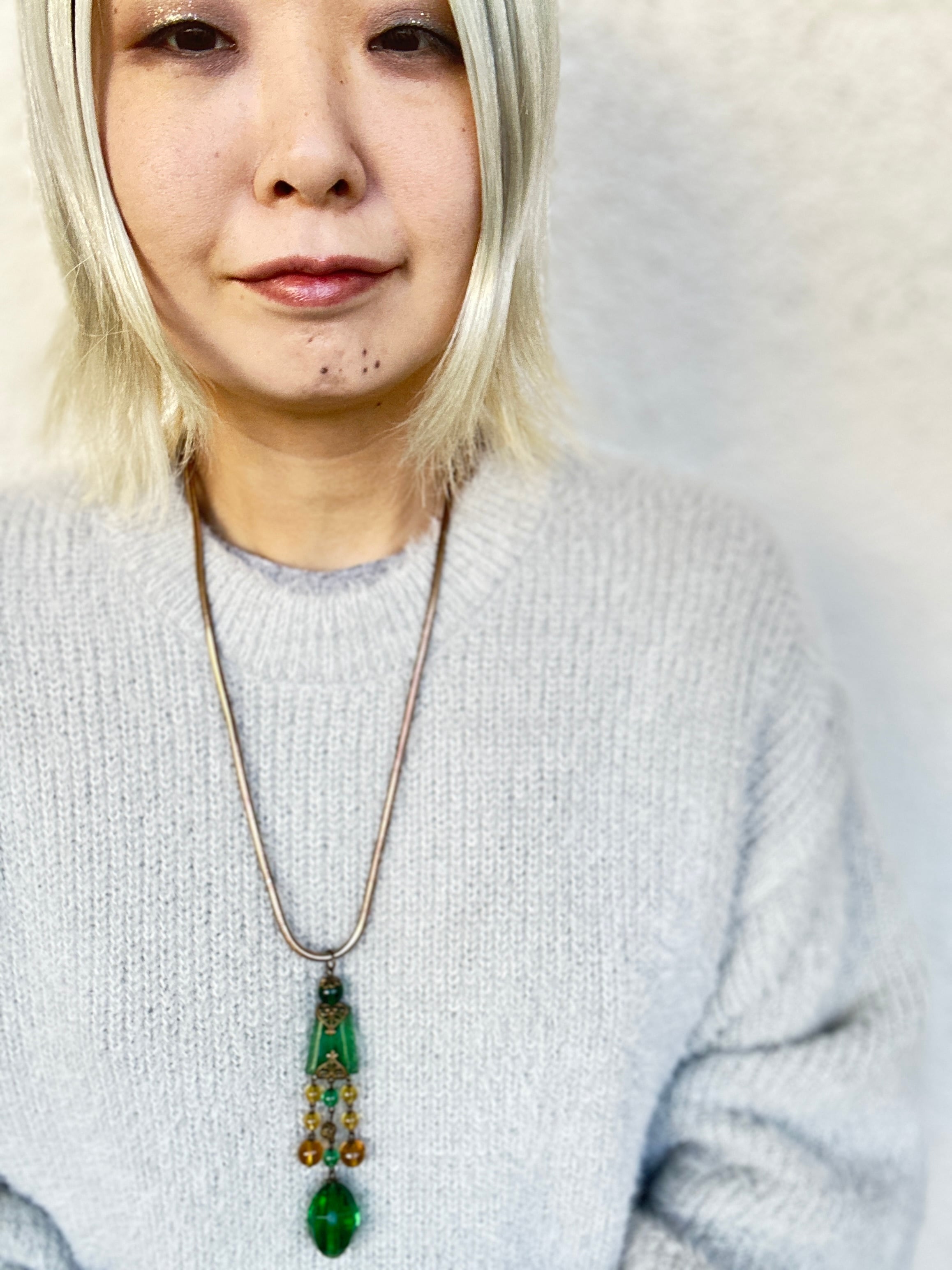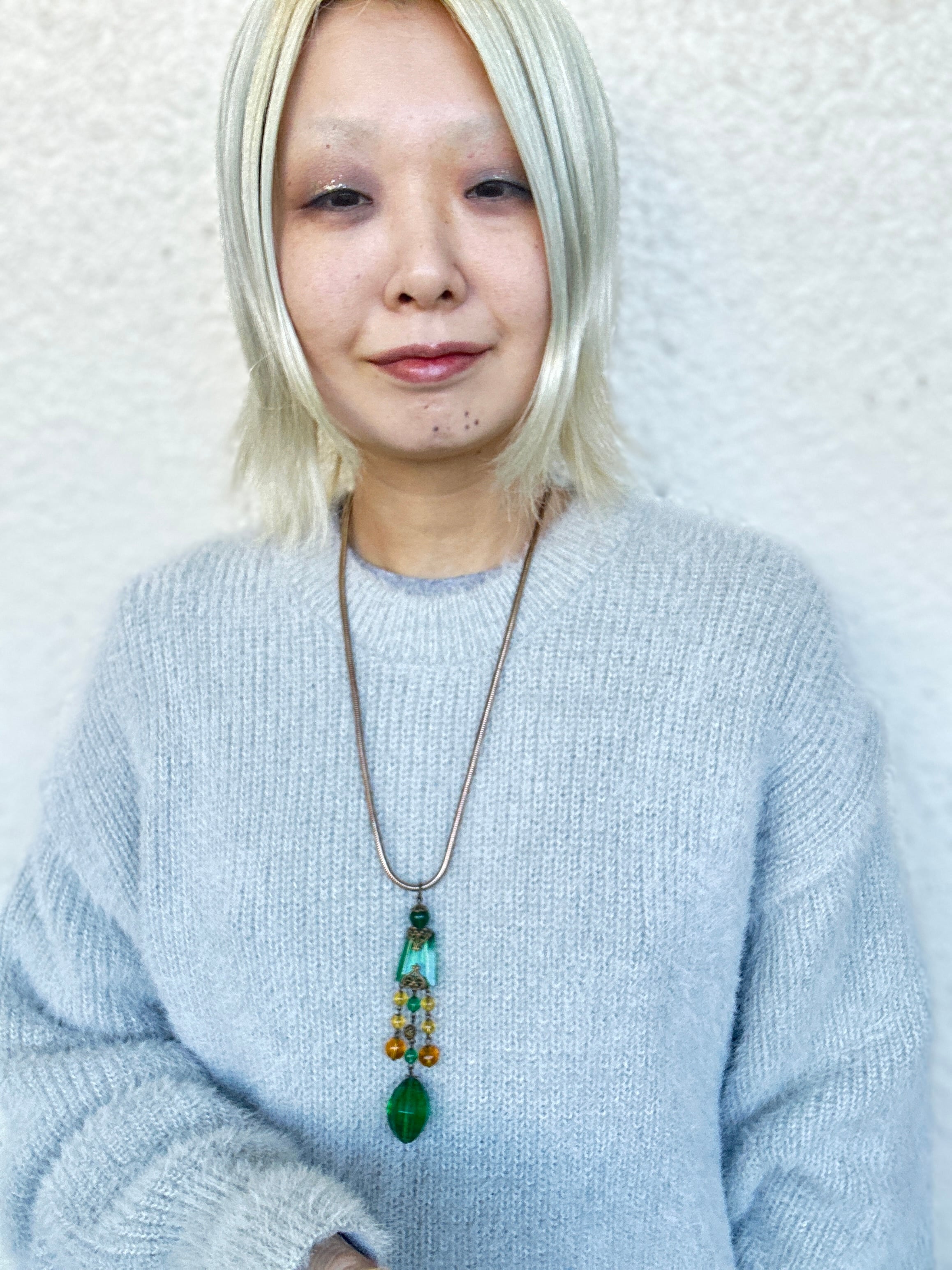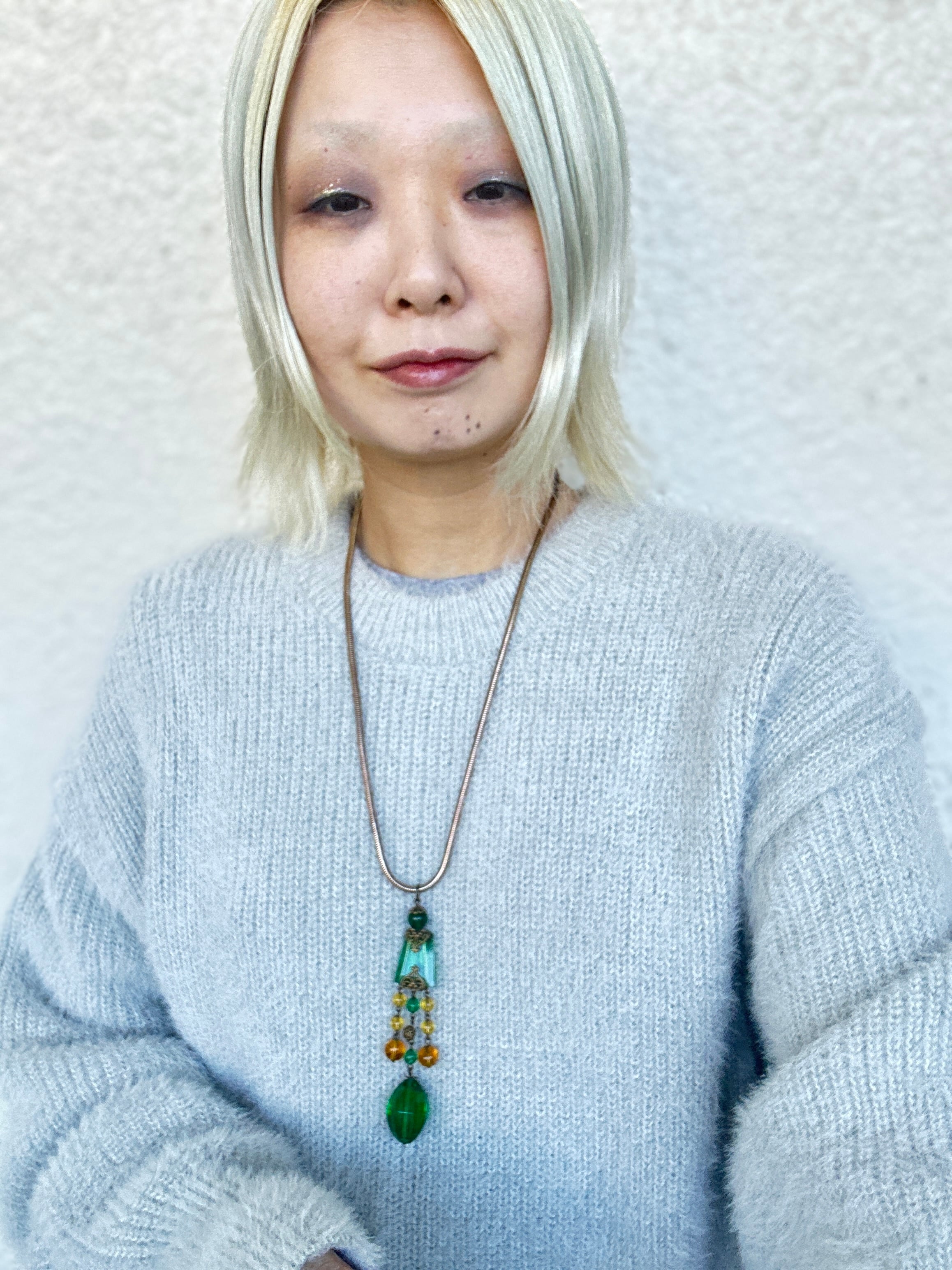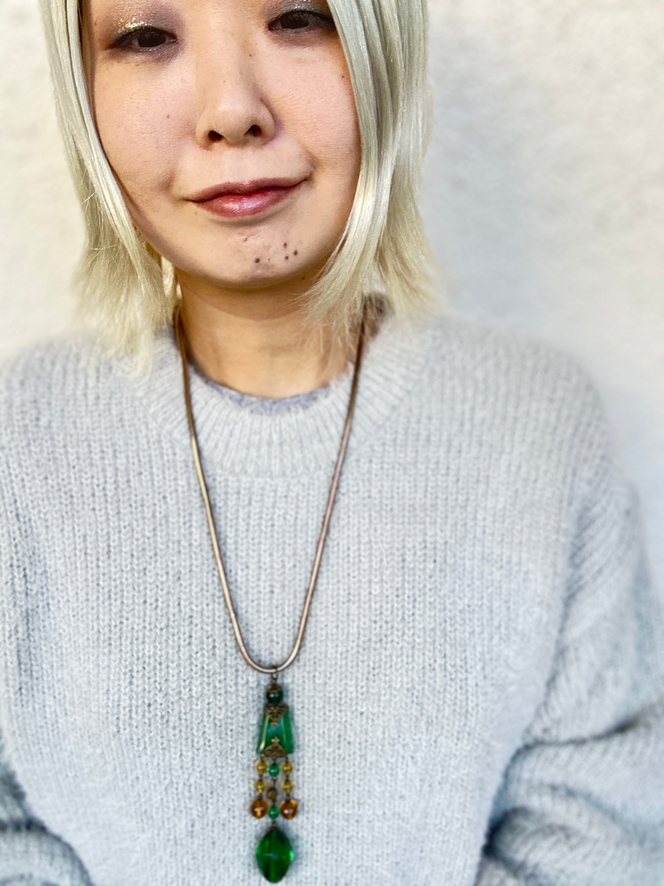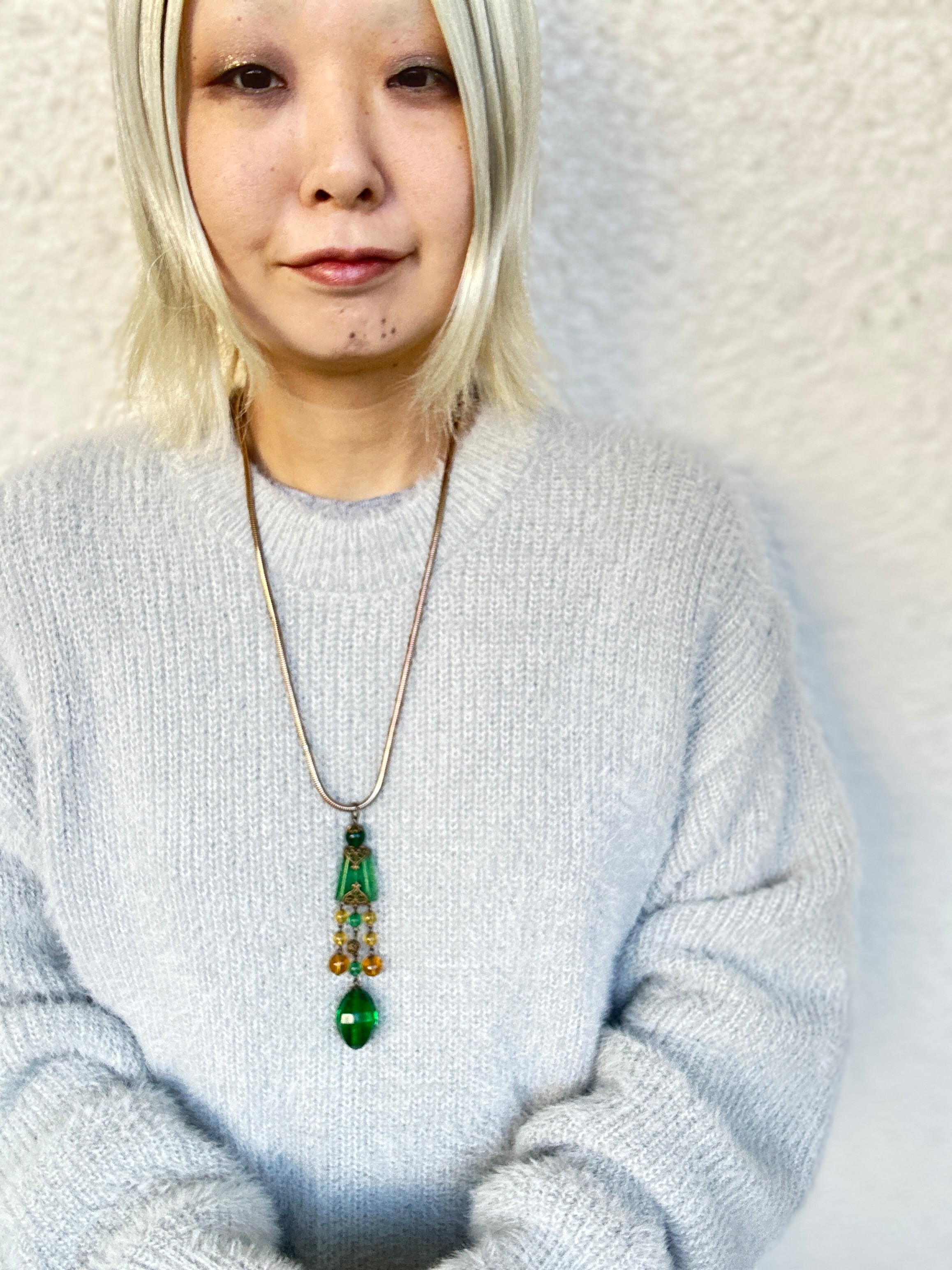 ロングネックレスですが、スネークチェーンと良く合い、インパクトのあるとても素敵なネックレスに仕上がりました。