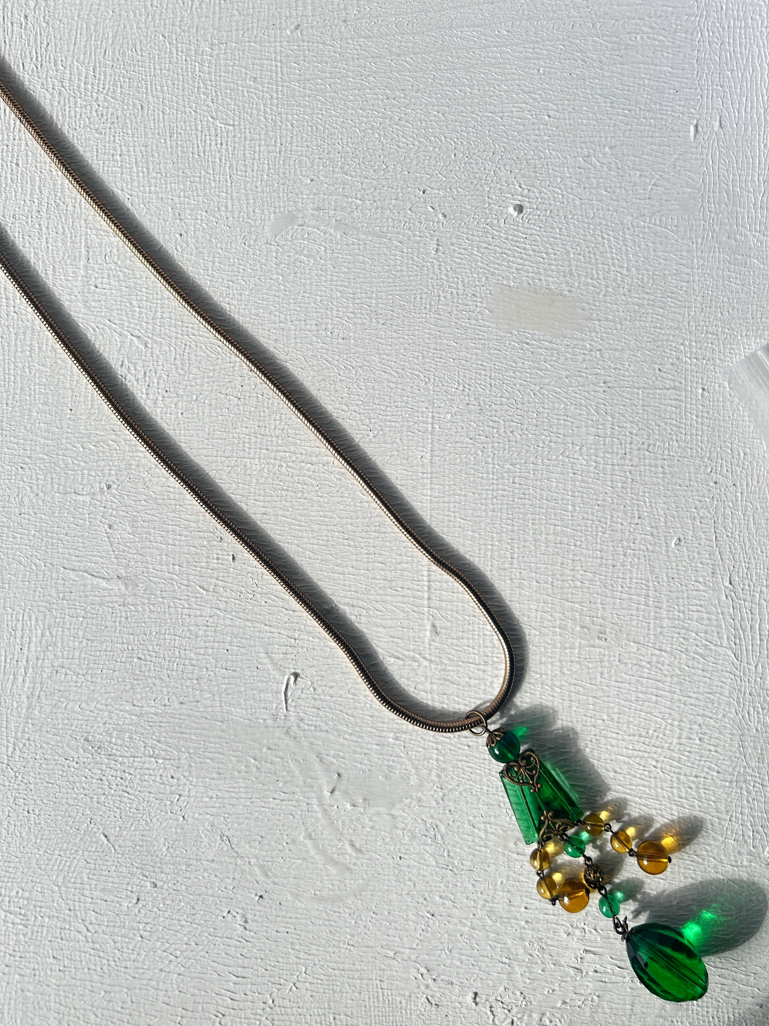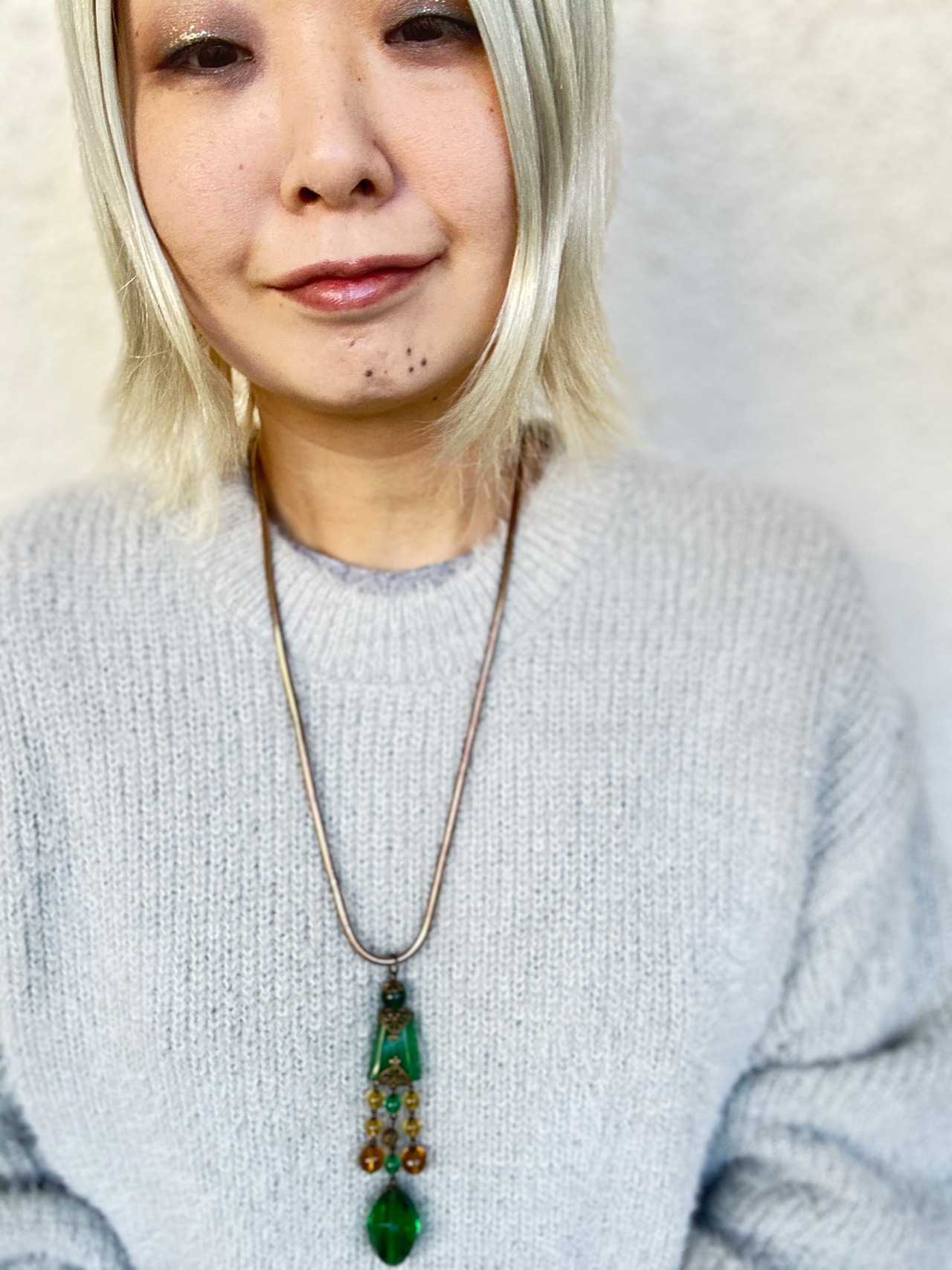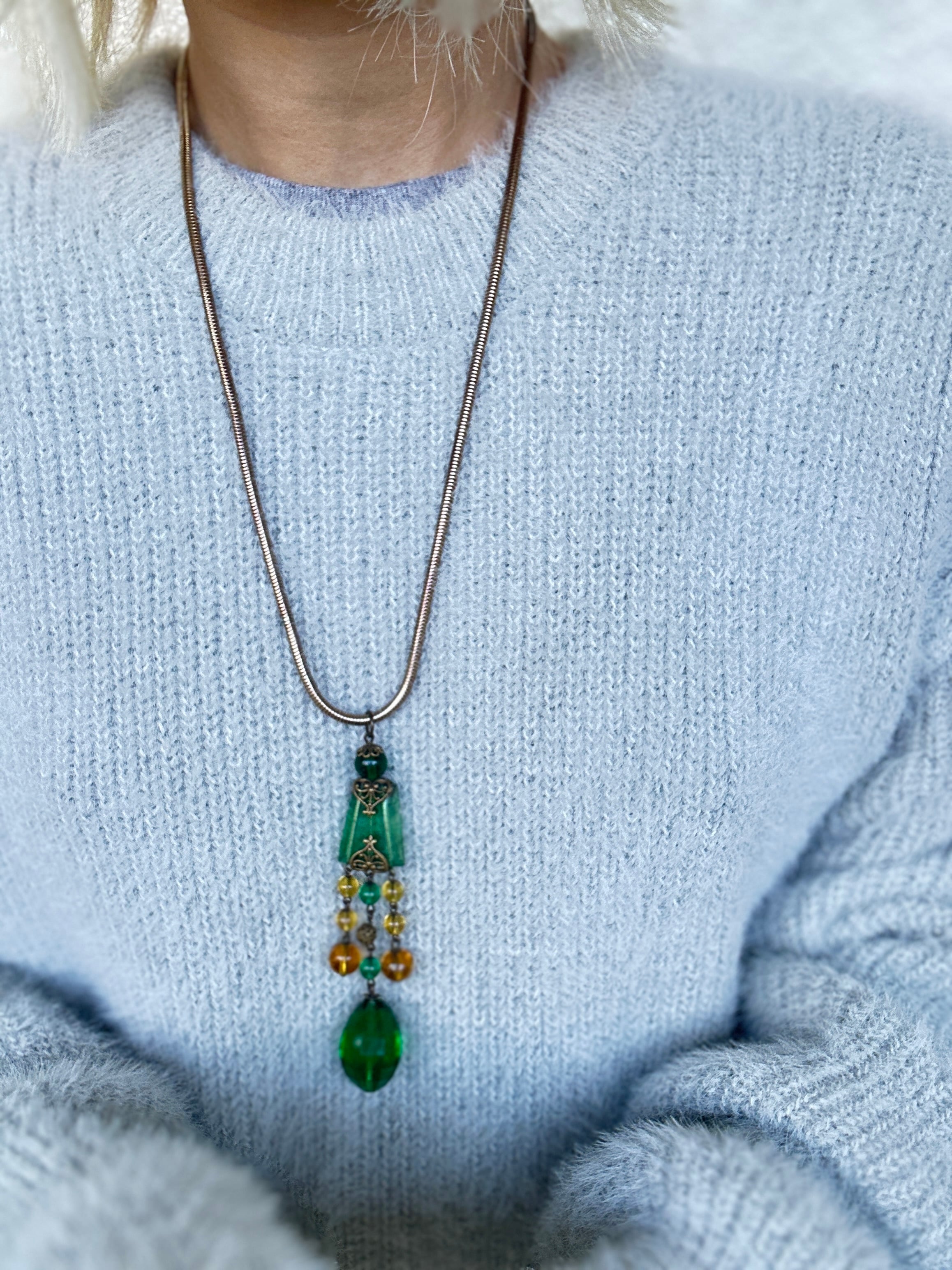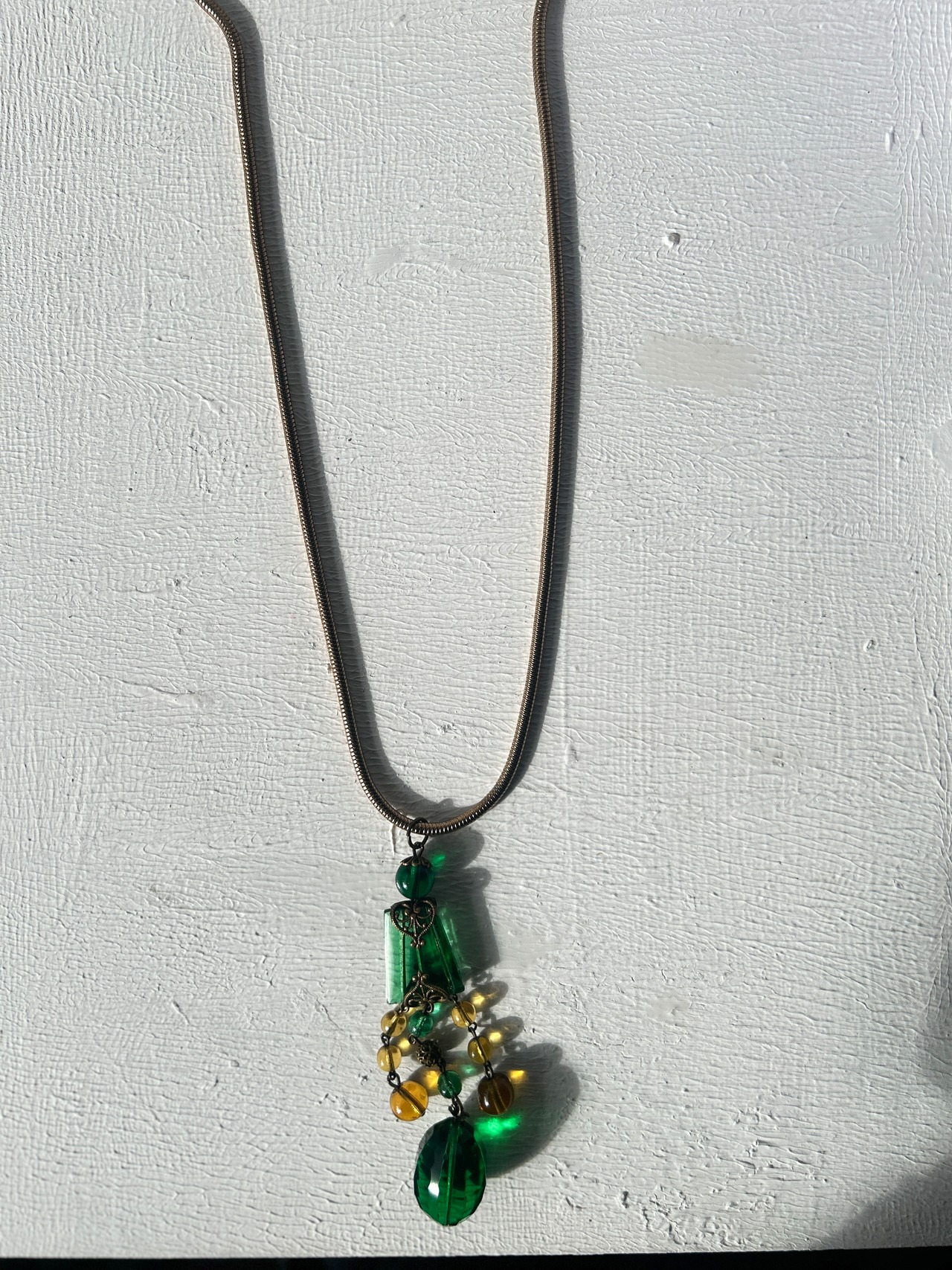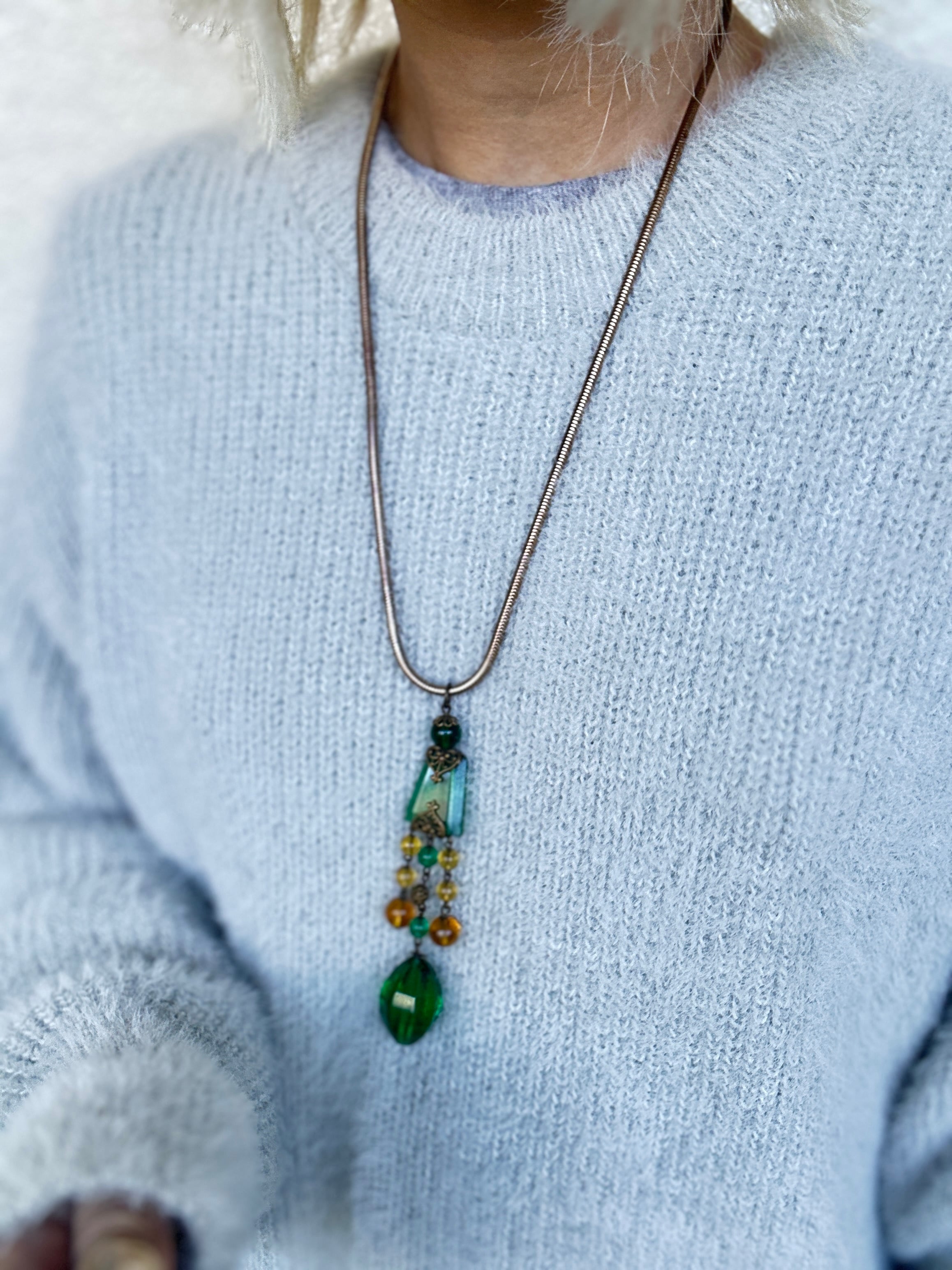 ロングネックレスですが、スネークチェーンと良く合い、インパクトのあるとても素敵なネックレスに仕上がりました。