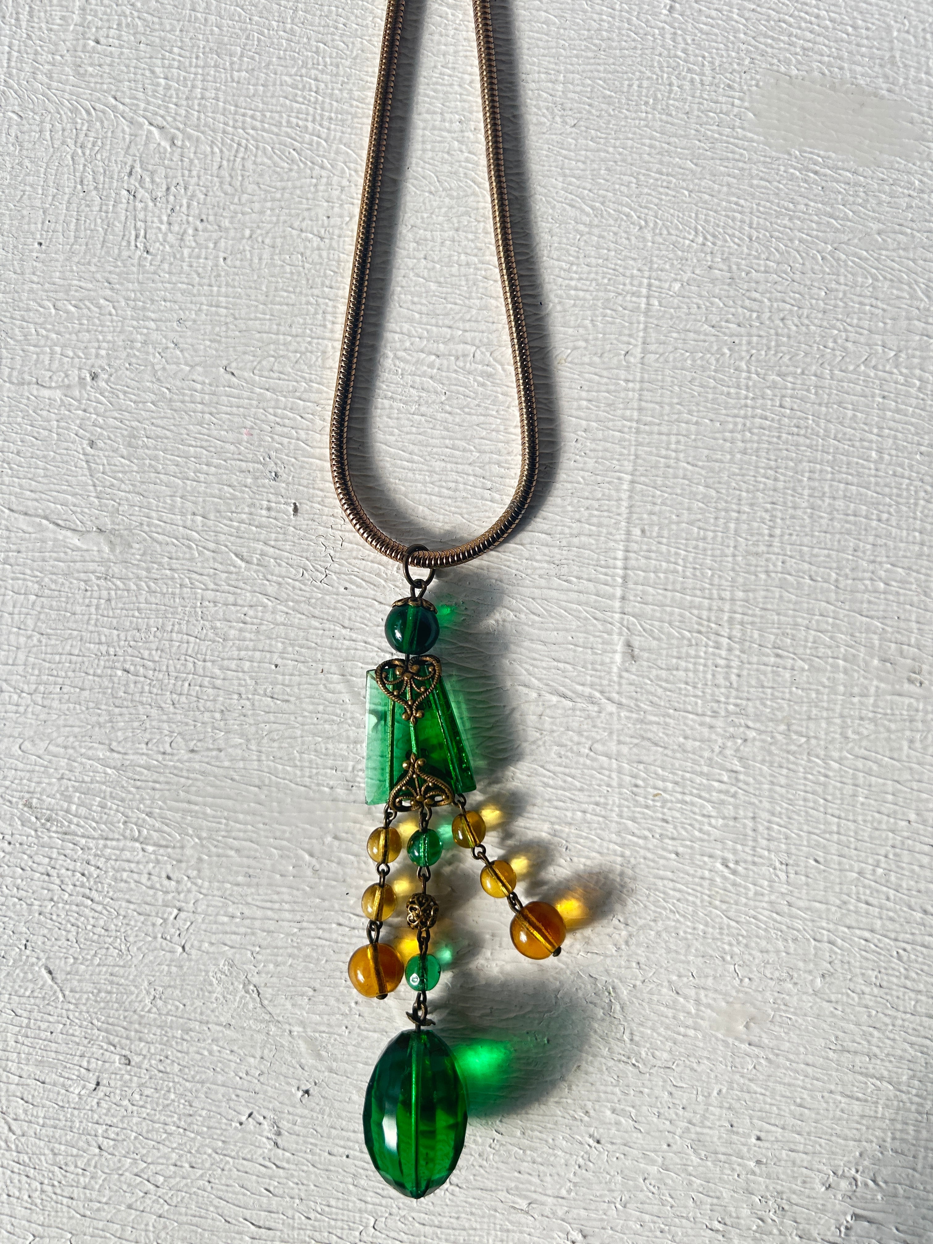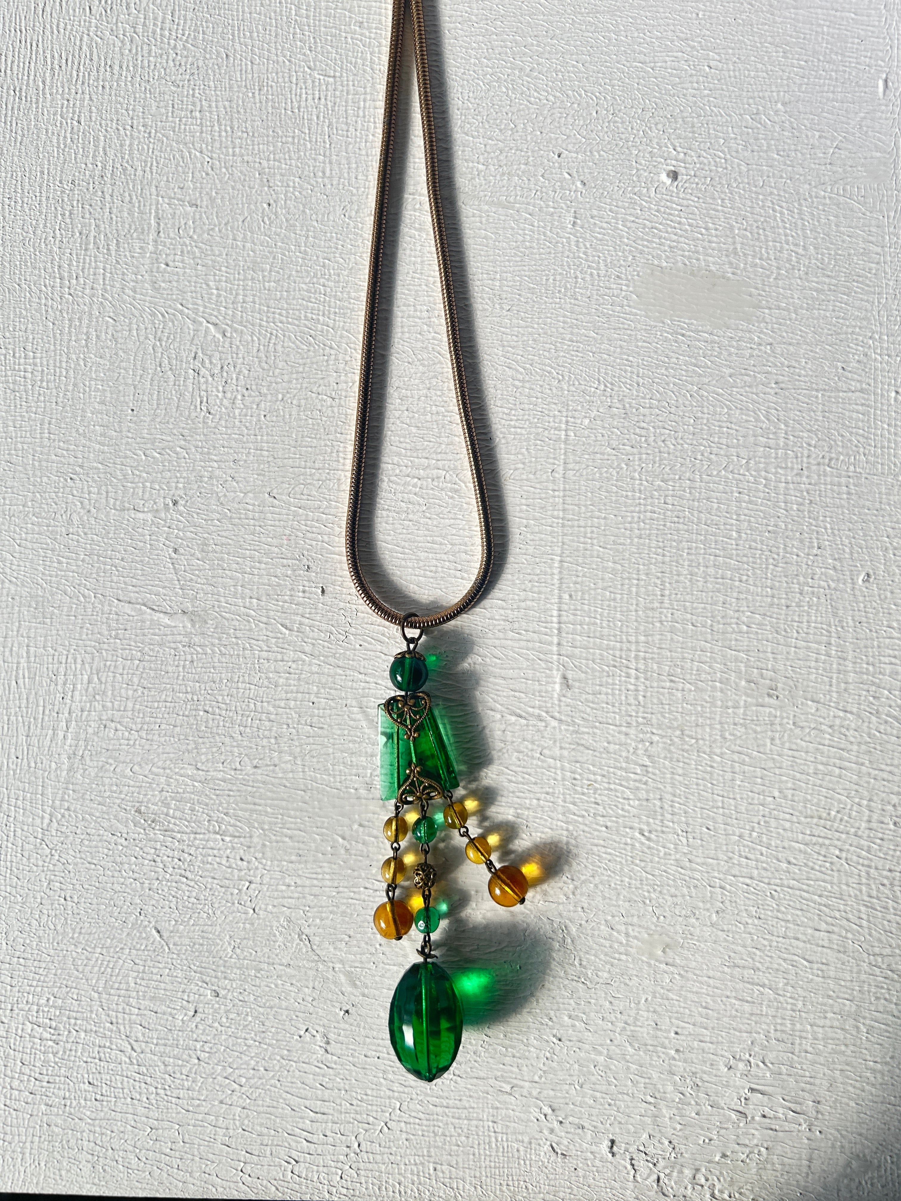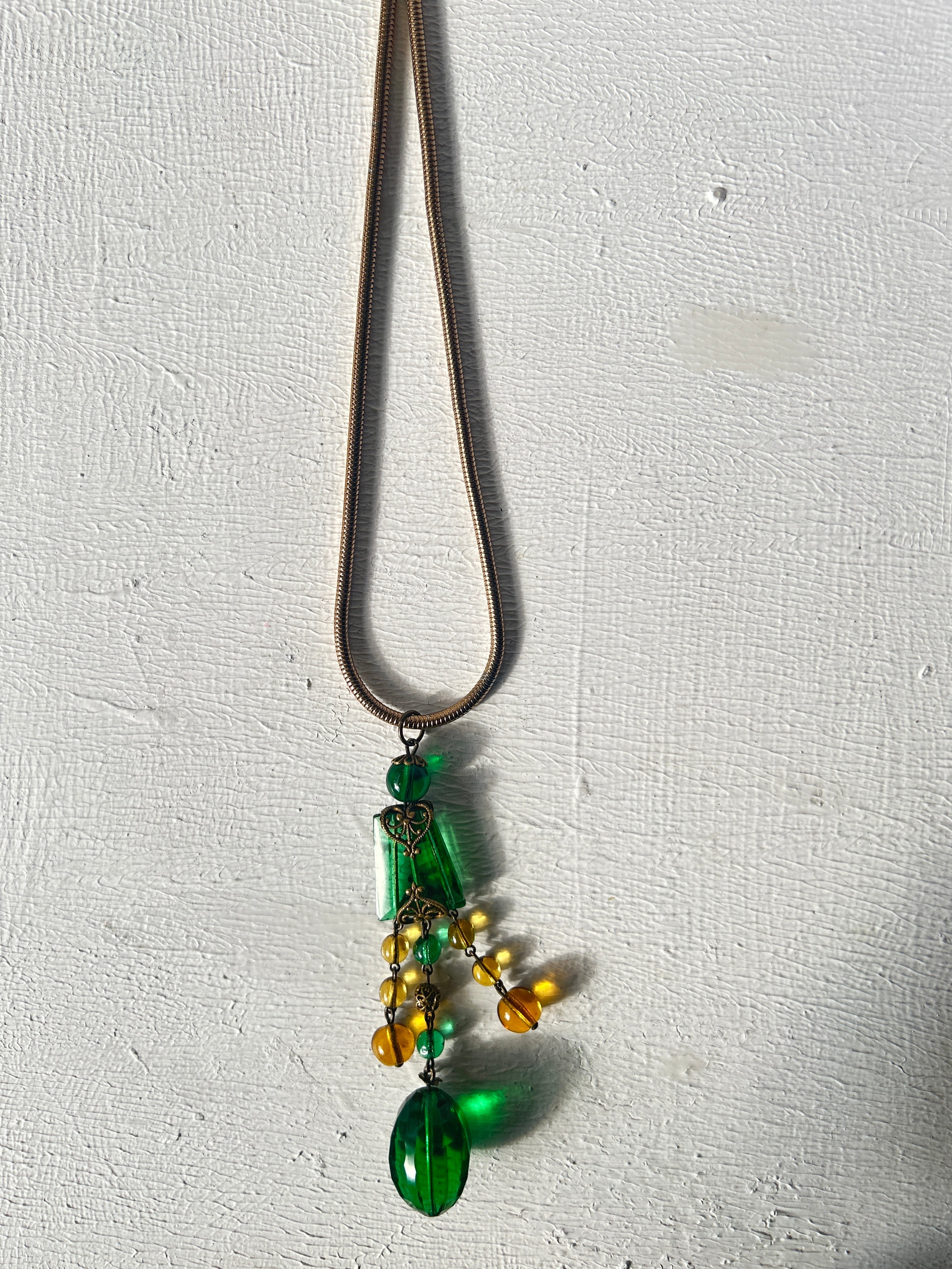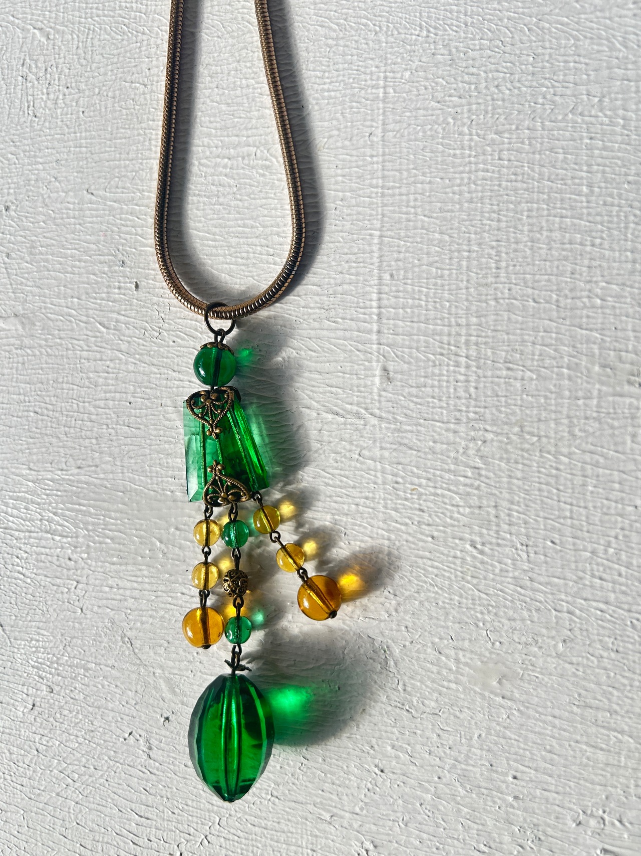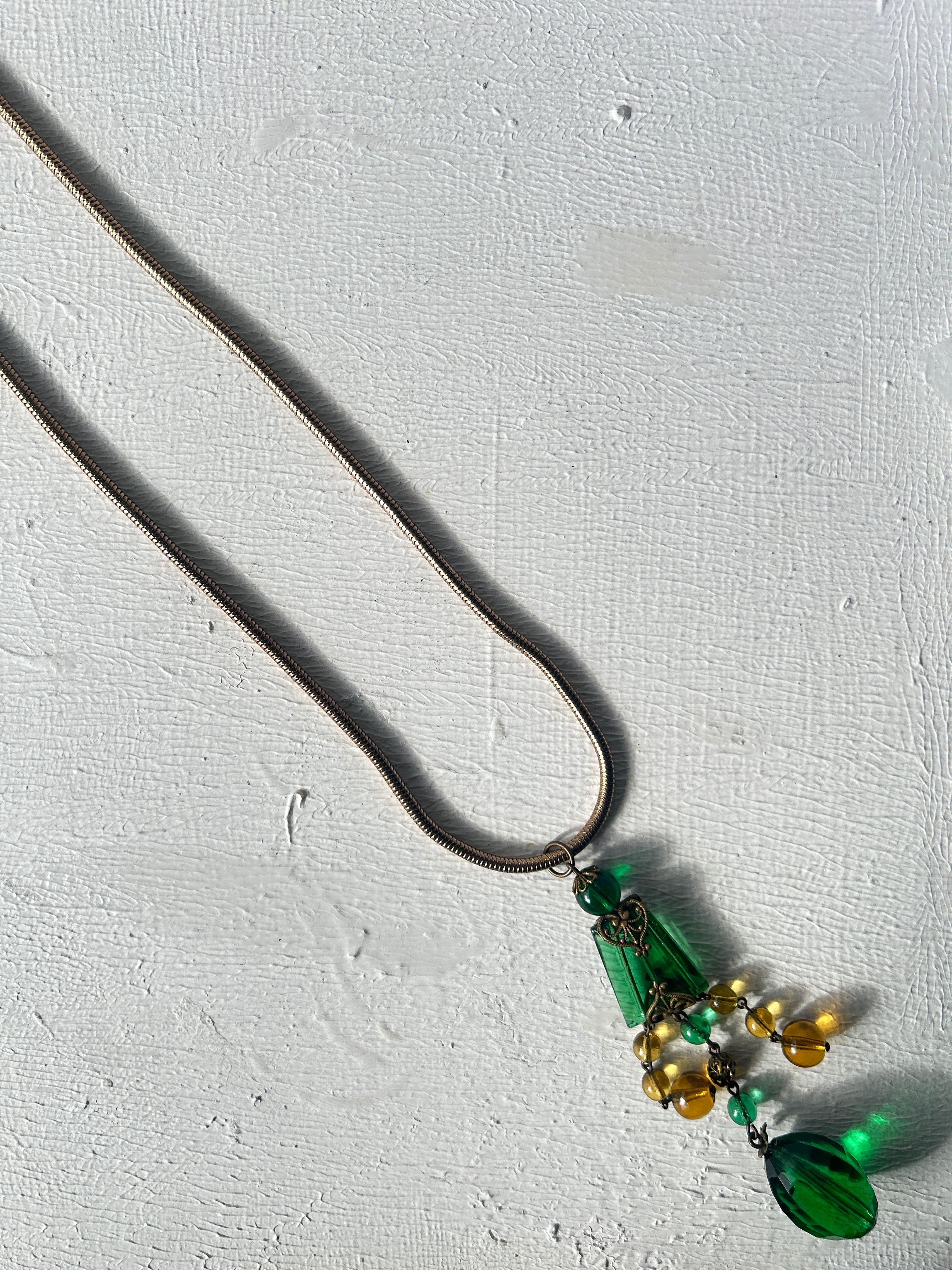 ロングネックレスですが、スネークチェーンと良く合い、インパクトのあるとても素敵なネックレスに仕上がりました。