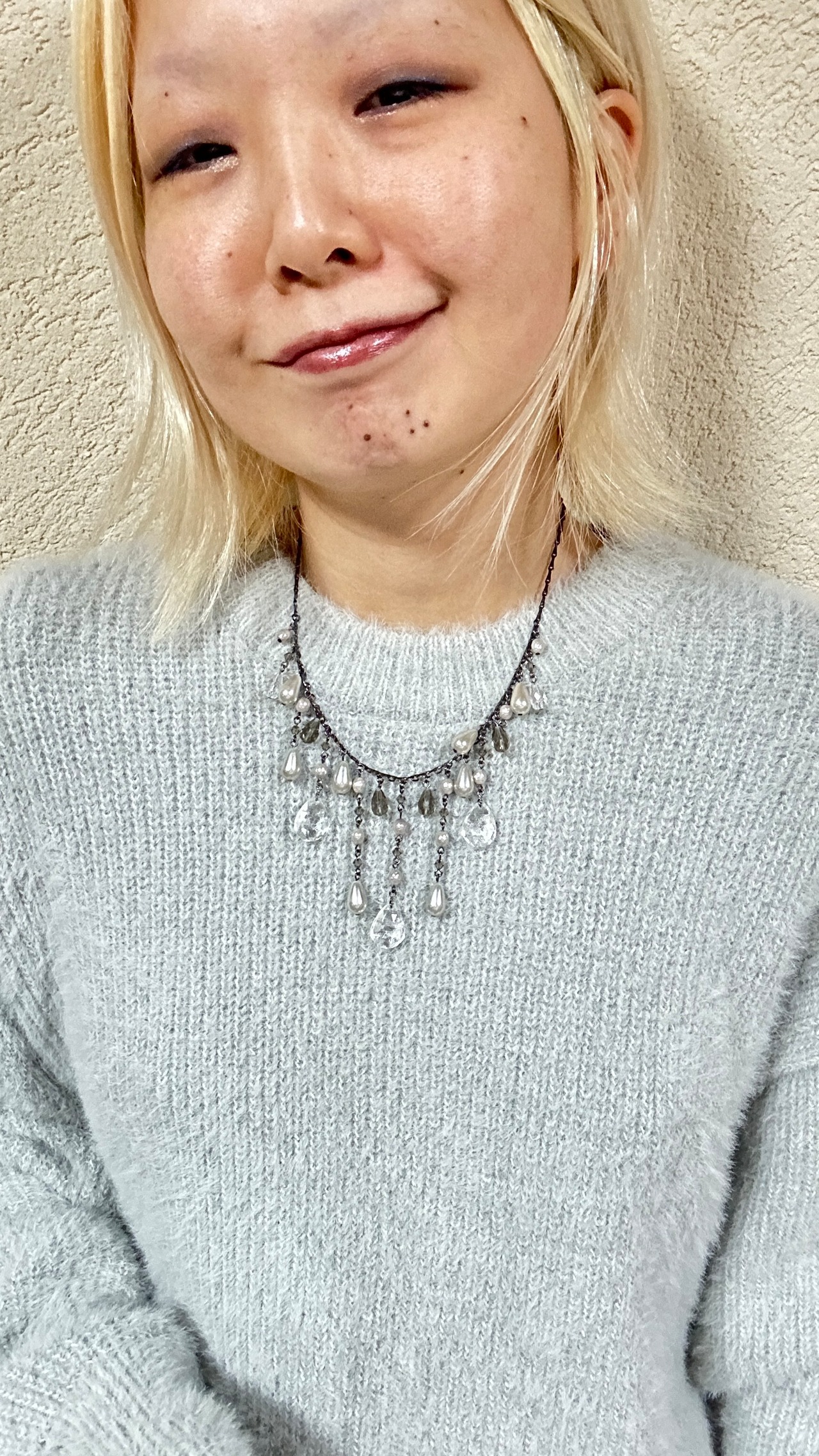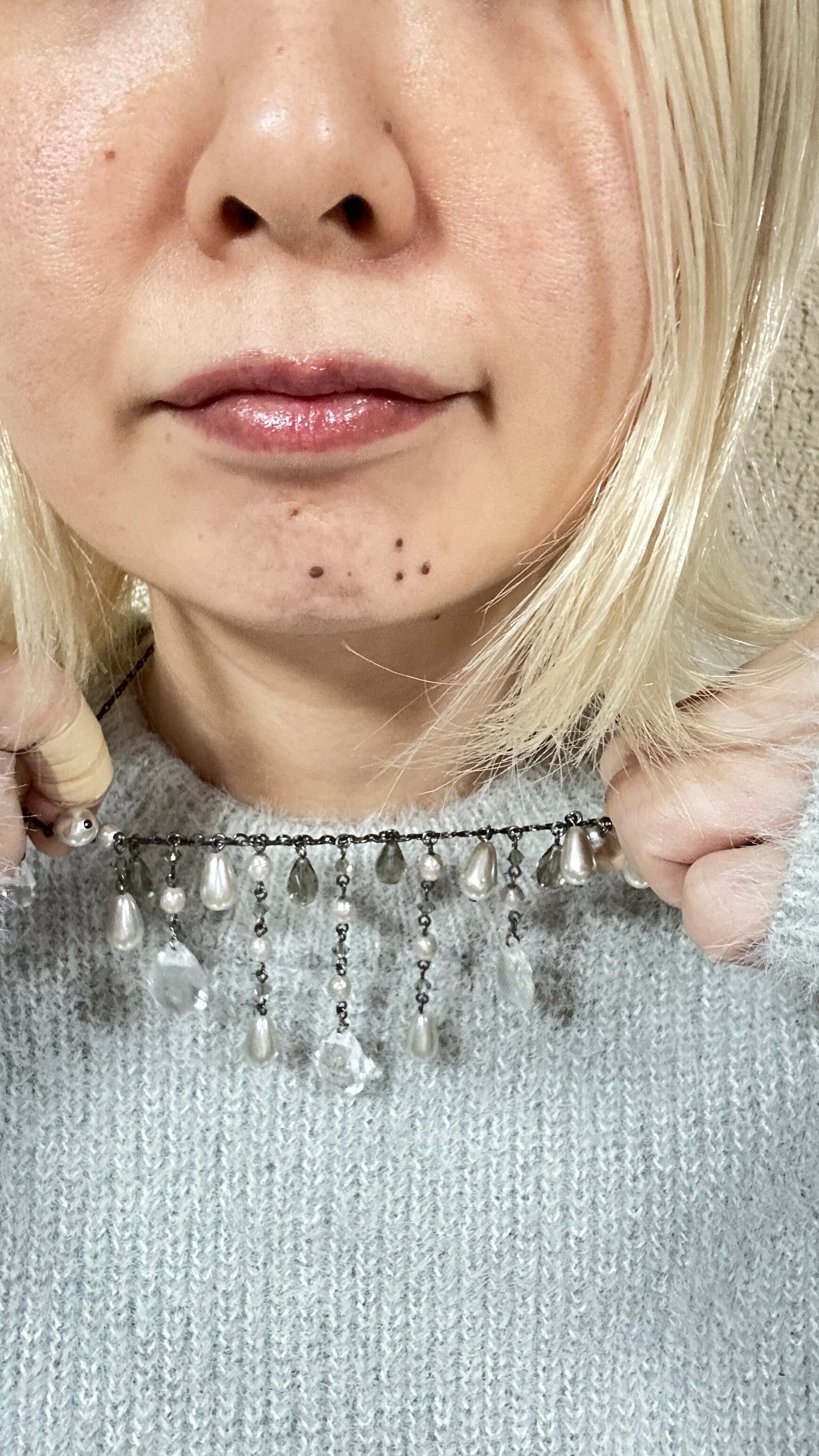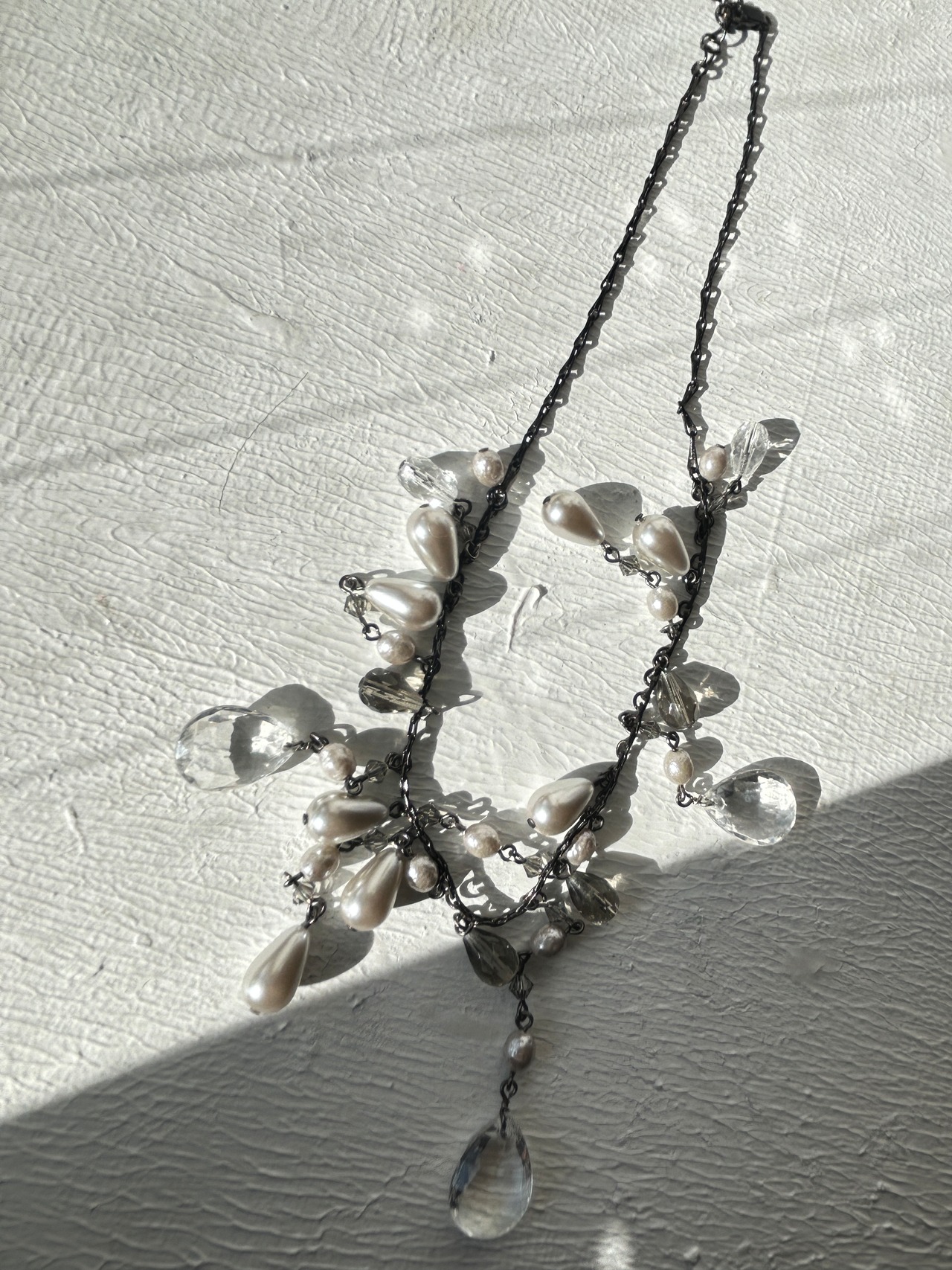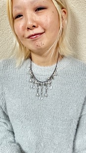 このキラキラのビーズの透明感と、ヤレて古くなったチェーンが非常に良い味を醸し出しています。