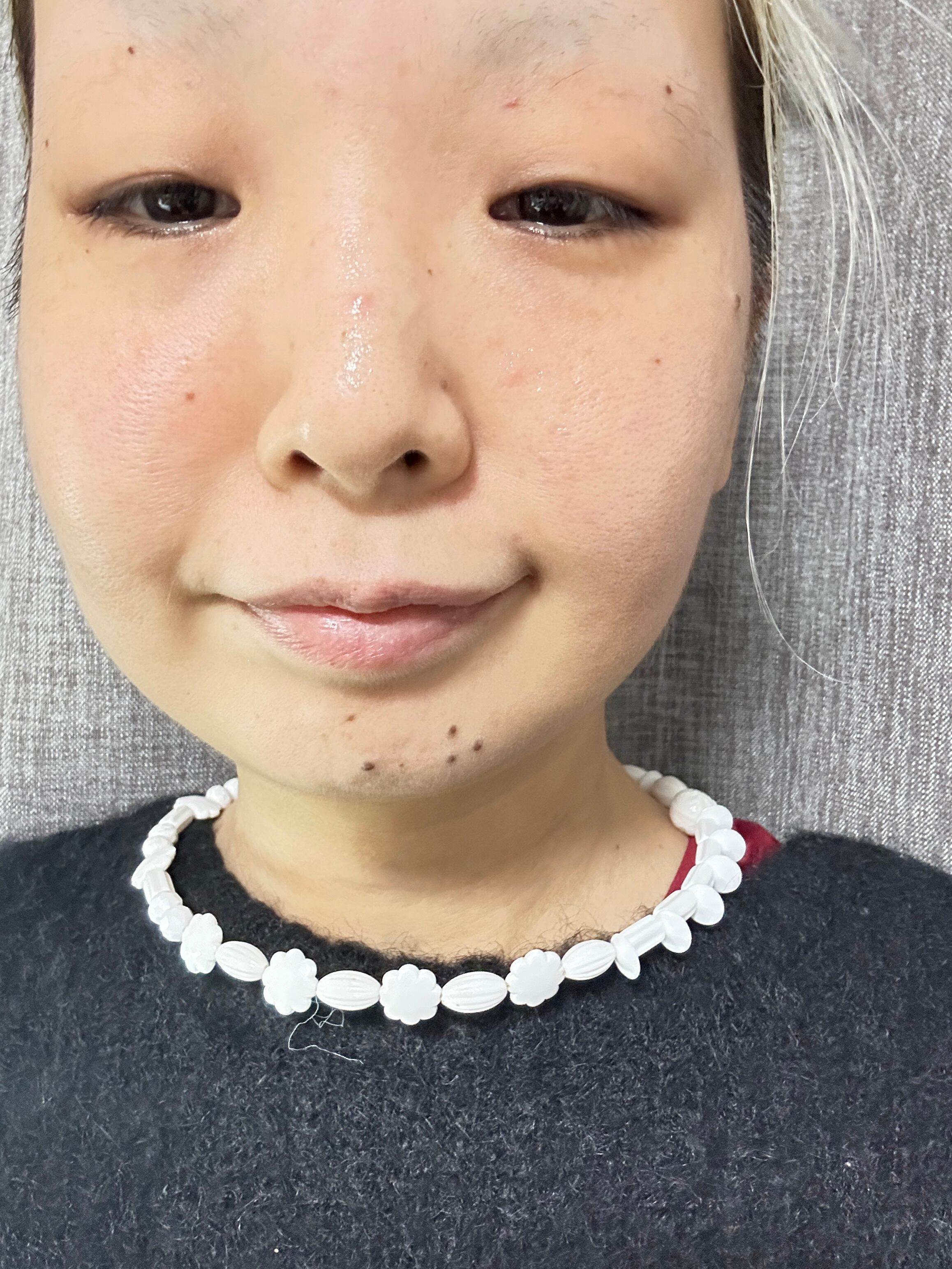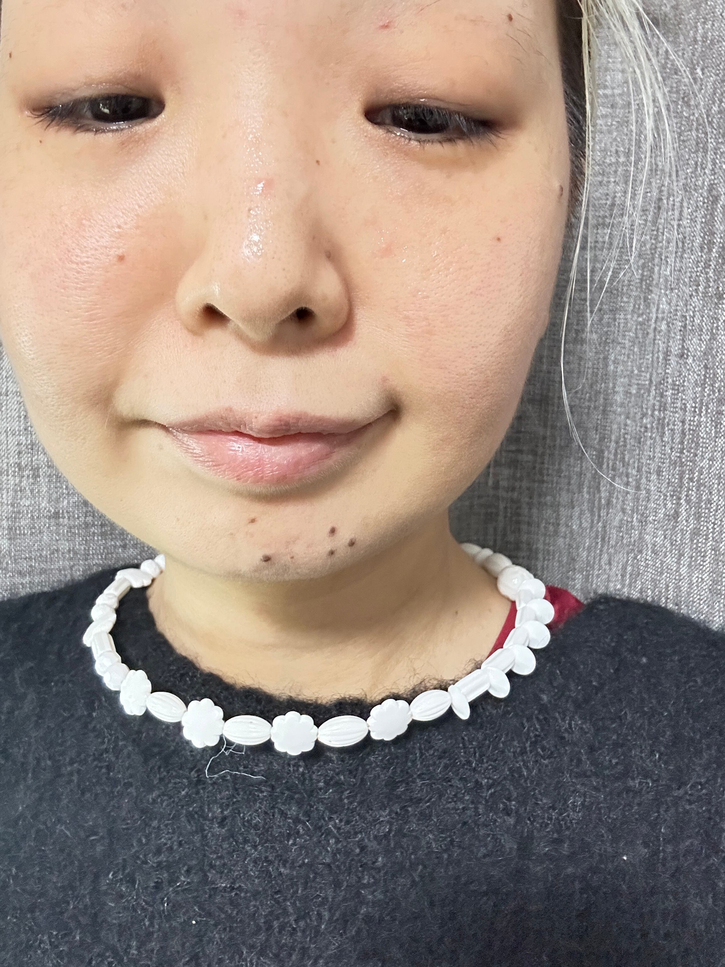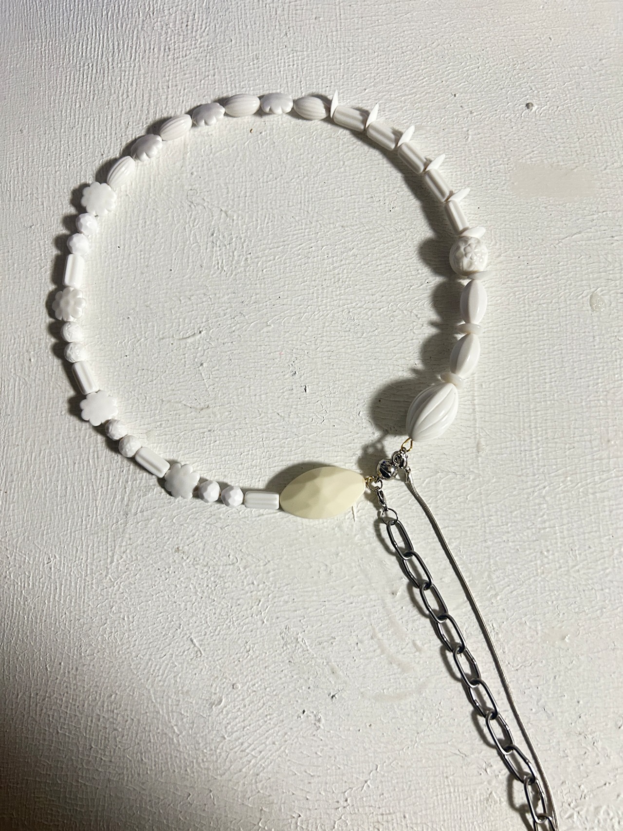 あとは後ろにチェーンを回すと普通のビーズのネックレスを着けているようですが、