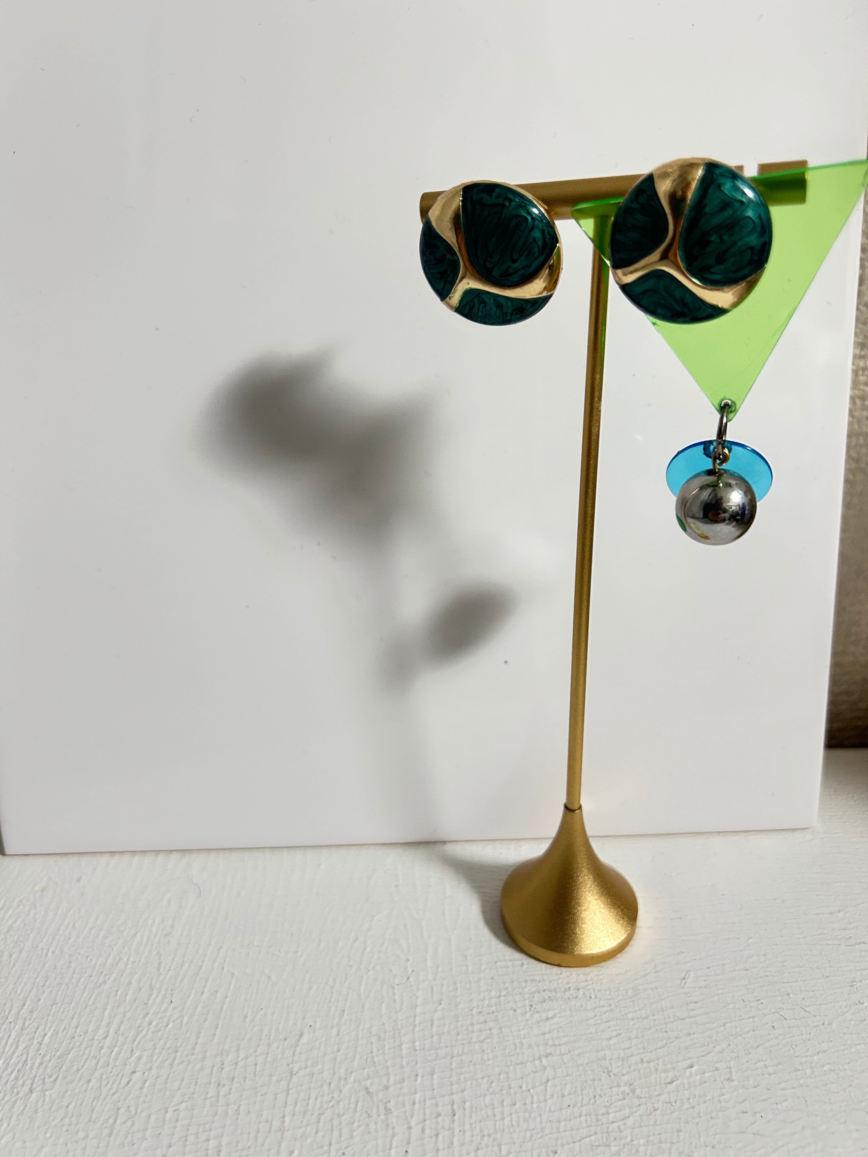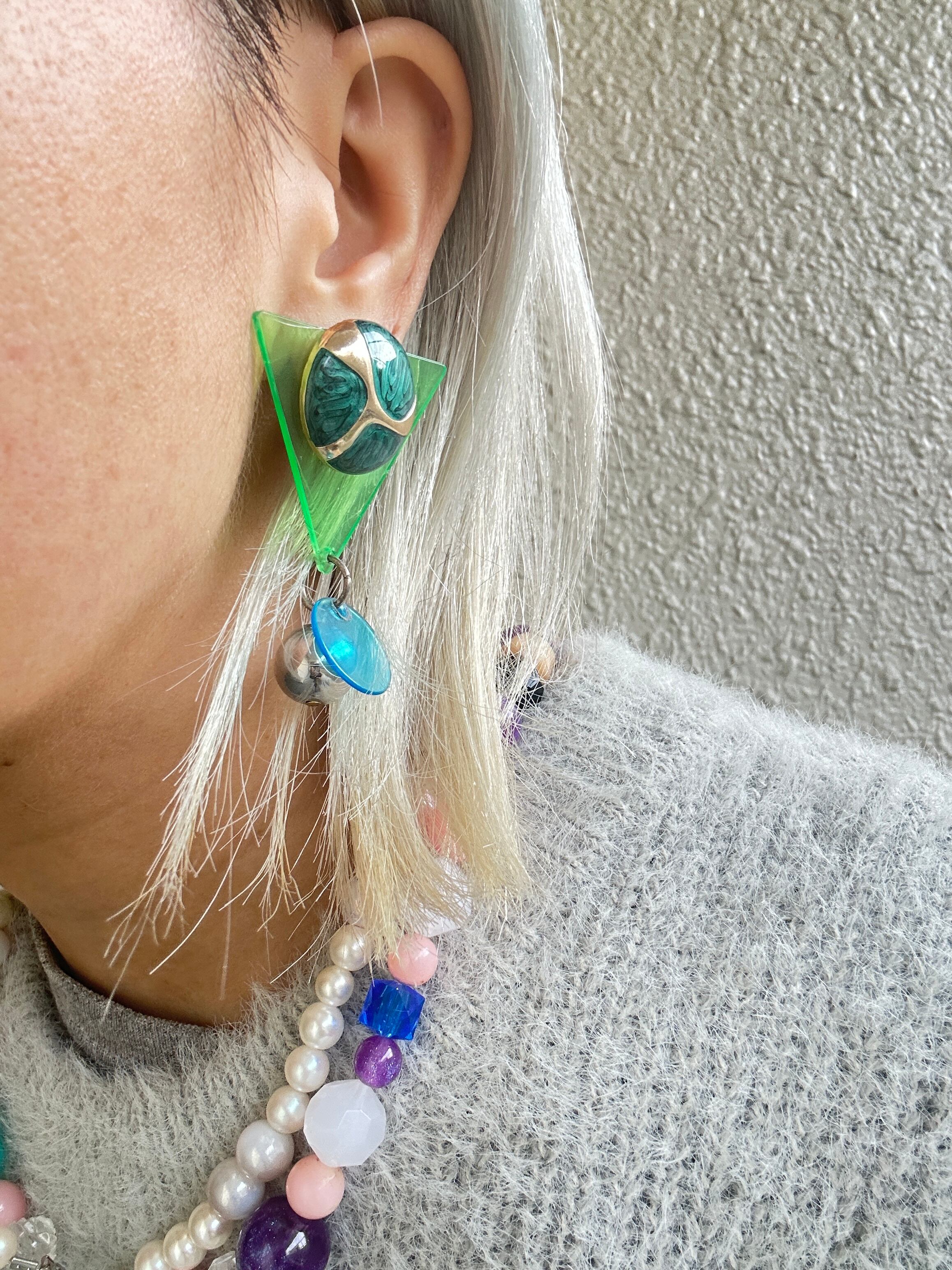 【一点限定】ヴィンテージボタンとアクリル板のアシンメトリーピアス