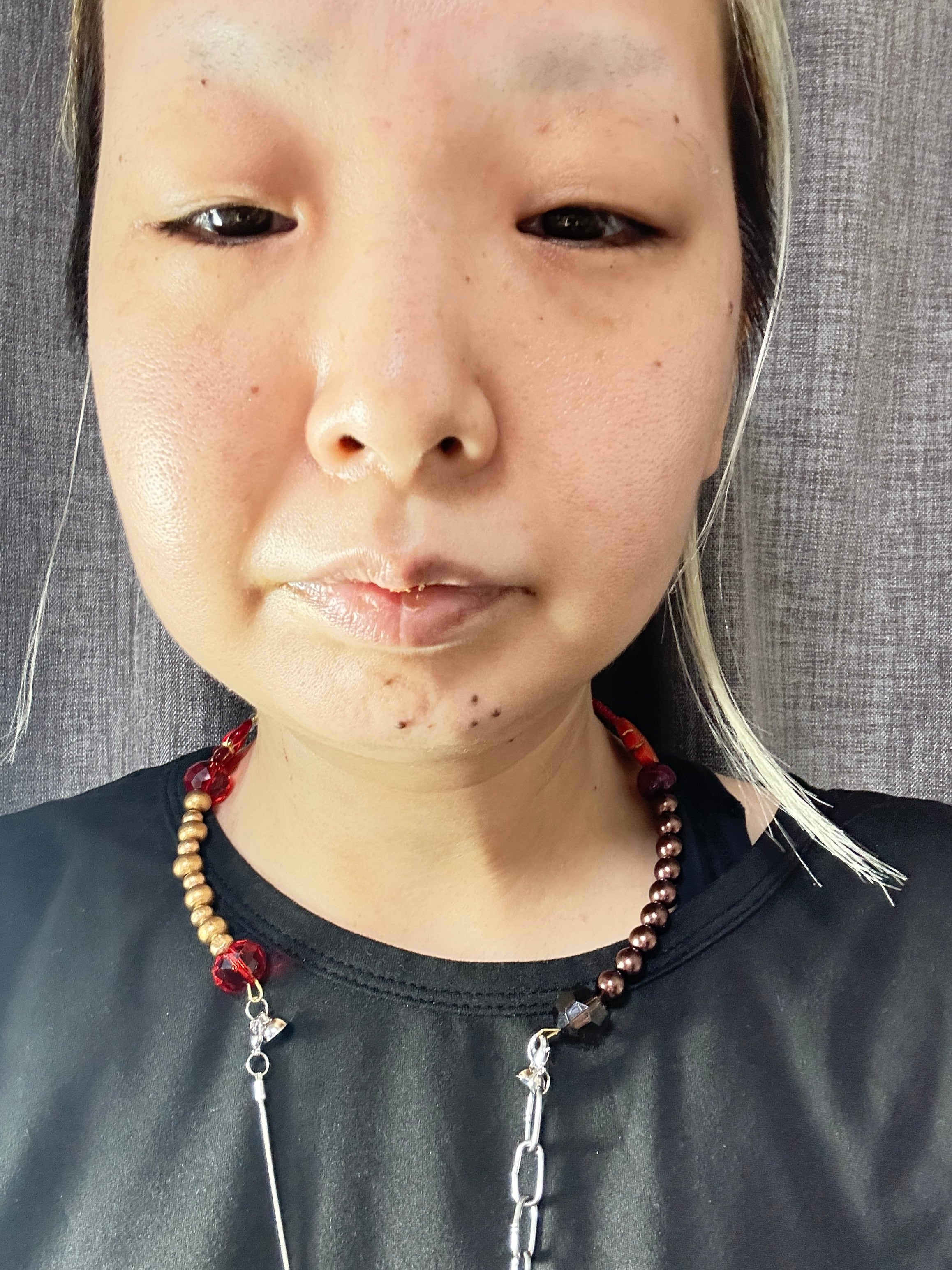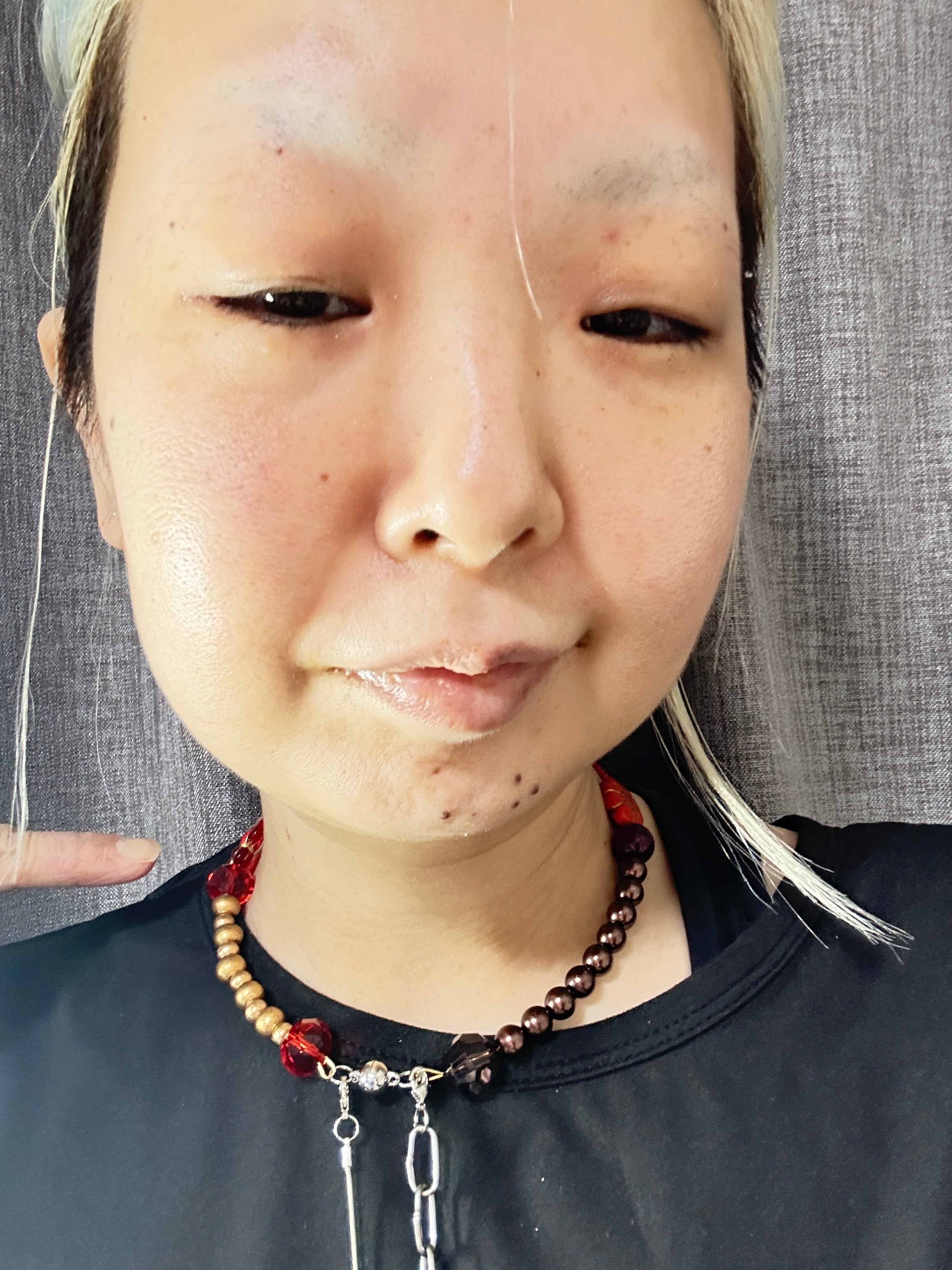 あとは後ろにチェーンを回すと普通のビーズのネックレスを着けているようですが、