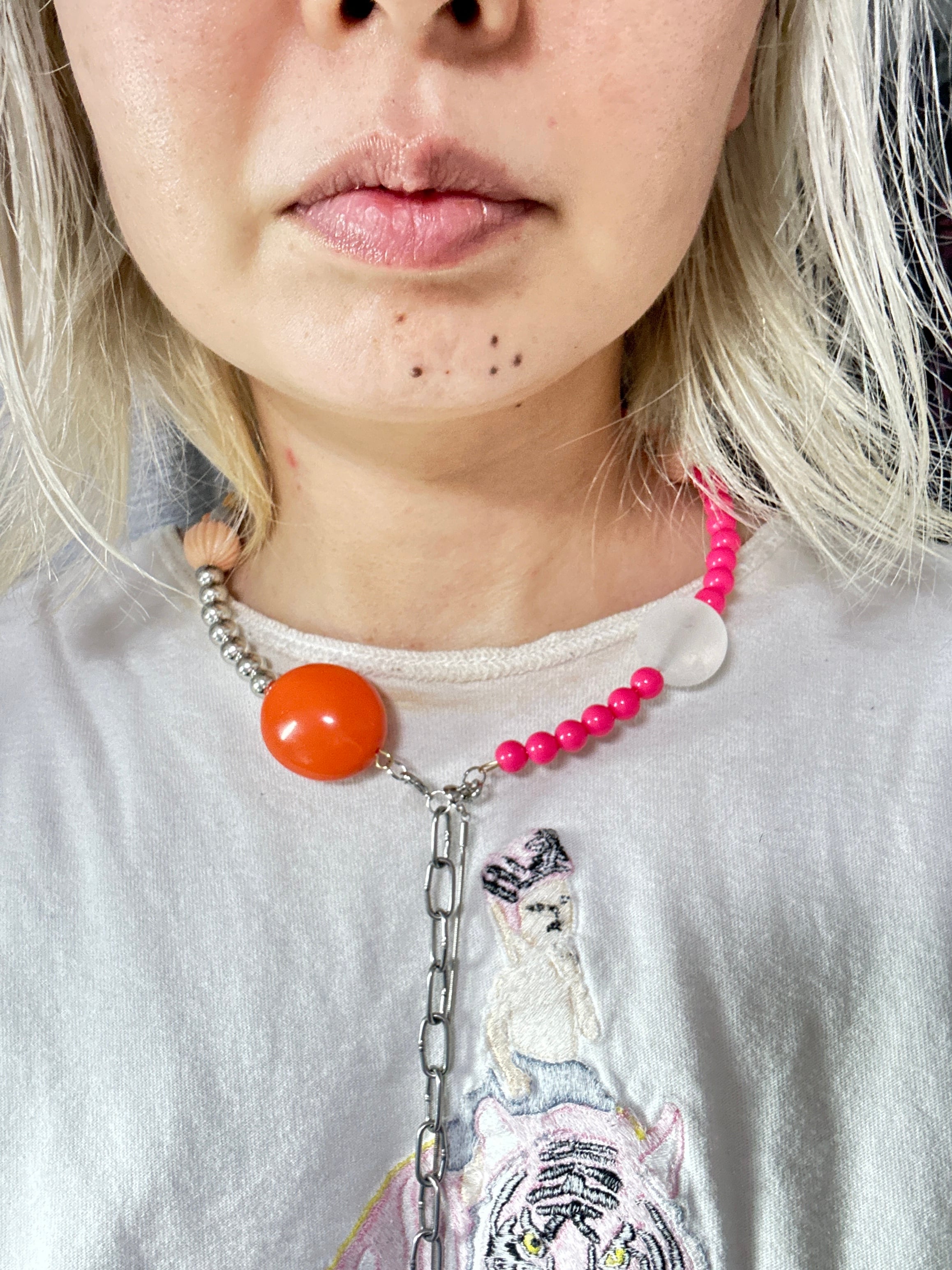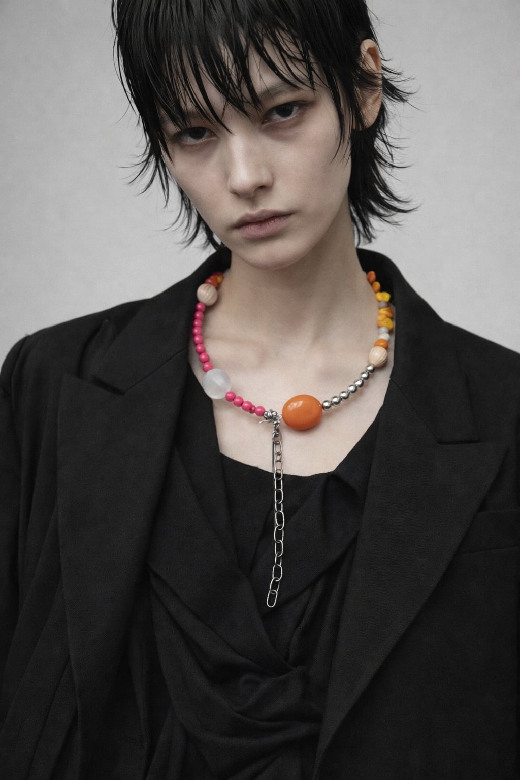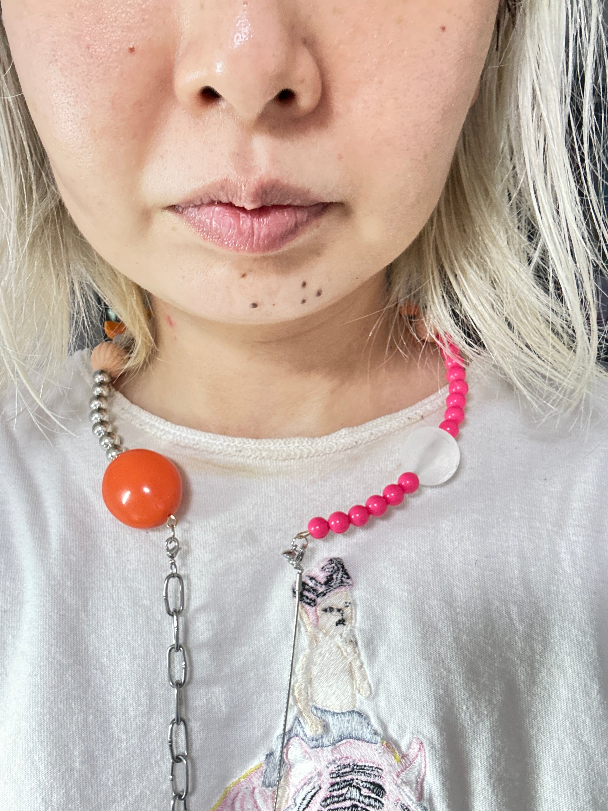 あとは後ろにチェーンを回すと普通のビーズのネックレスを着けているようですが、