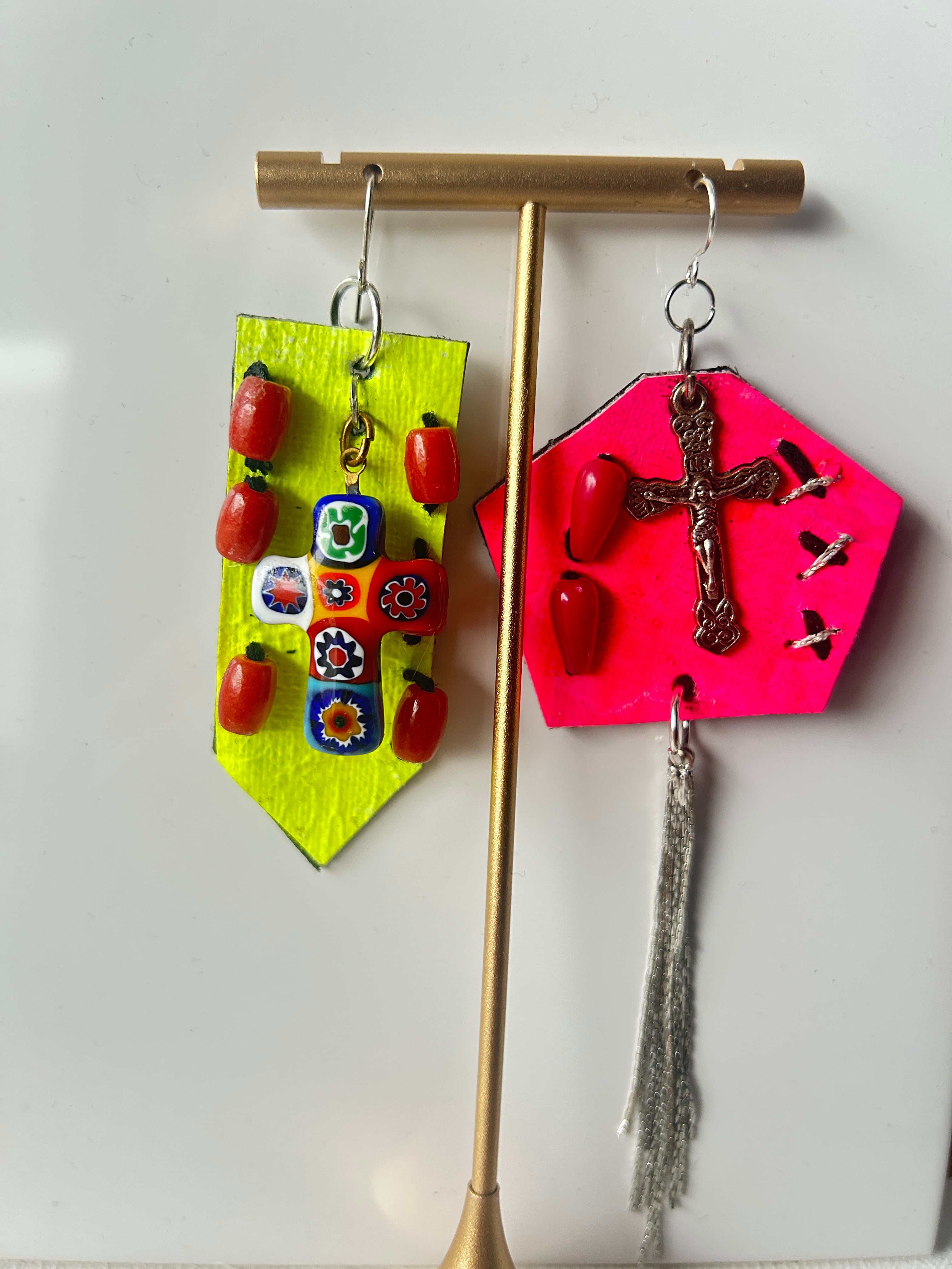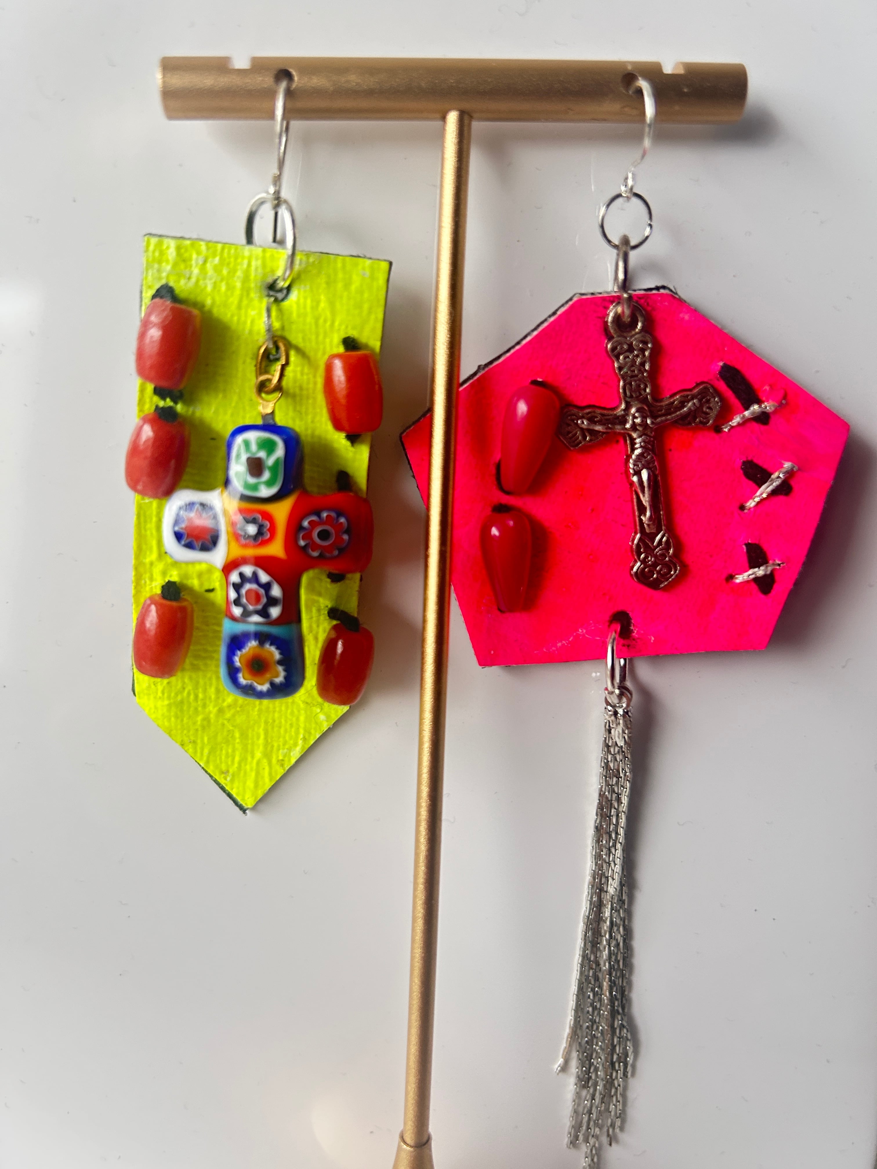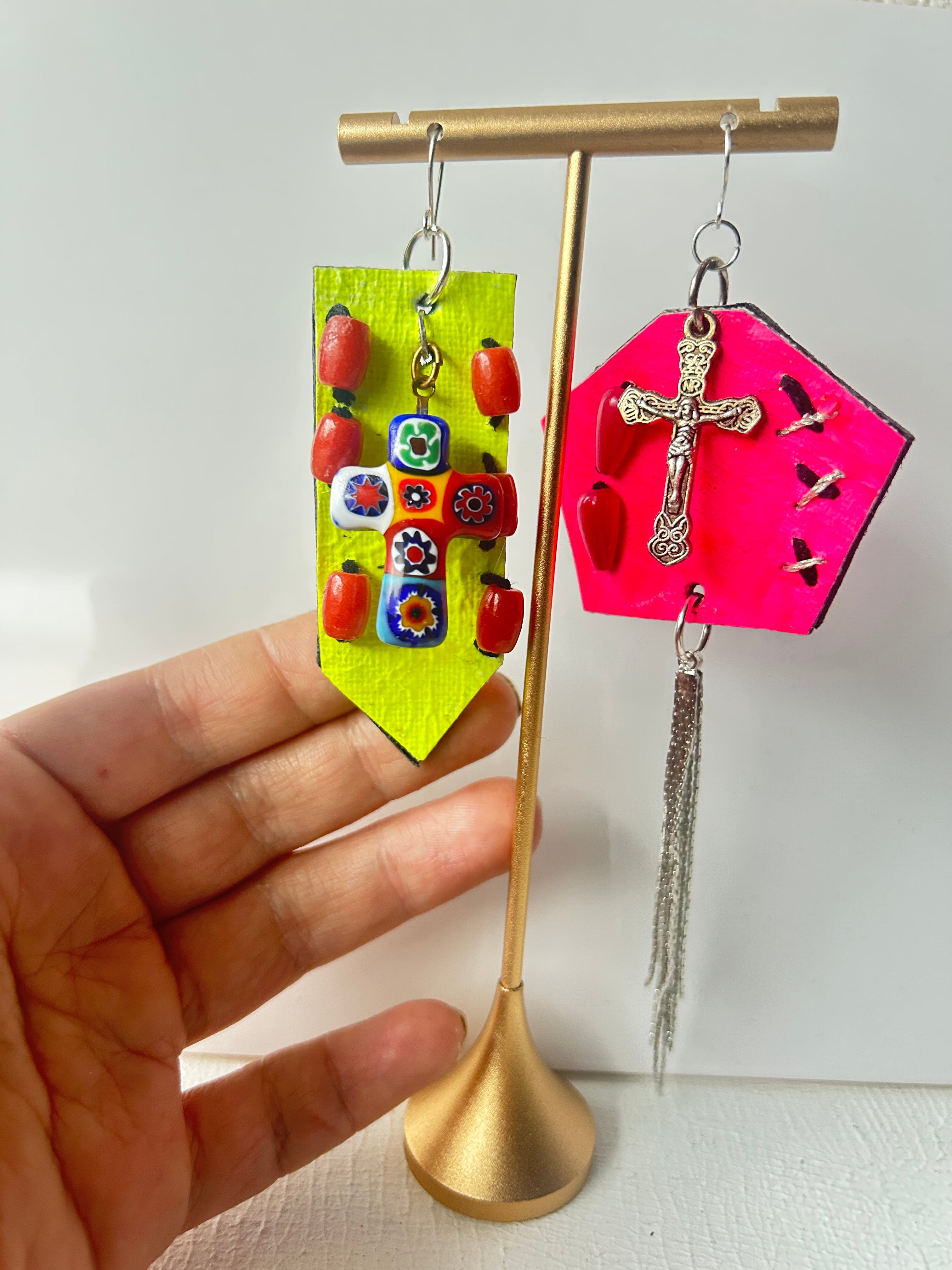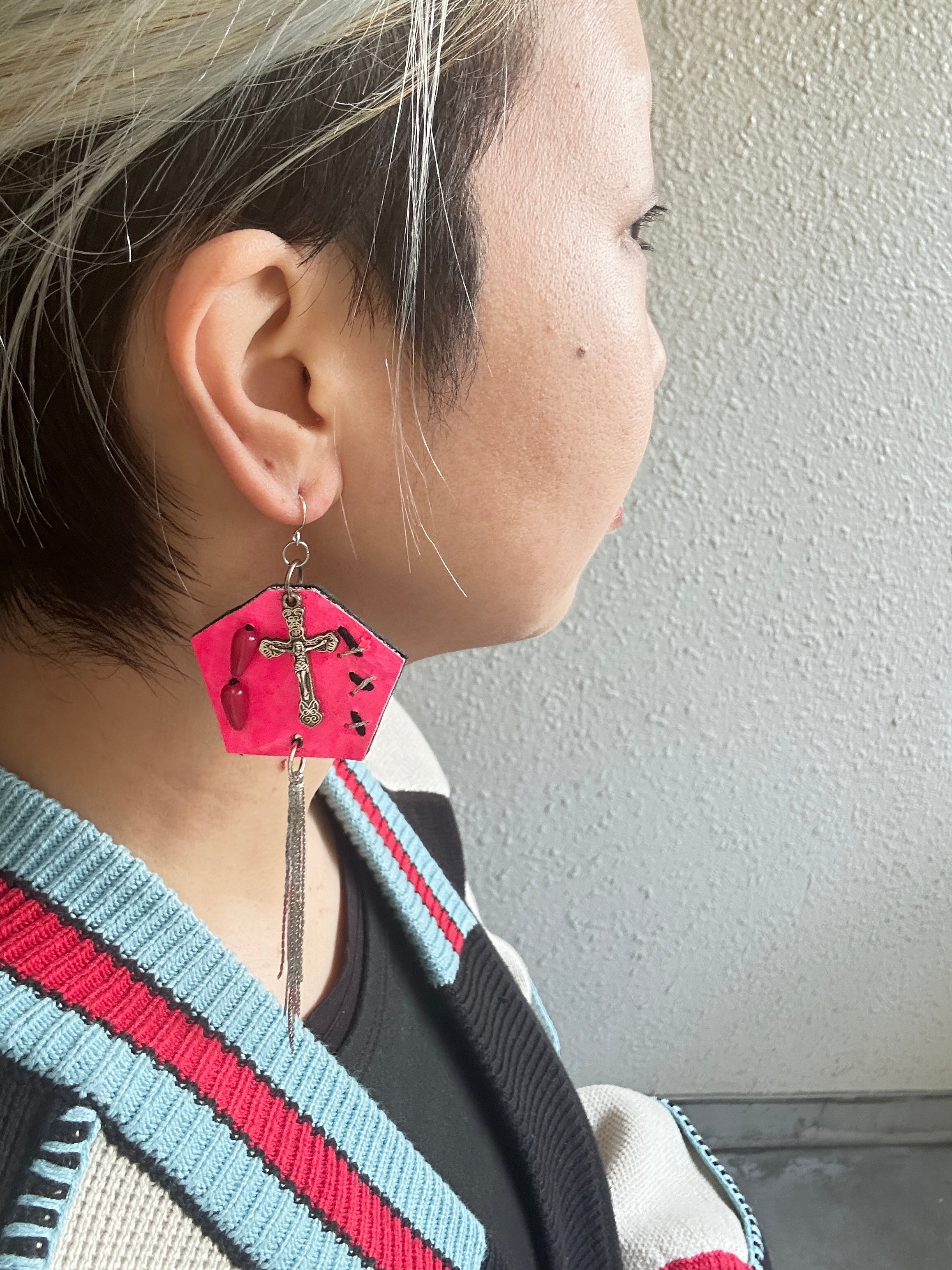 今回使っているビーズも全てヴィンテージですが、黄色の方のピアスに着いているクロスは実はメキシコのヴィンテージのクロスとなります。