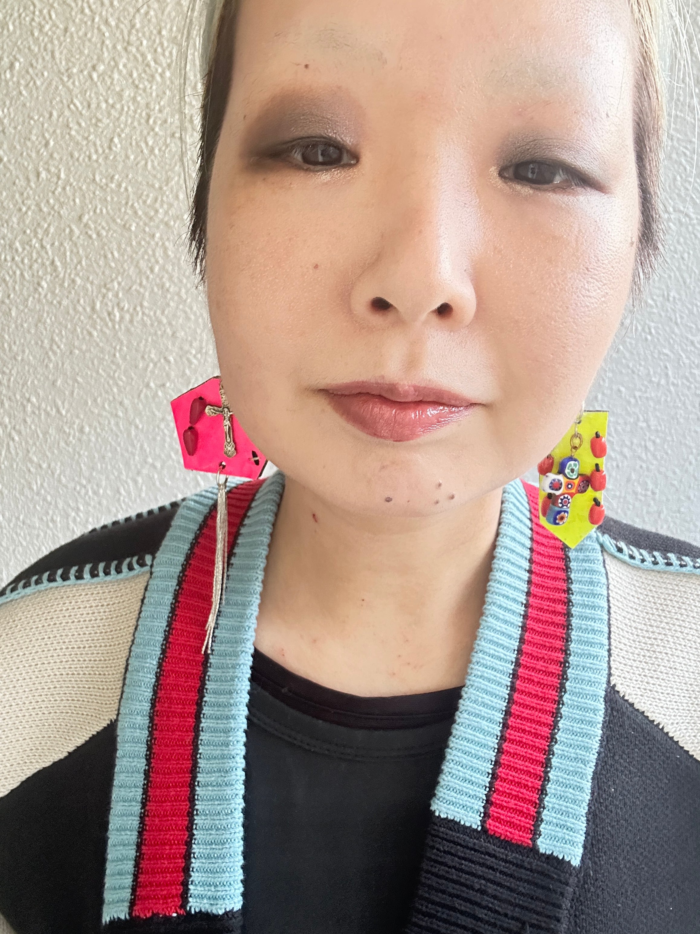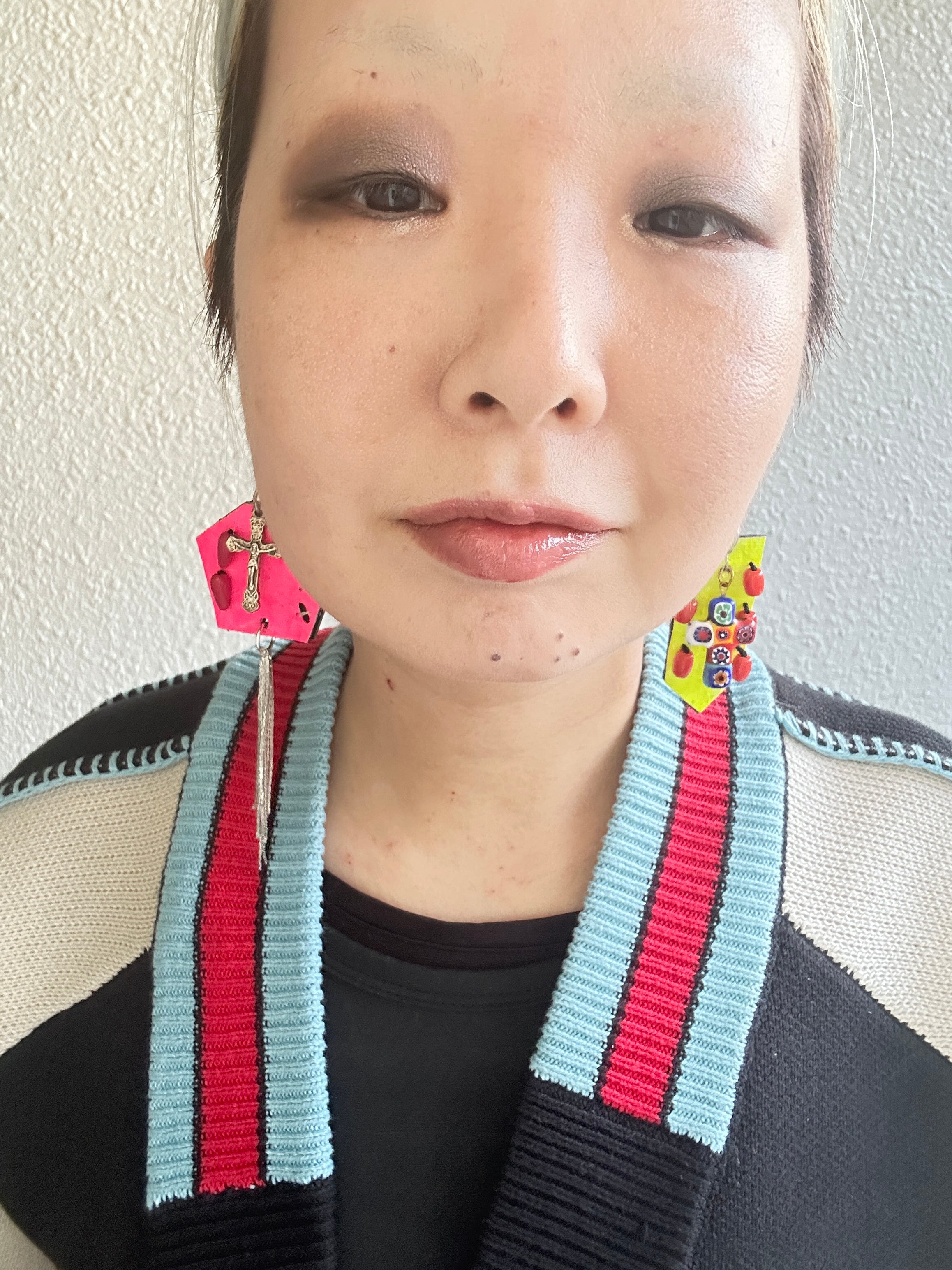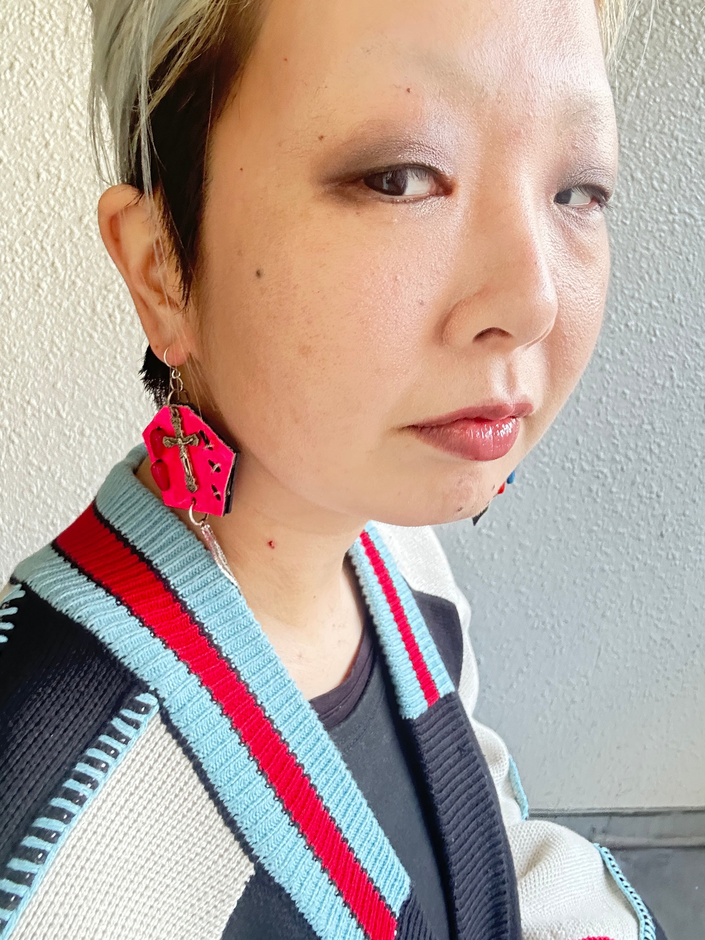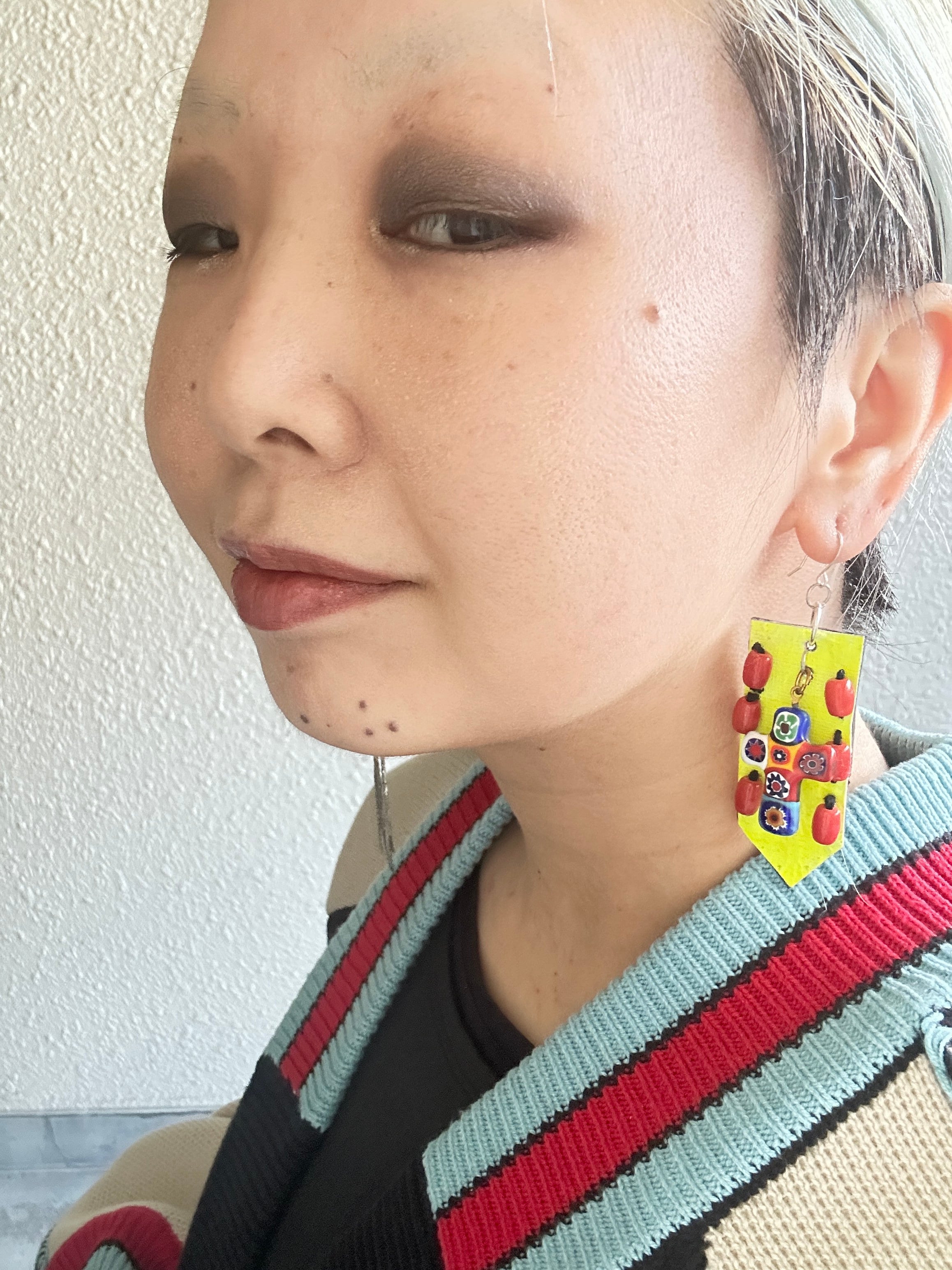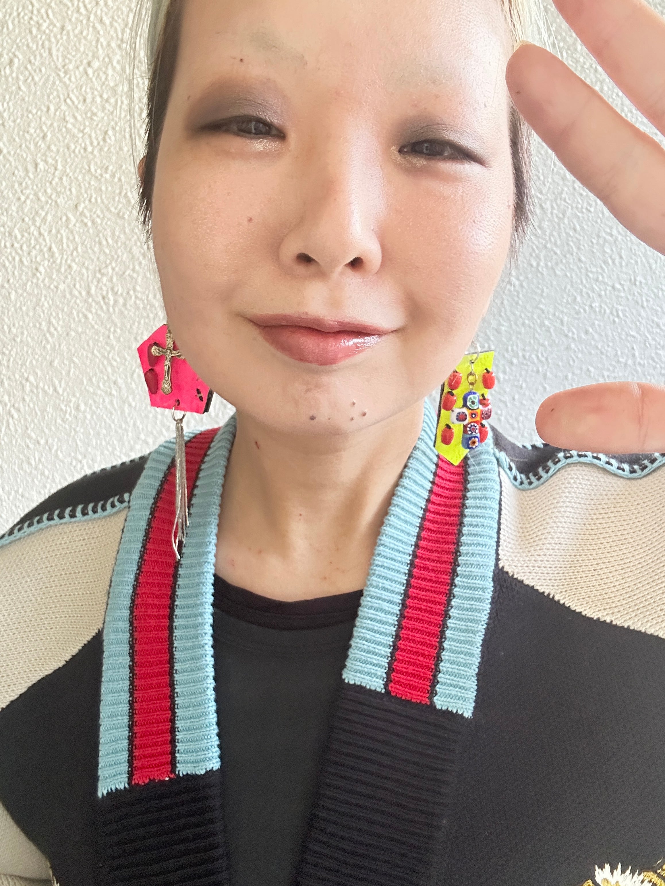 本当はチェーンを着けてネックレスで出そうと思っていたのですが、こっちの方が面白いなあ。と。ピアスにしました。