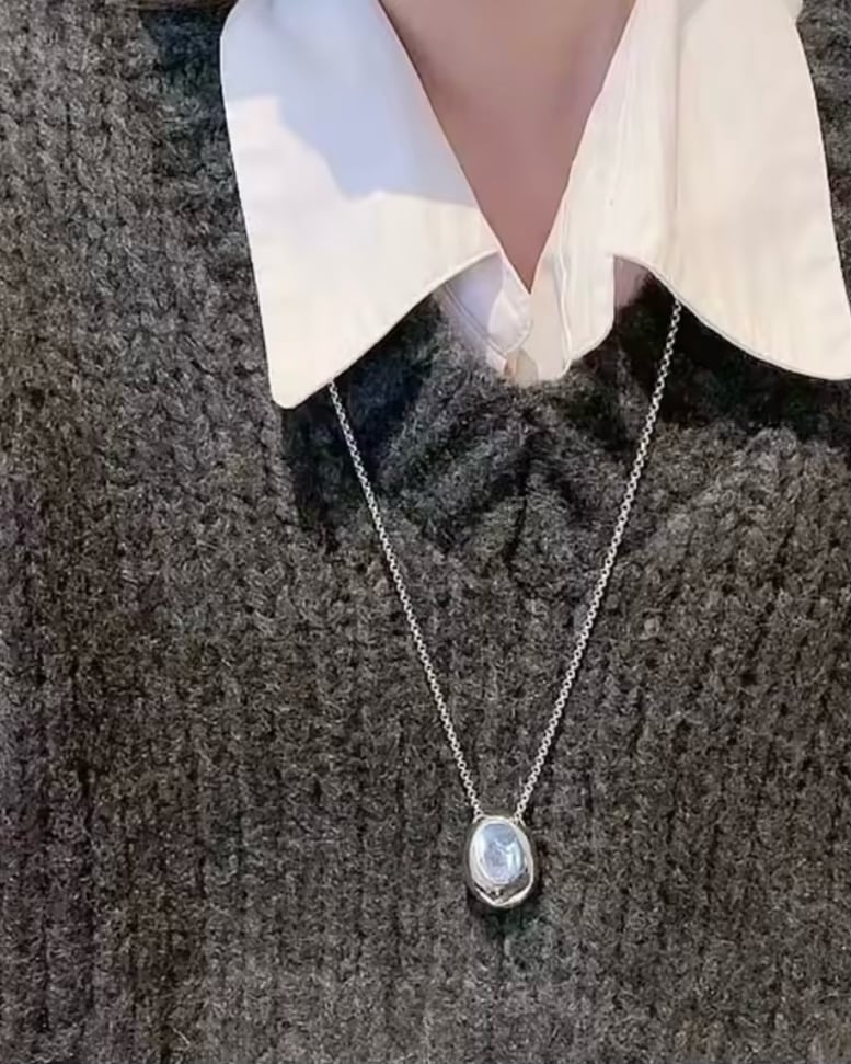 ※お届けまで2週間ほどかかります。【シルバー&ゴールド】ロングネックレス タマゴ