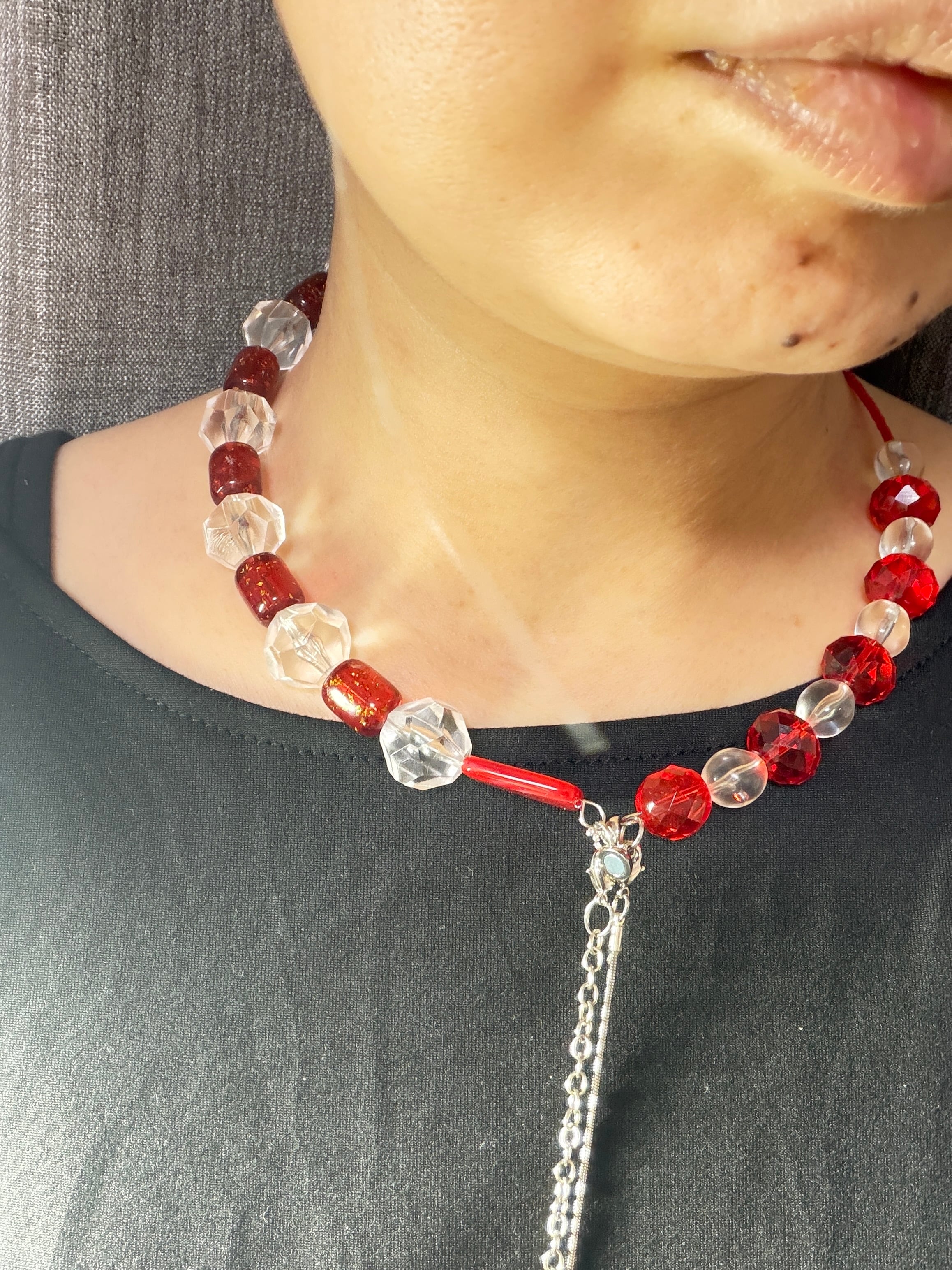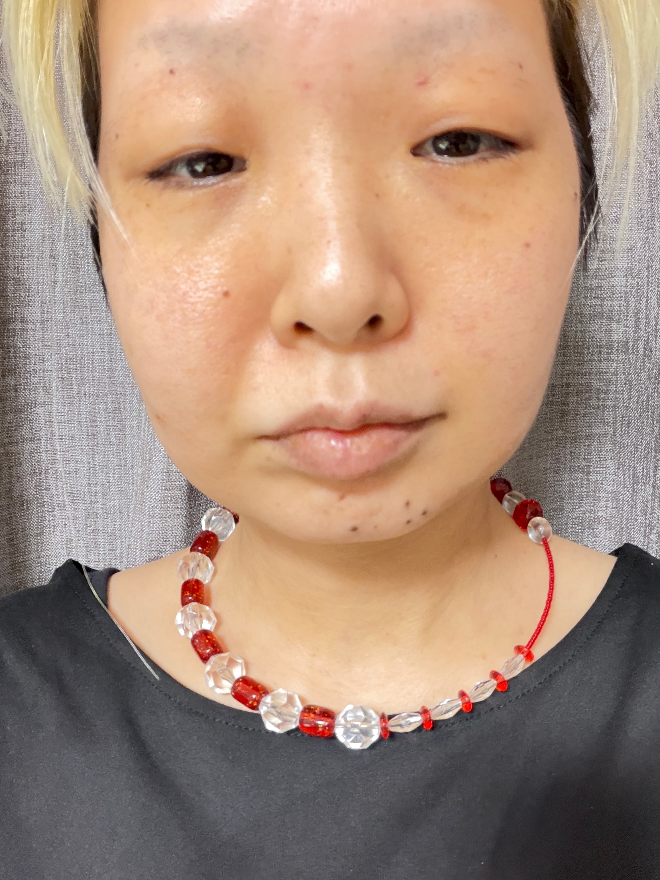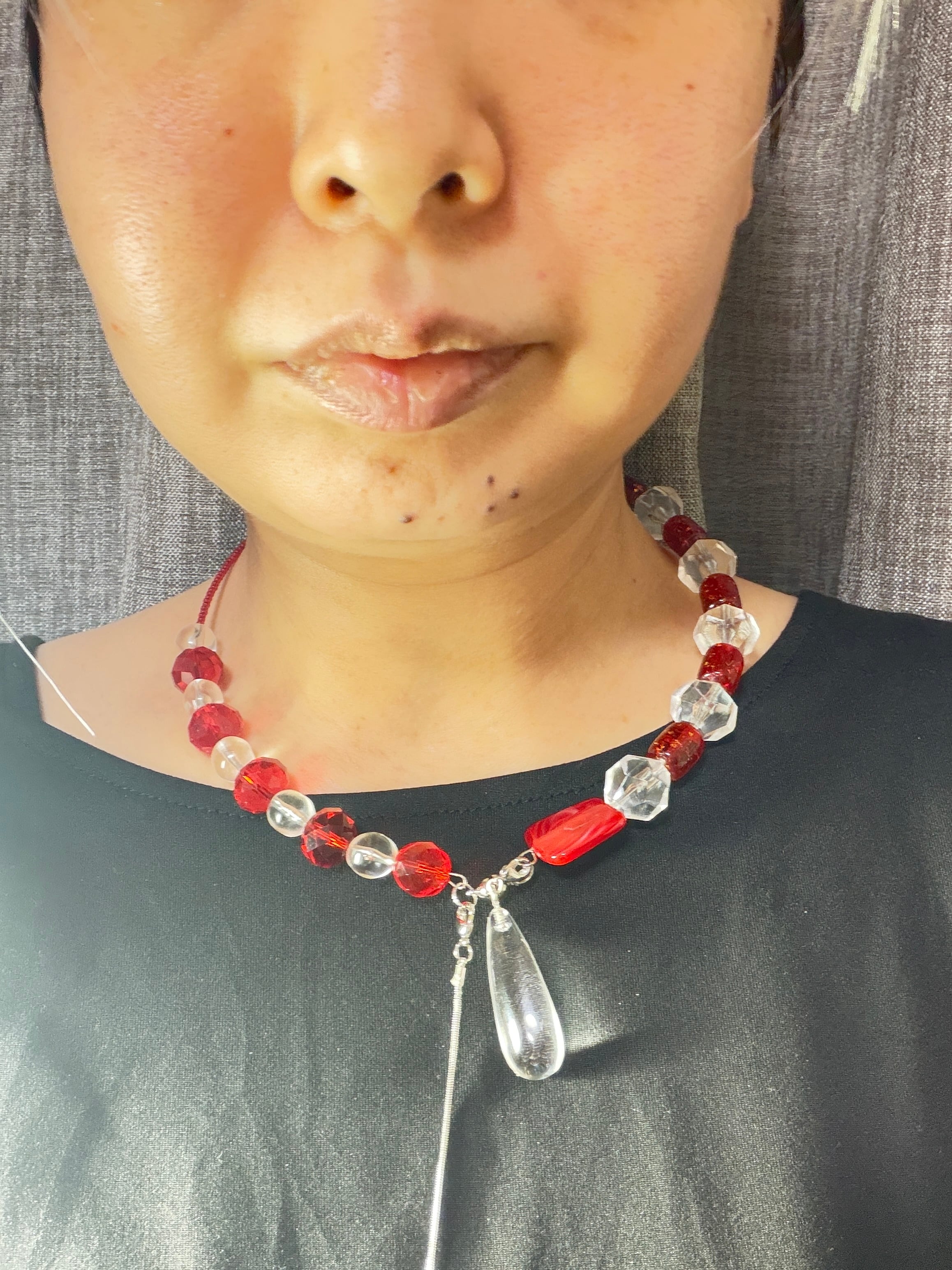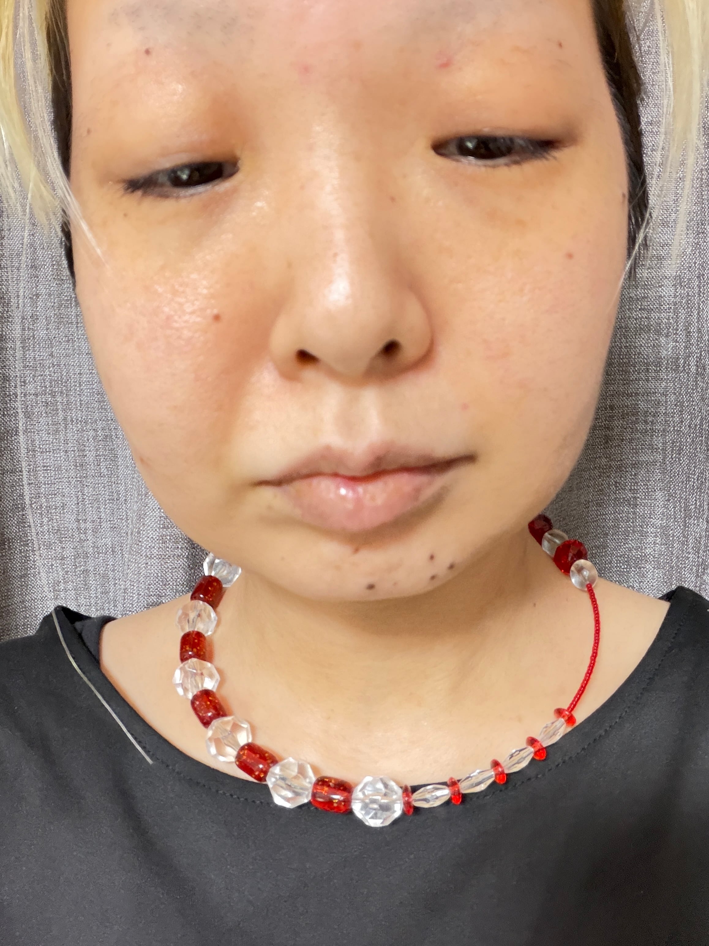 あとは後ろにチェーンを回すと普通のビーズのネックレスを着けているようですが、