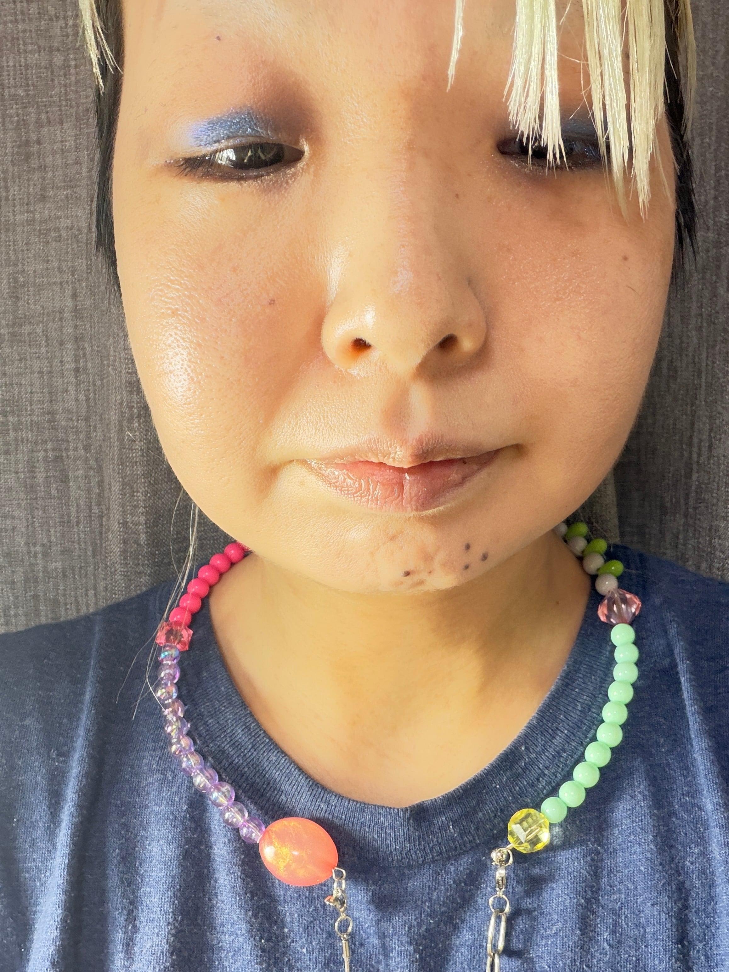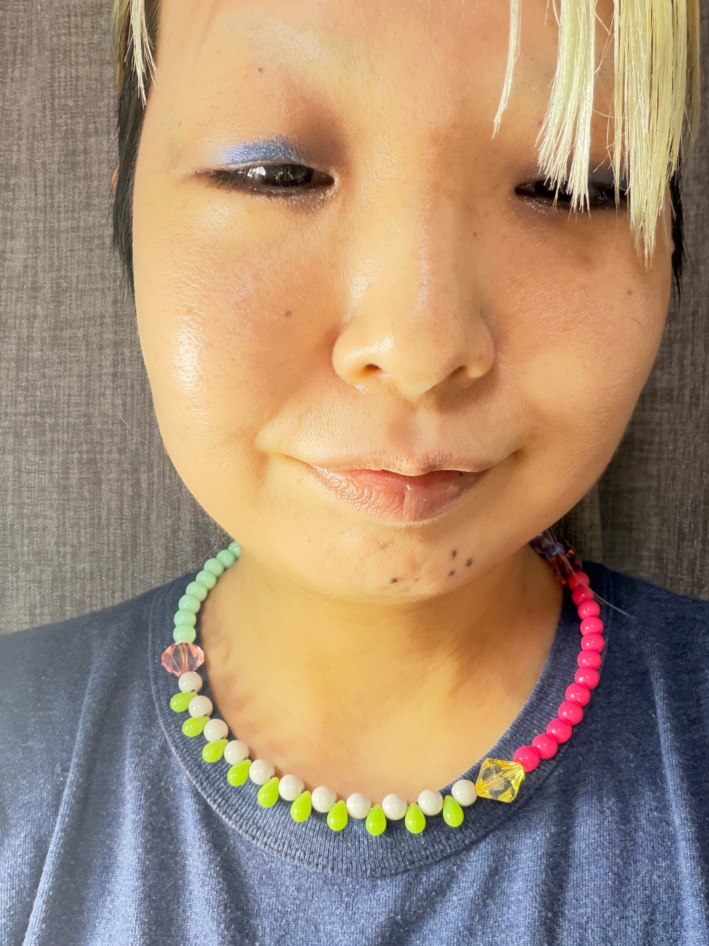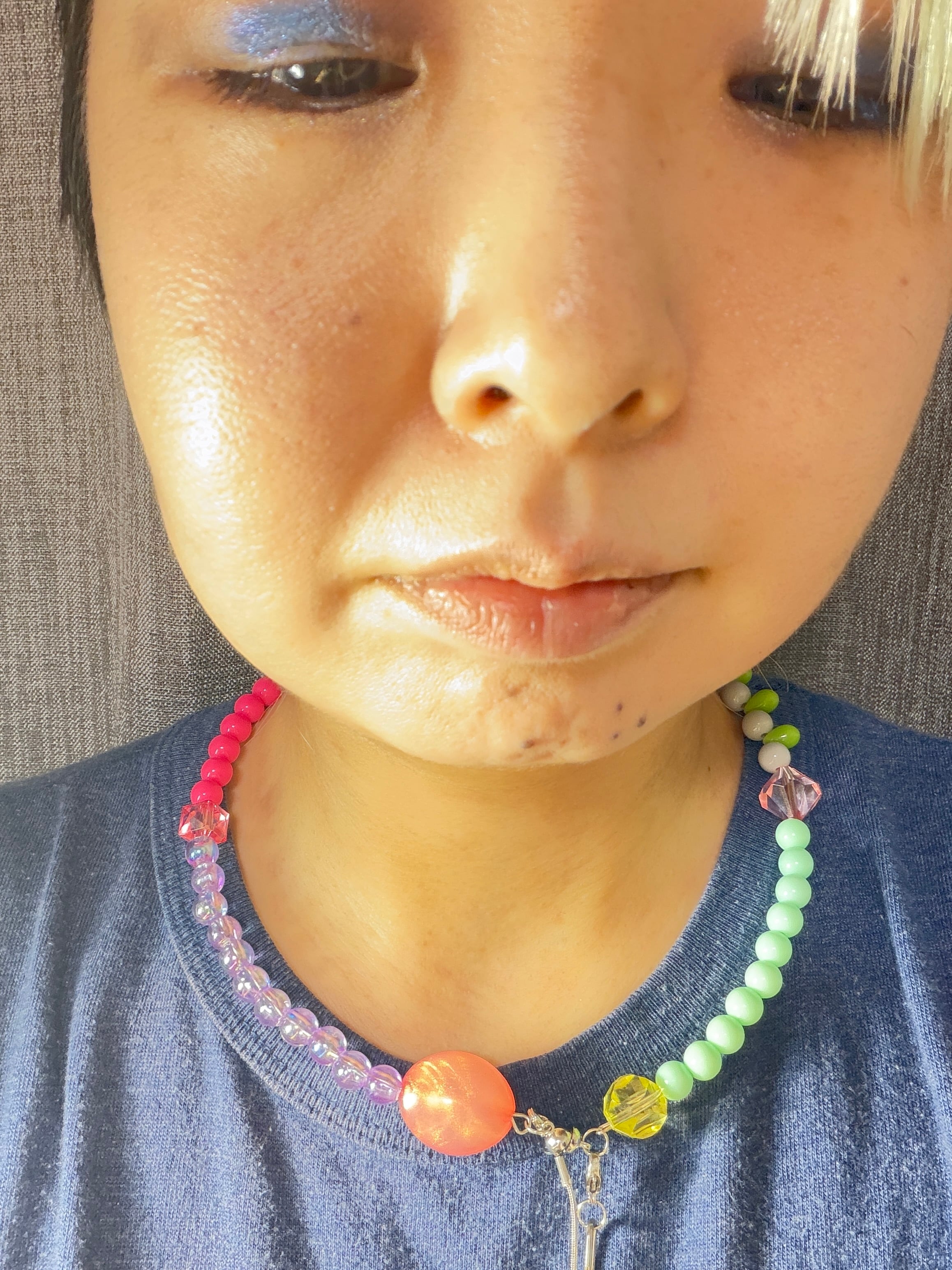あとは後ろにチェーンを回すと普通のビーズのネックレスを着けているようですが、