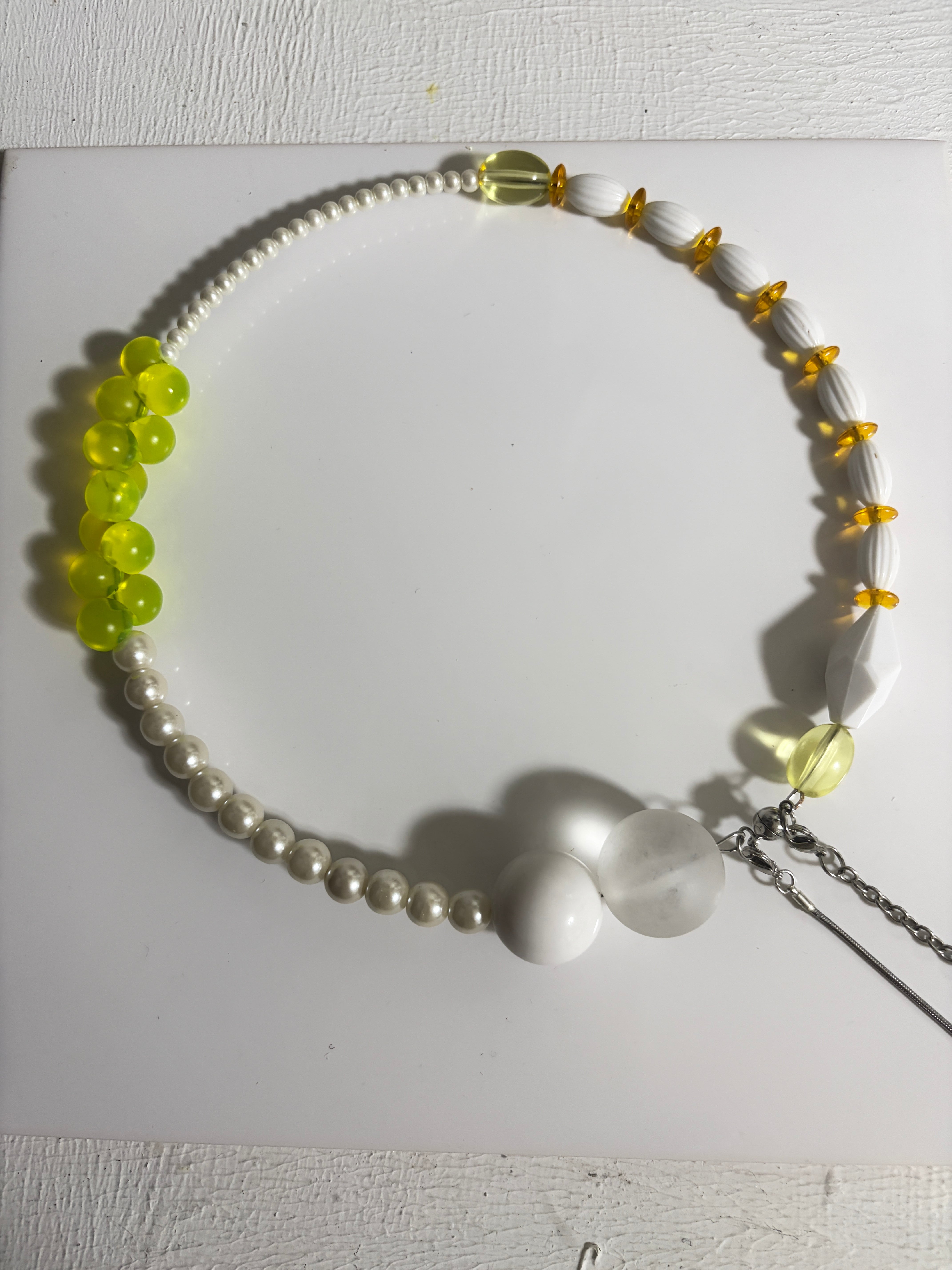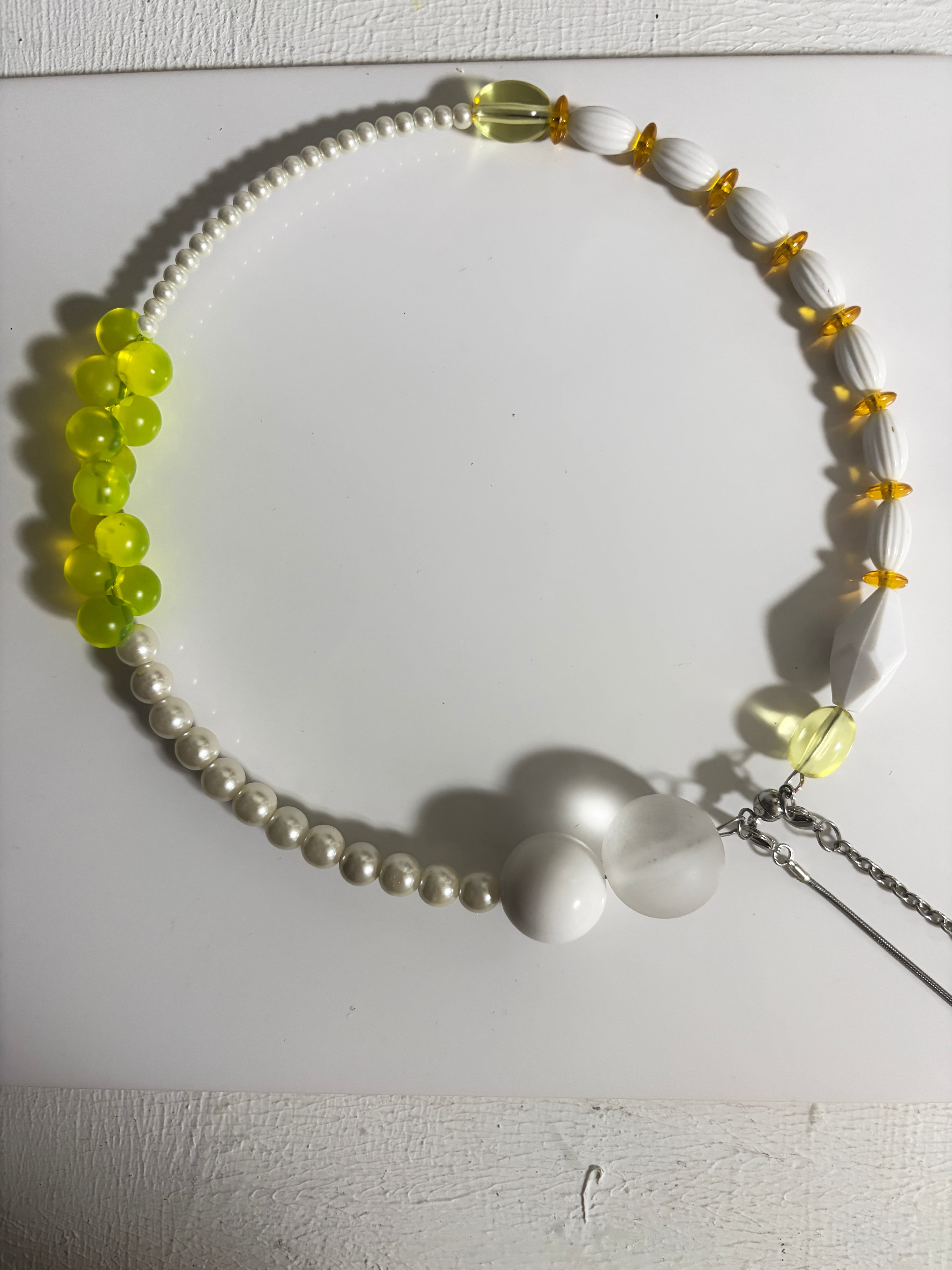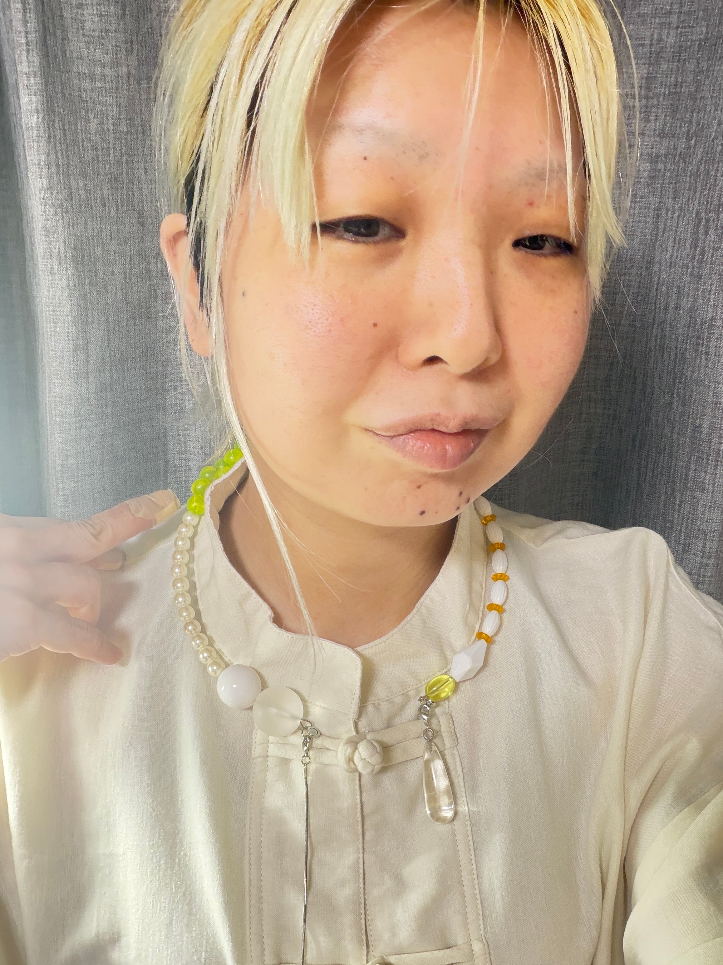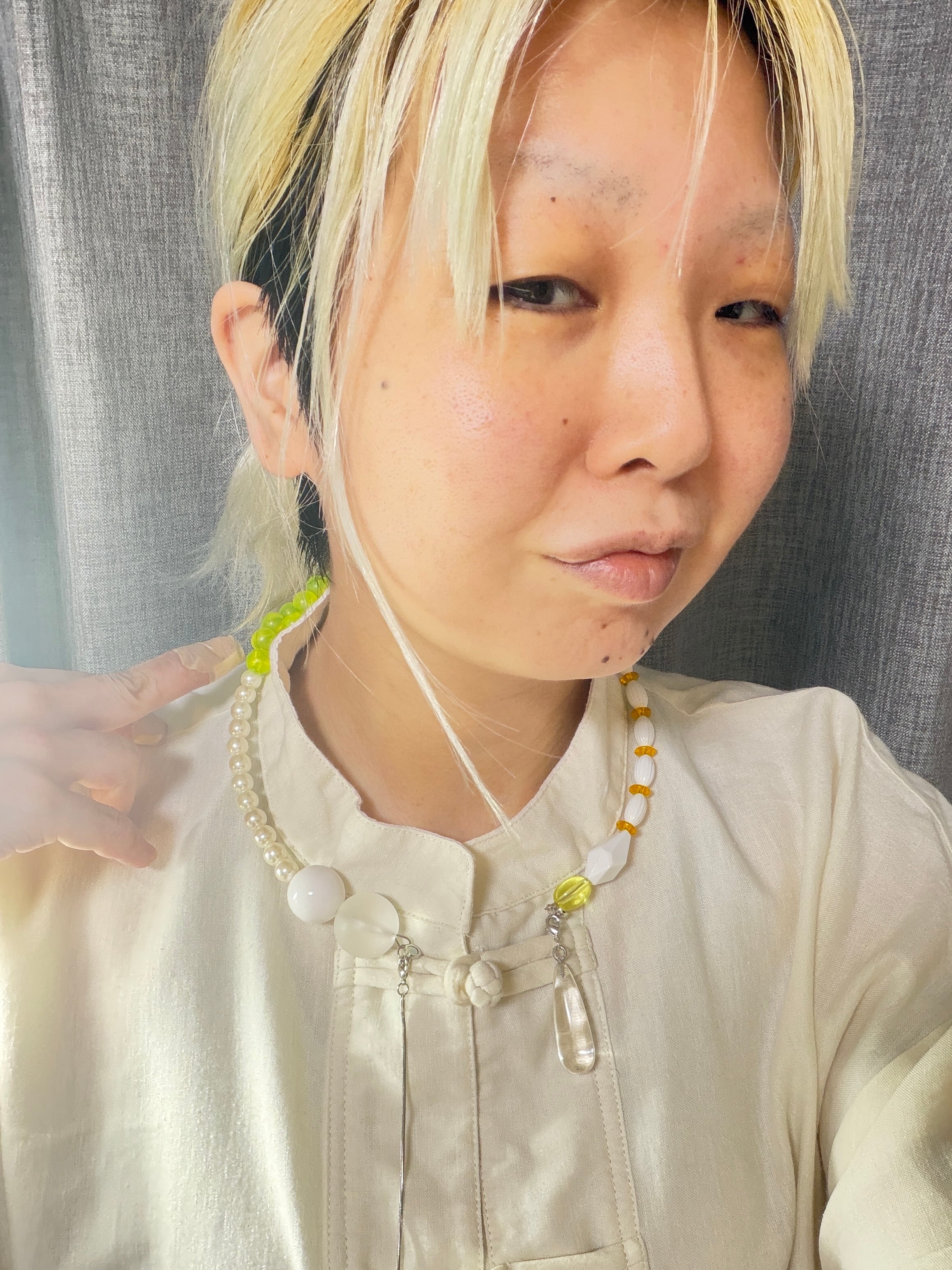 あとは後ろにチェーンを回すと普通のビーズのネックレスを着けているようですが、