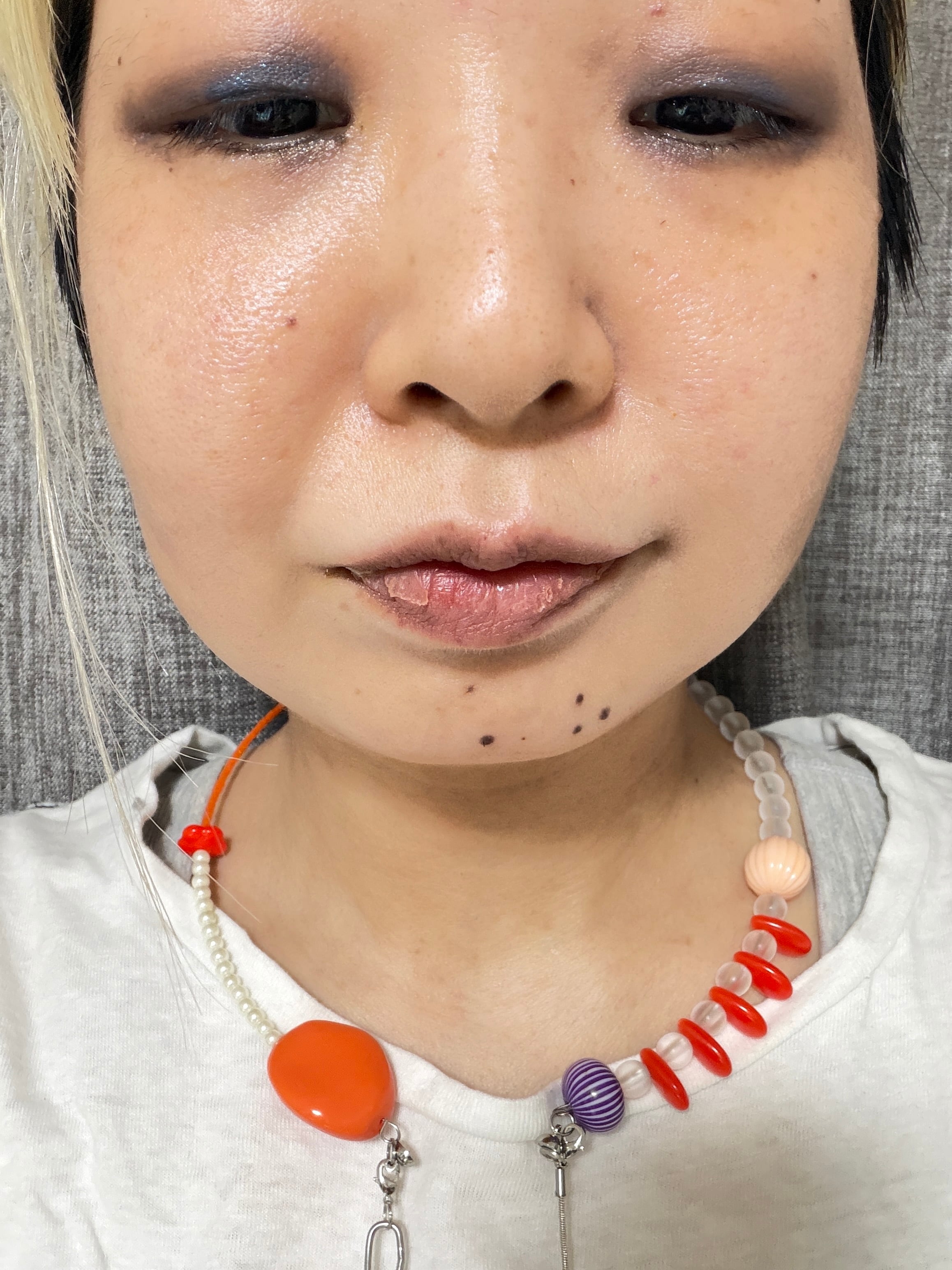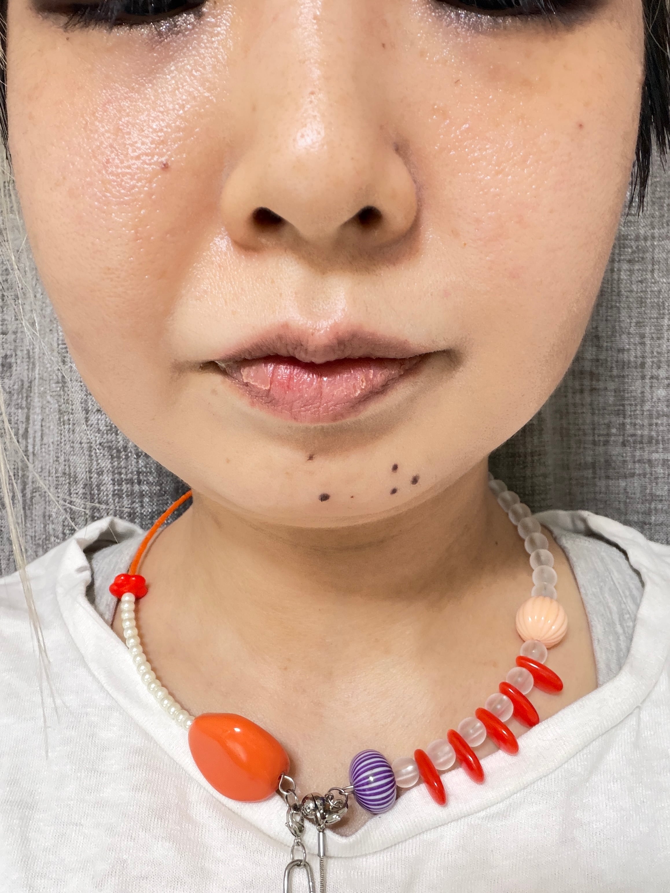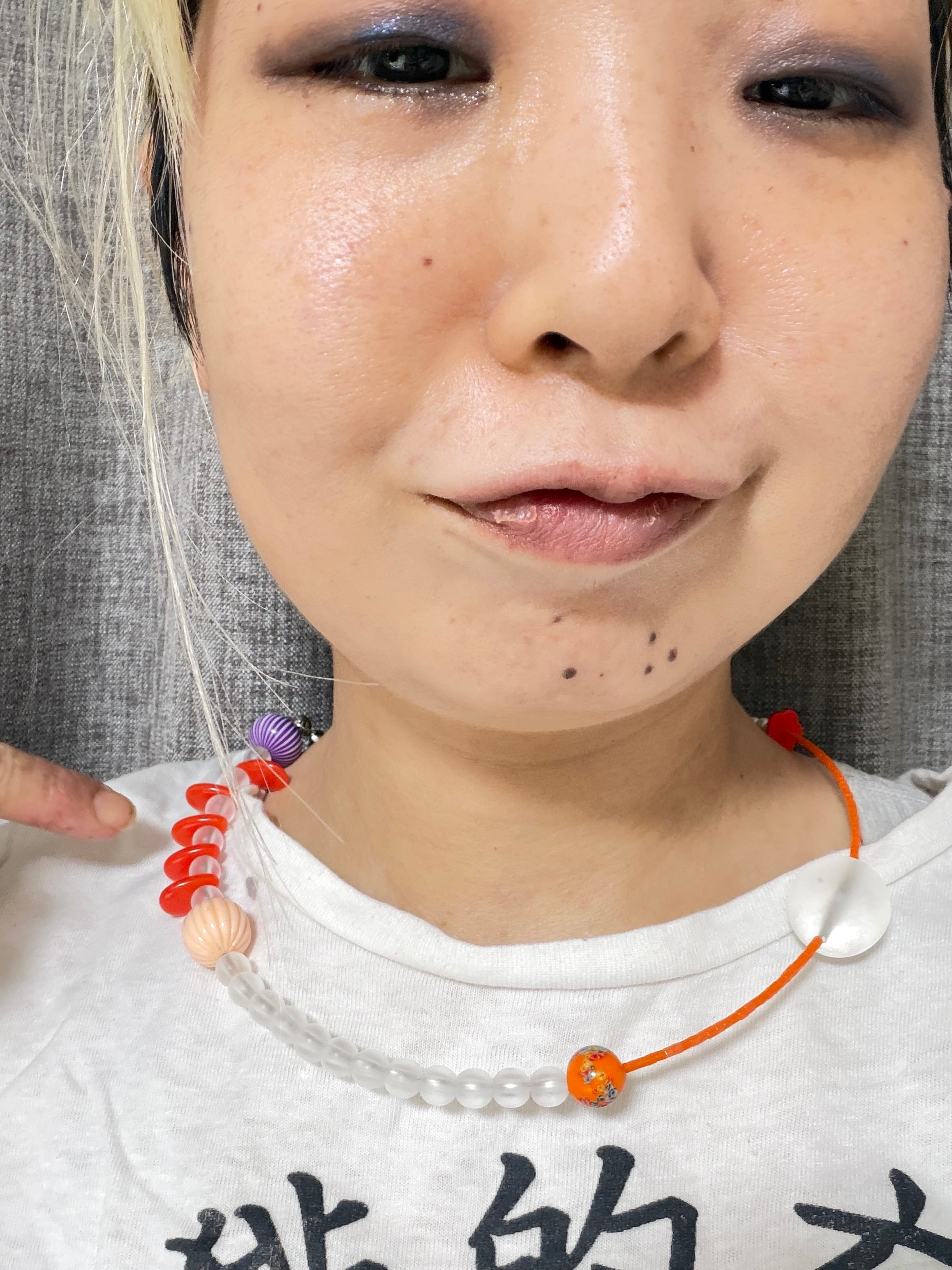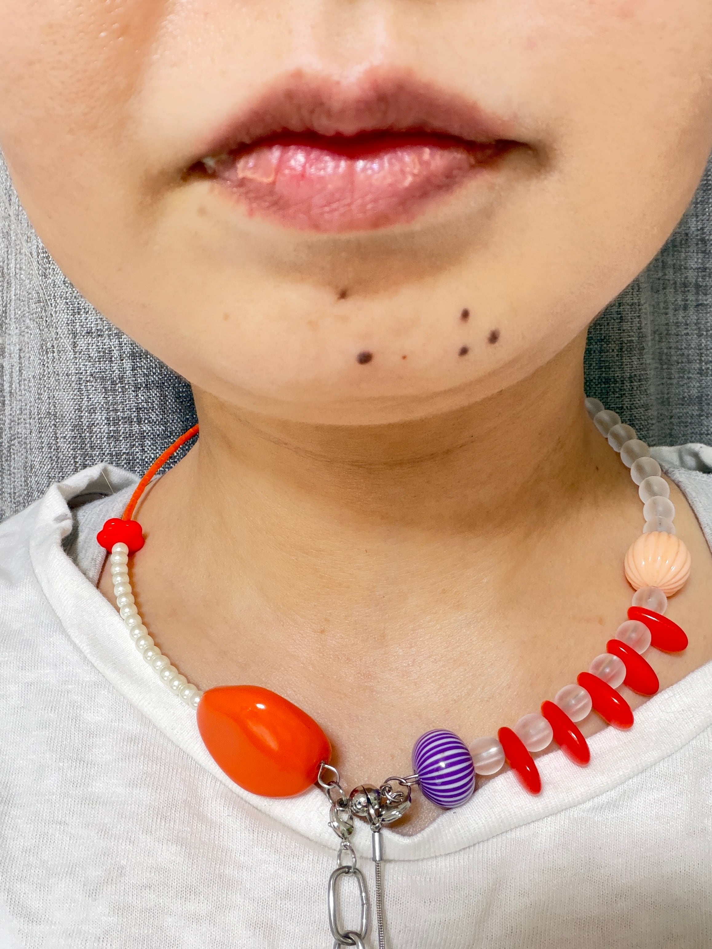 あとは後ろにチェーンを回すと普通のビーズのネックレスを着けているようですが、