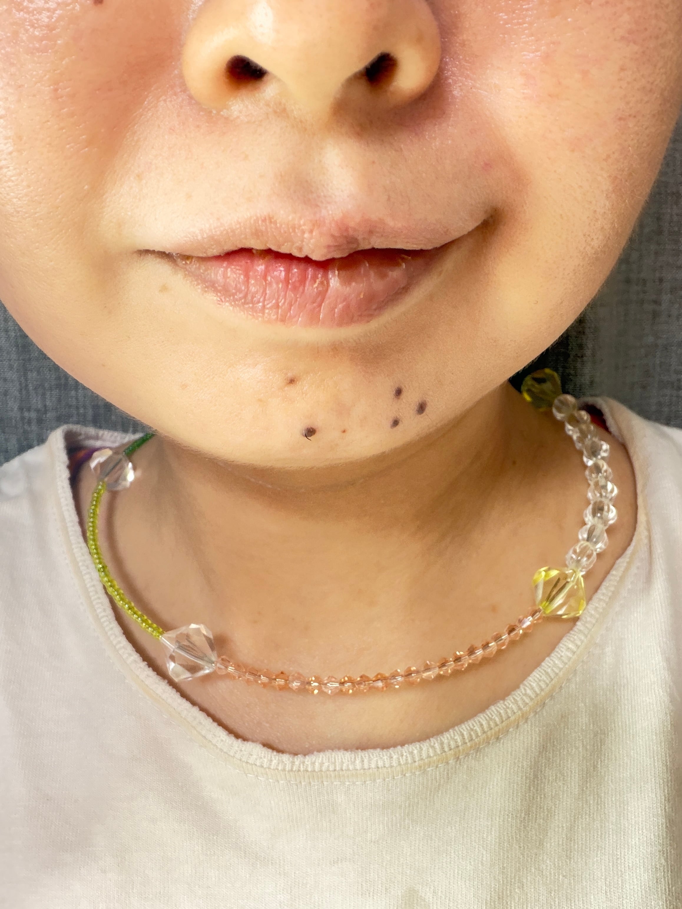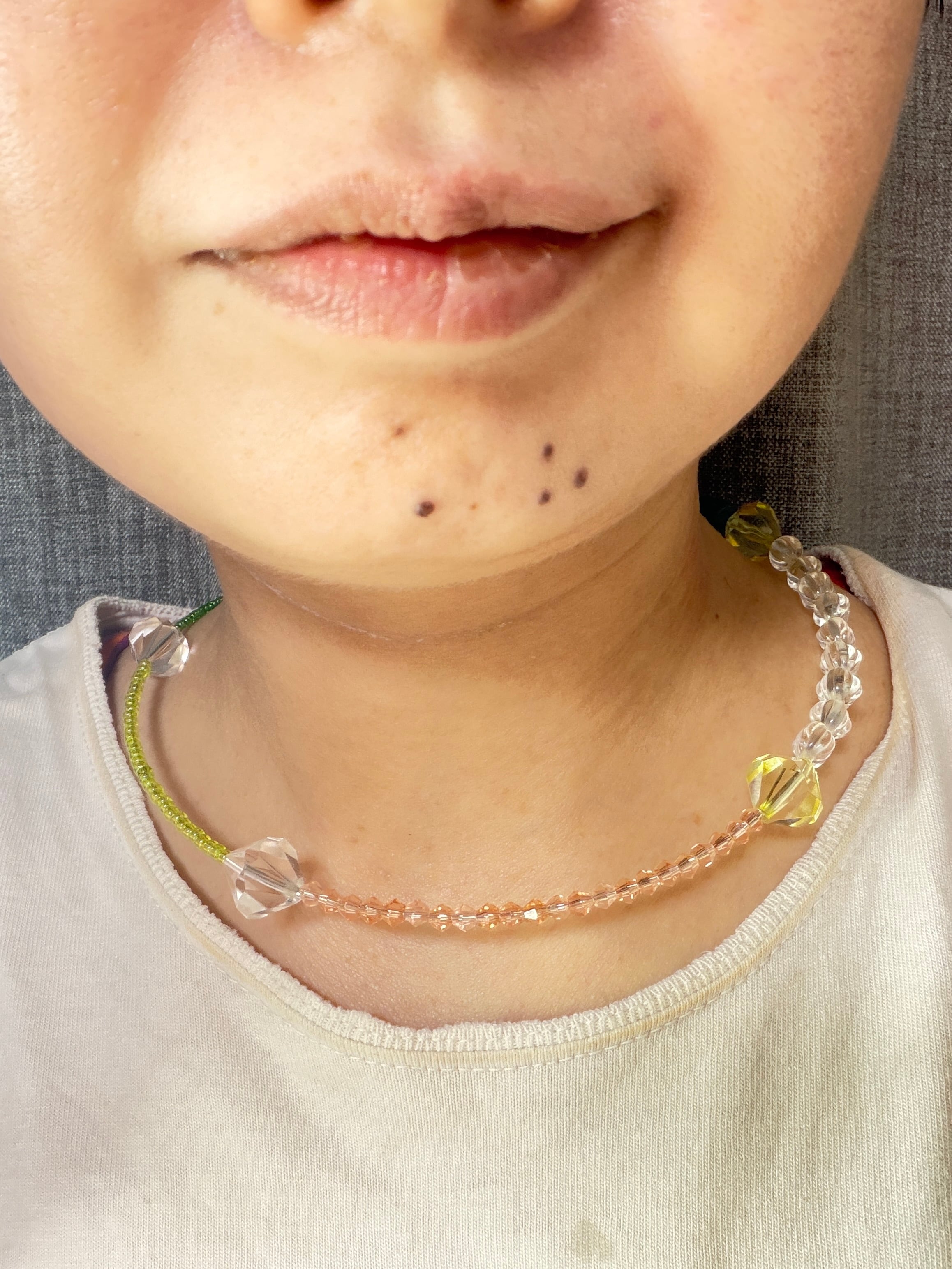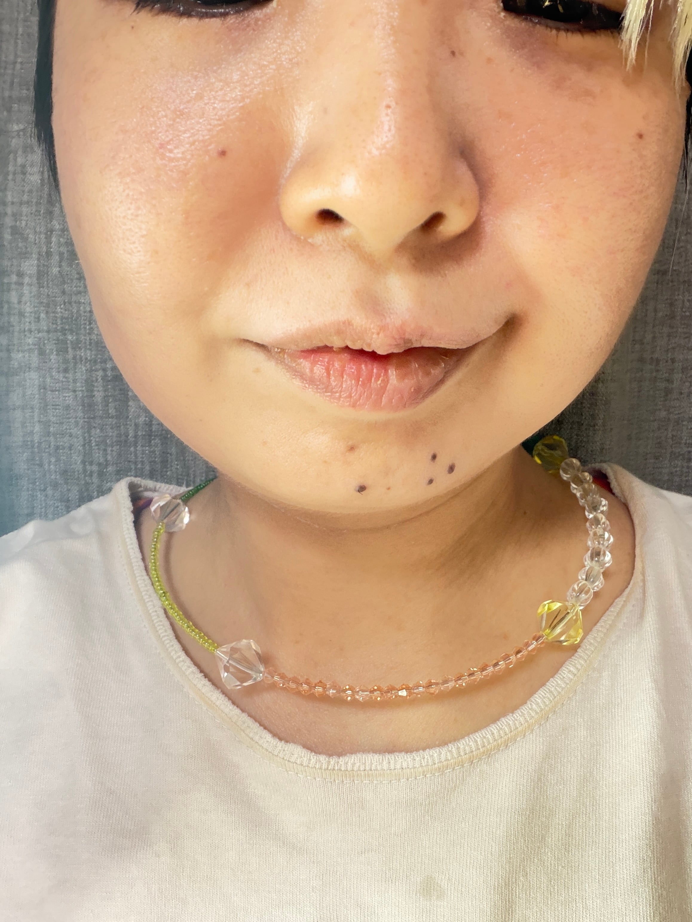 あとは後ろにチェーンを回すと普通のビーズのネックレスを着けているようですが、