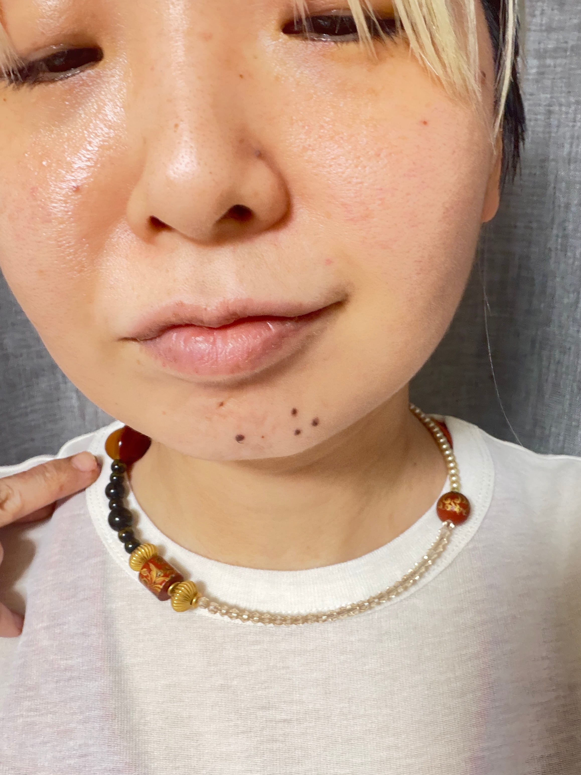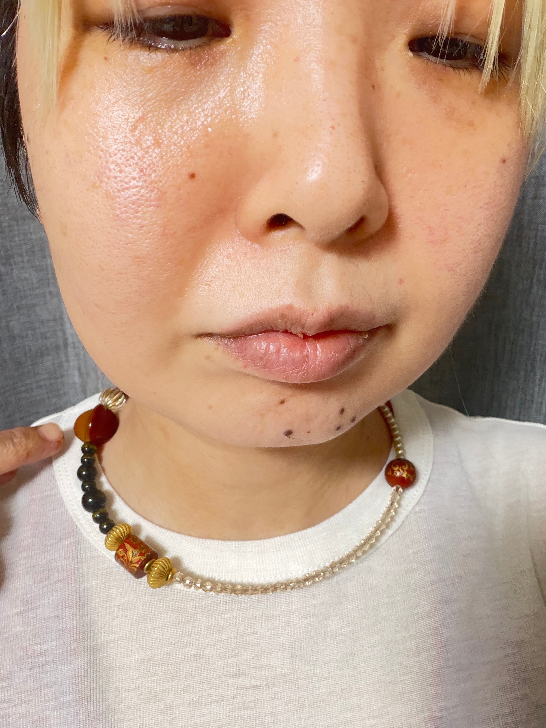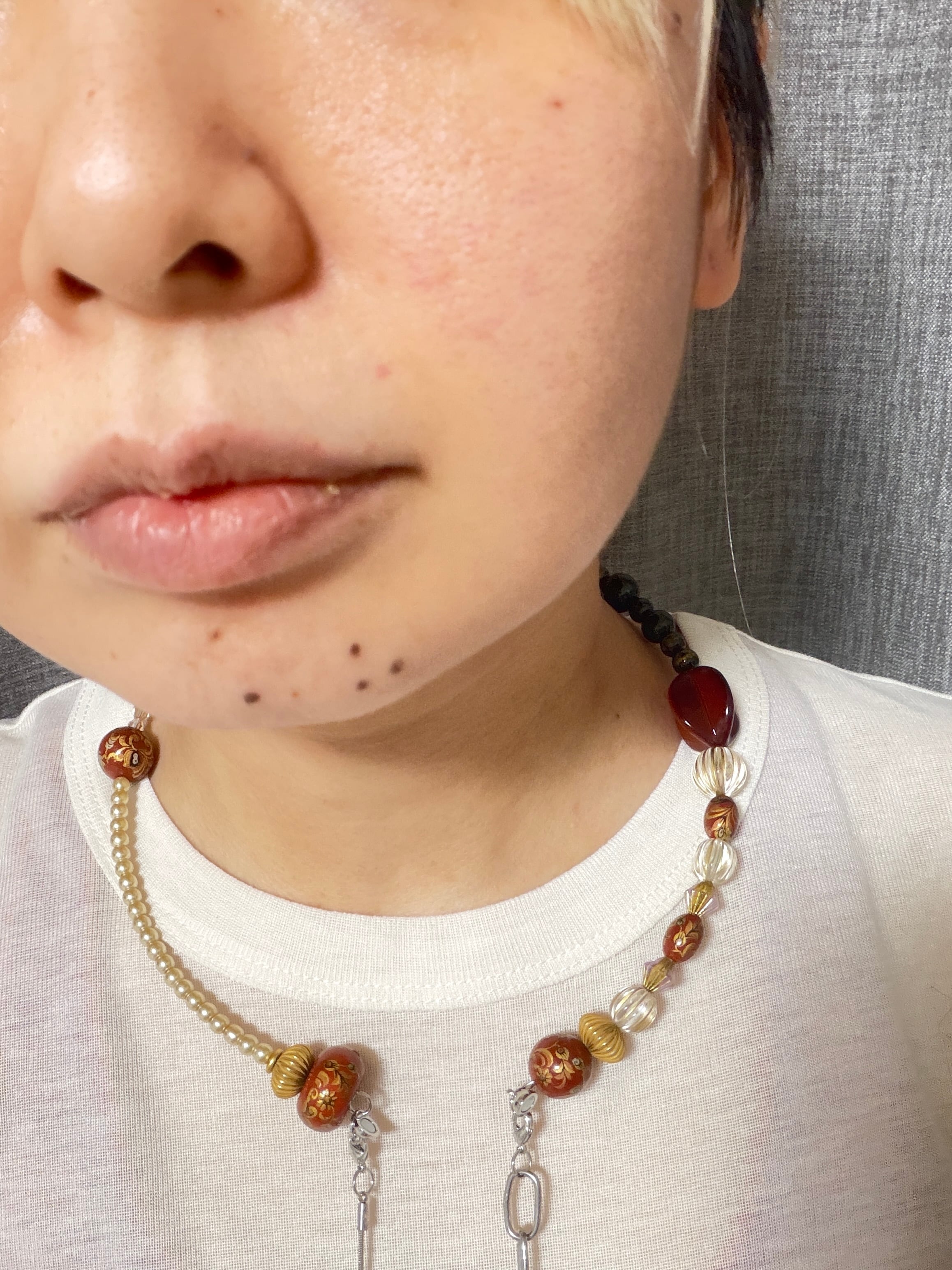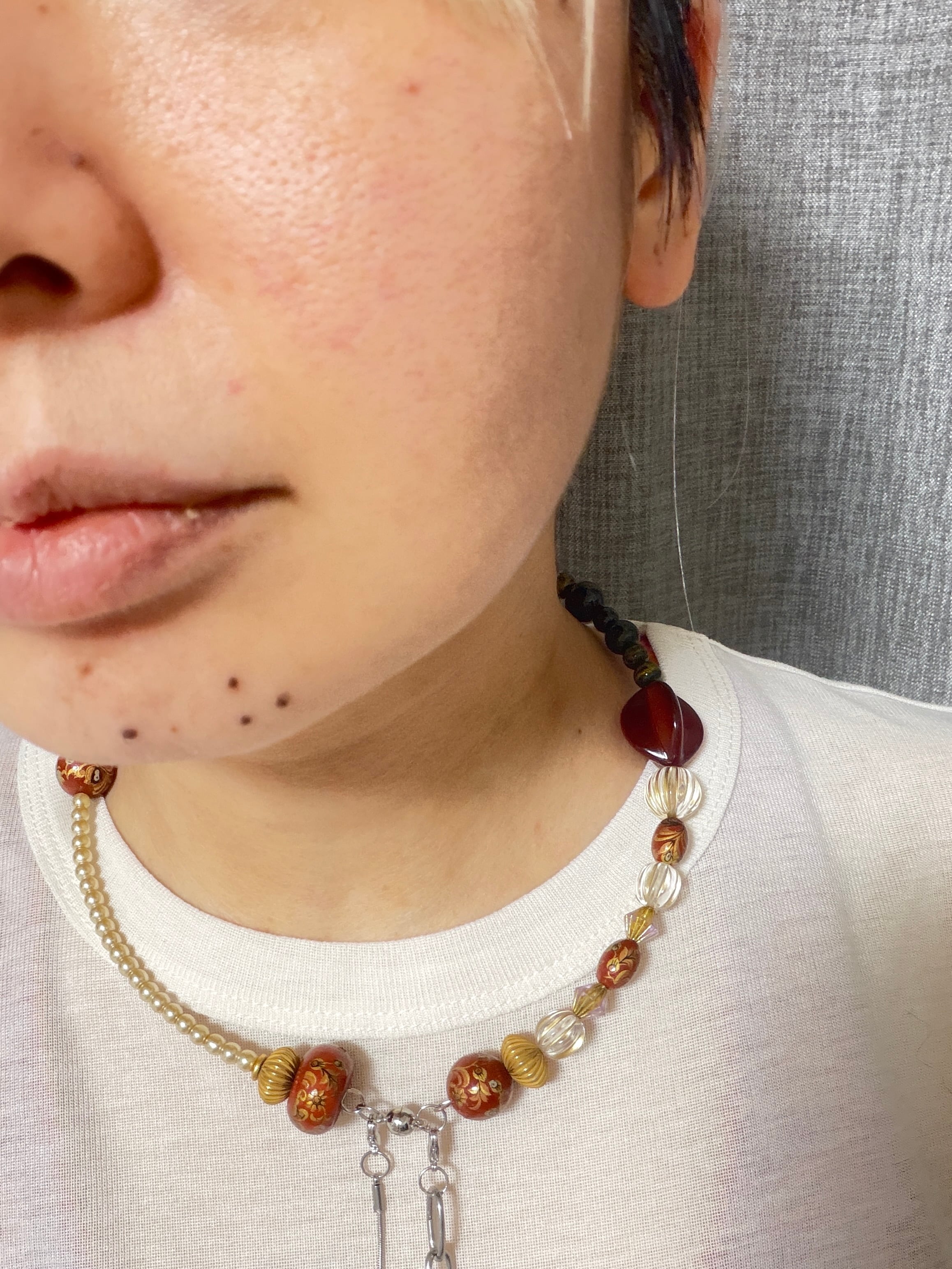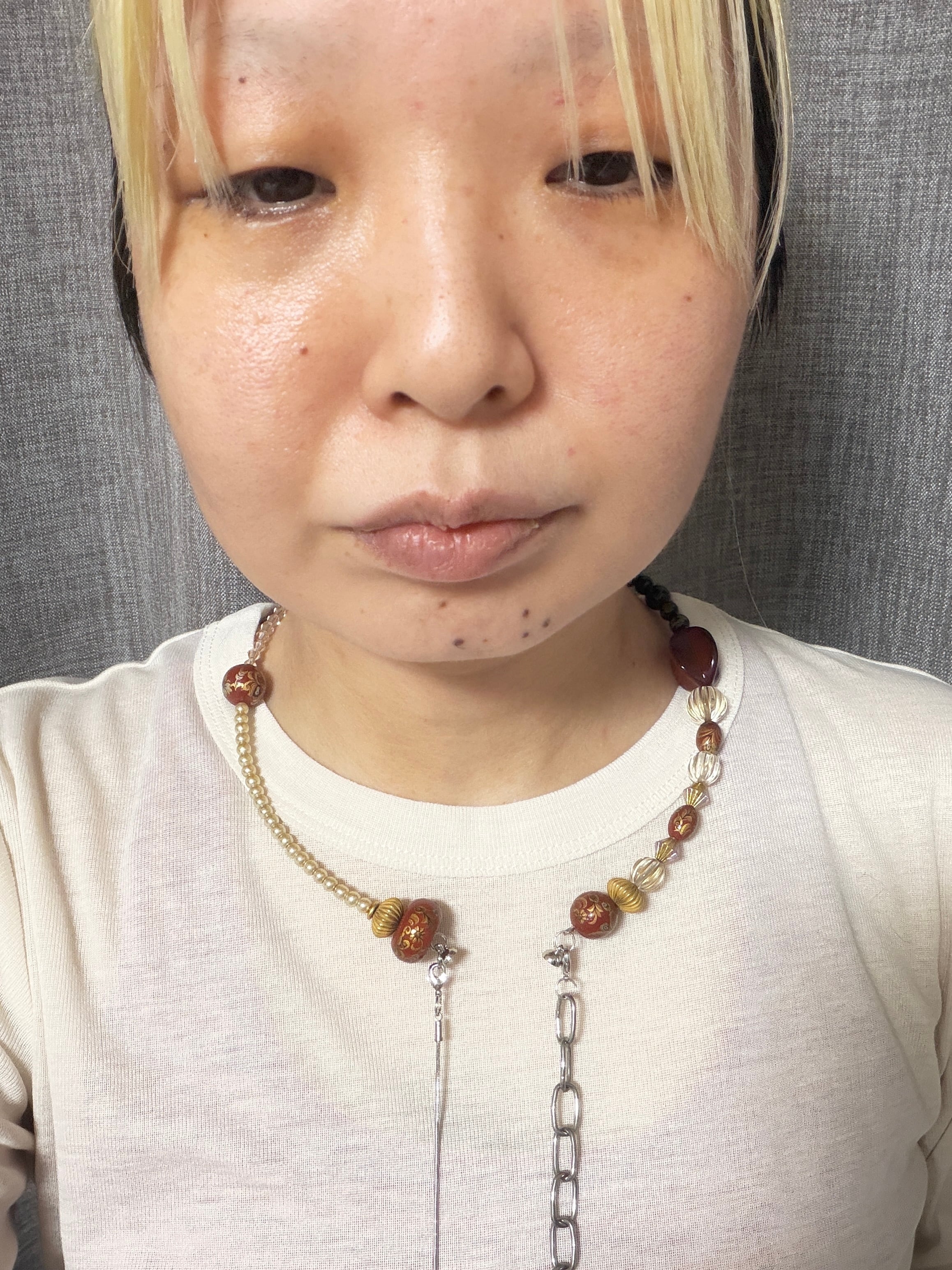 あとは後ろにチェーンを回すと普通のビーズのネックレスを着けているようですが、