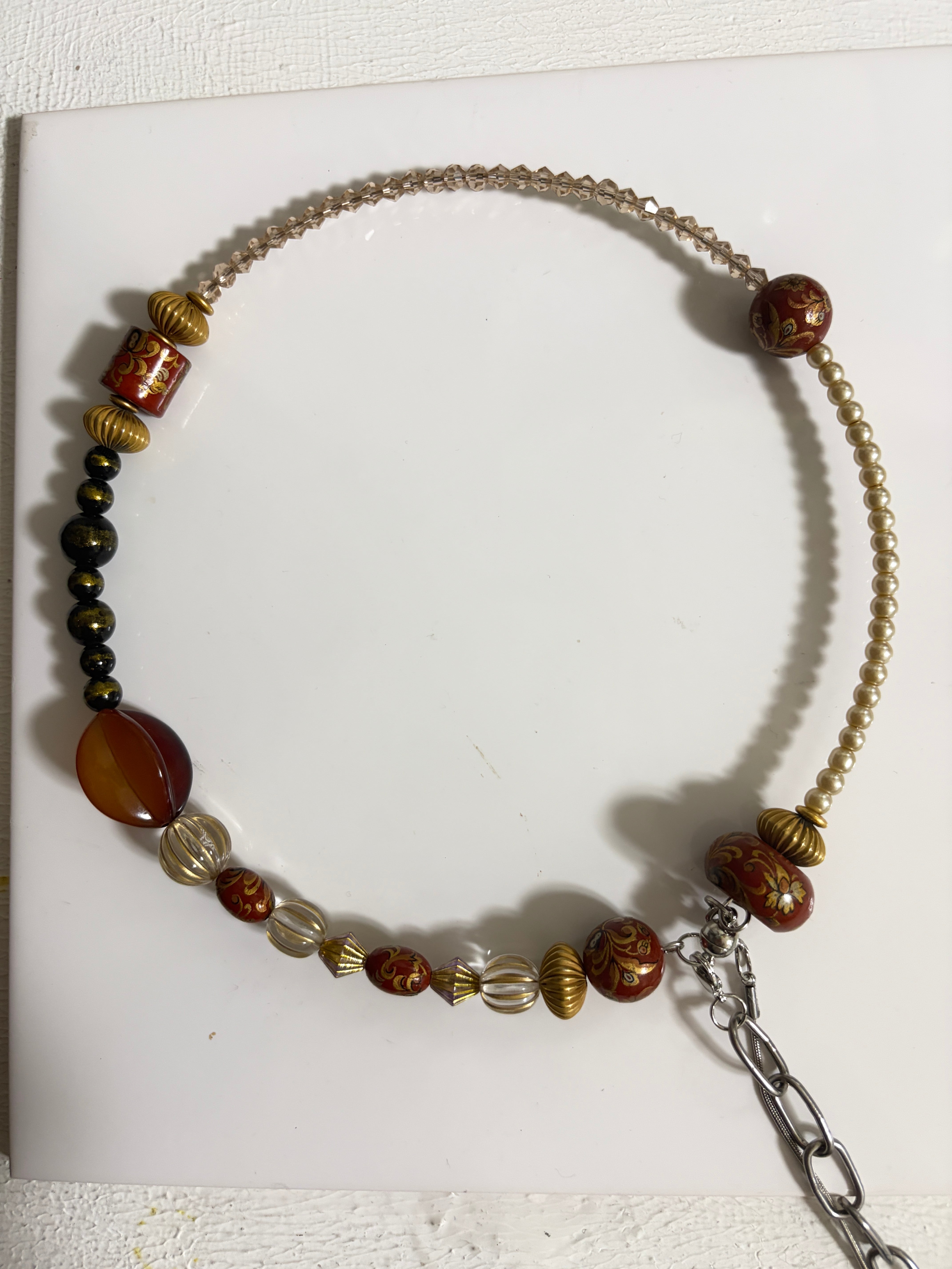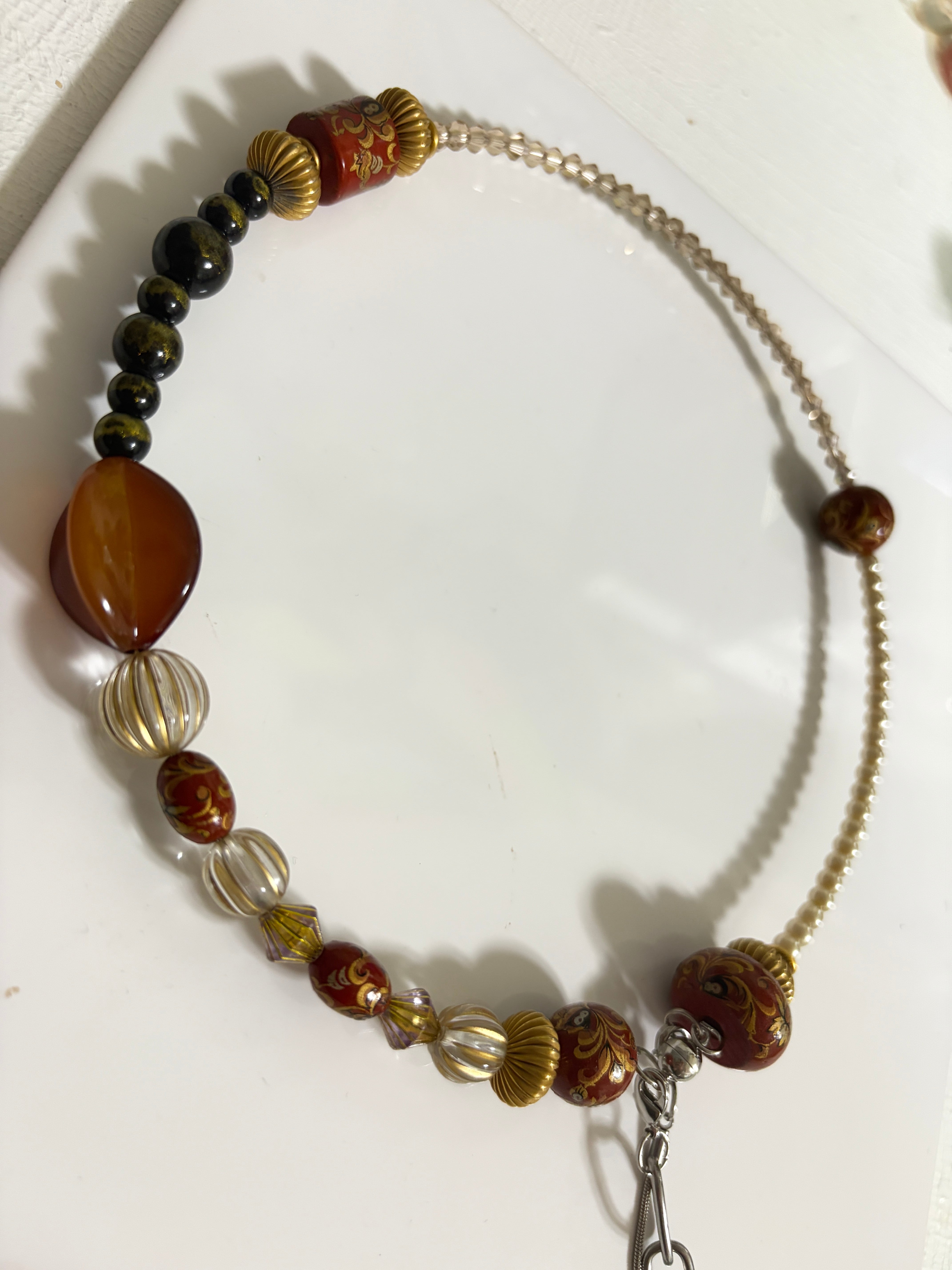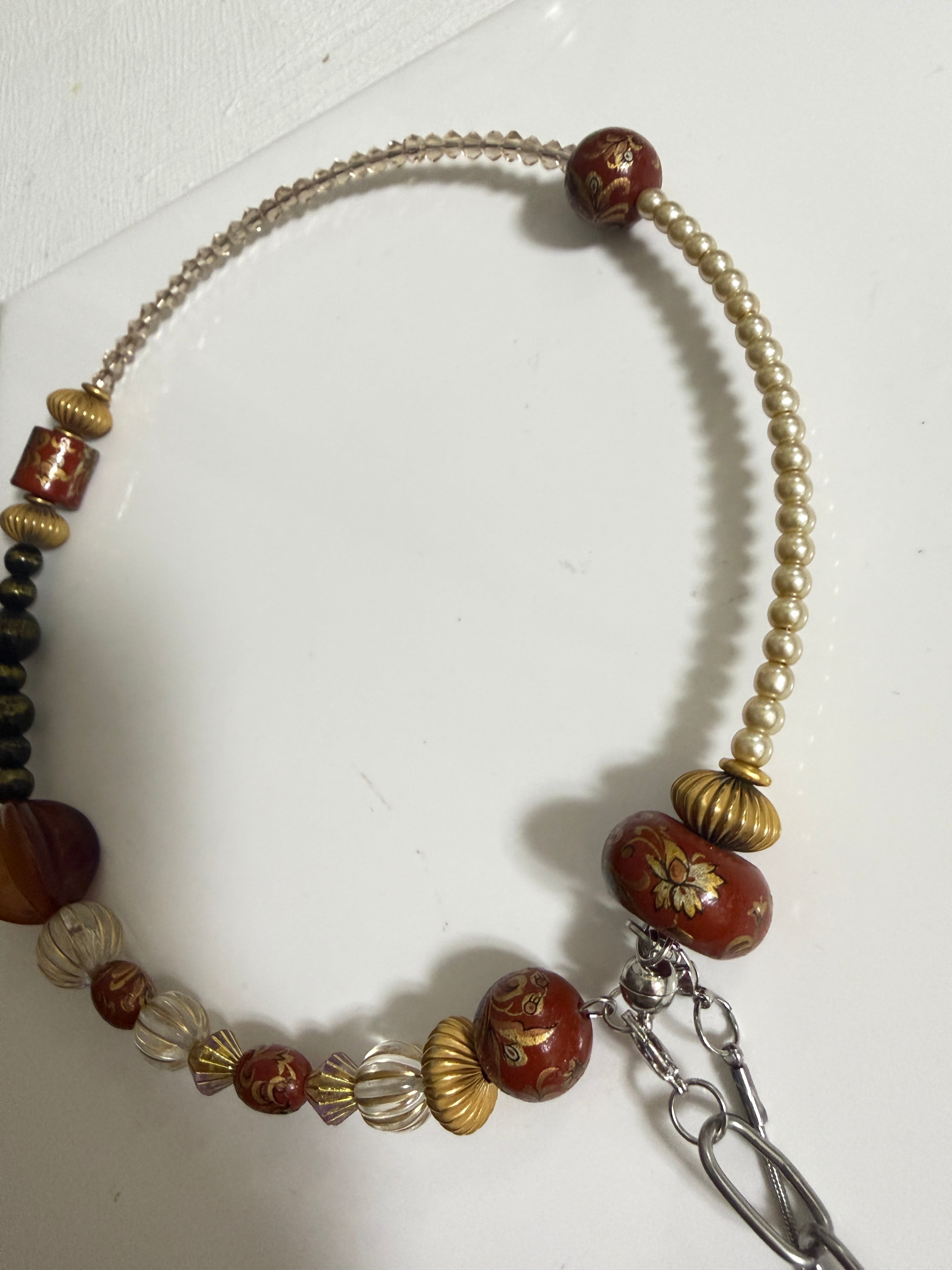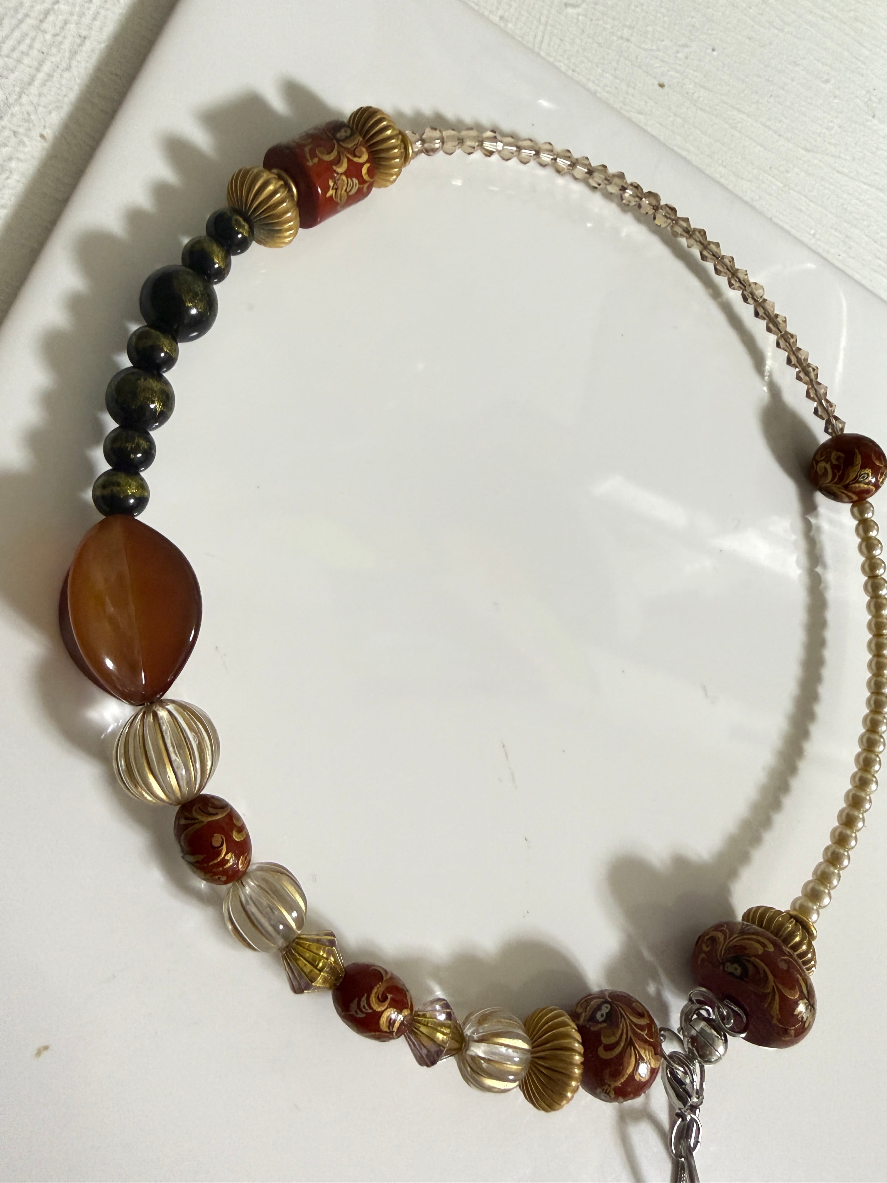 主に70年代ヨーロッパの、ヴィンテージパーツ、ビーズをを惜しげもなく投入した可愛いネックレスです、
